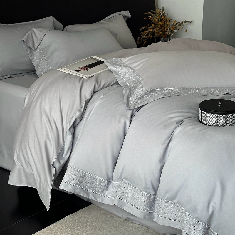时亿家居 2025新款镂空花边长绒棉纯棉磨毛四件套-海瑟薇 海瑟薇-灰色