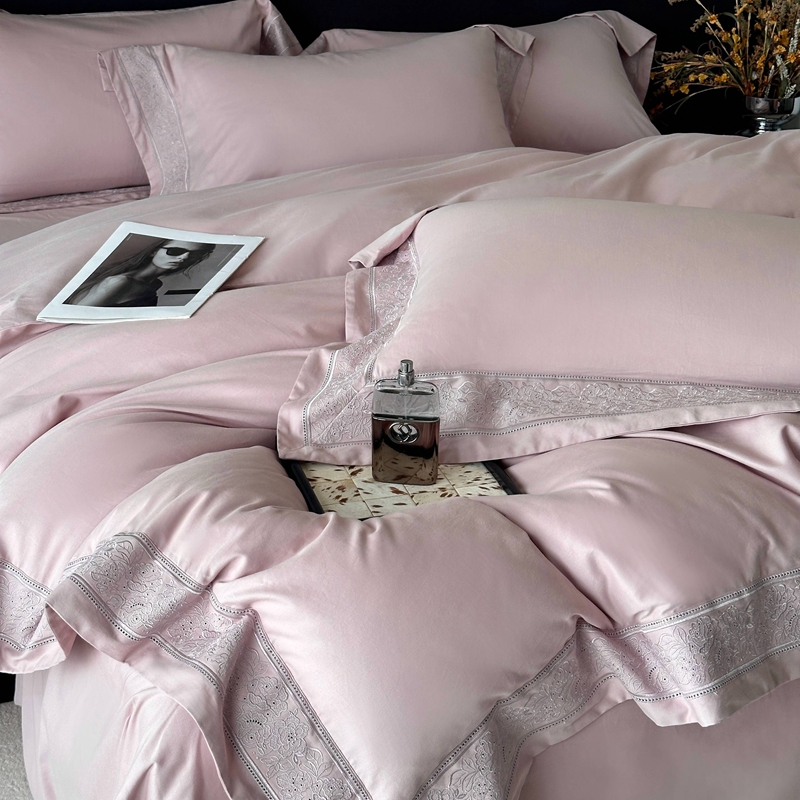(总)时亿家居 2026新款100支全棉纯棉绣花四件套-至简逸品系列,逸品-粉,逸品-红,逸品-灰,逸品-卡其,逸品-蓝,逸品-香槟