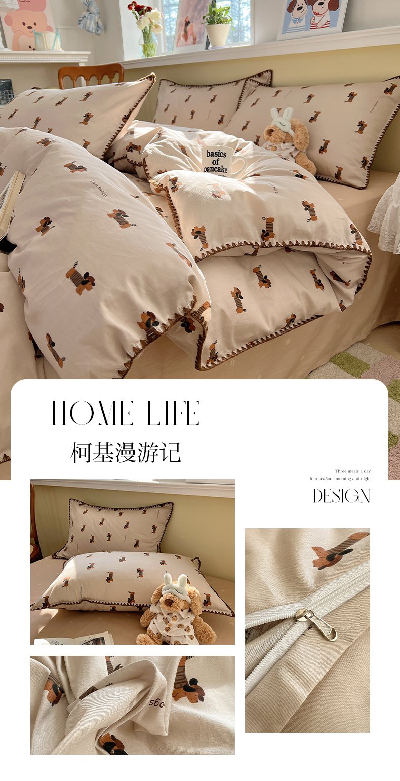 (总)瑞莱 2026新款A类全棉纯棉有氧双层纱四件套,白熊小姐,彩色木马,淡彩花笺,费尔岛小熊,焦糖奶汪-桔,焦糖奶汪-绿,萌星,苹果星星人,小樱桃,樱桃画报