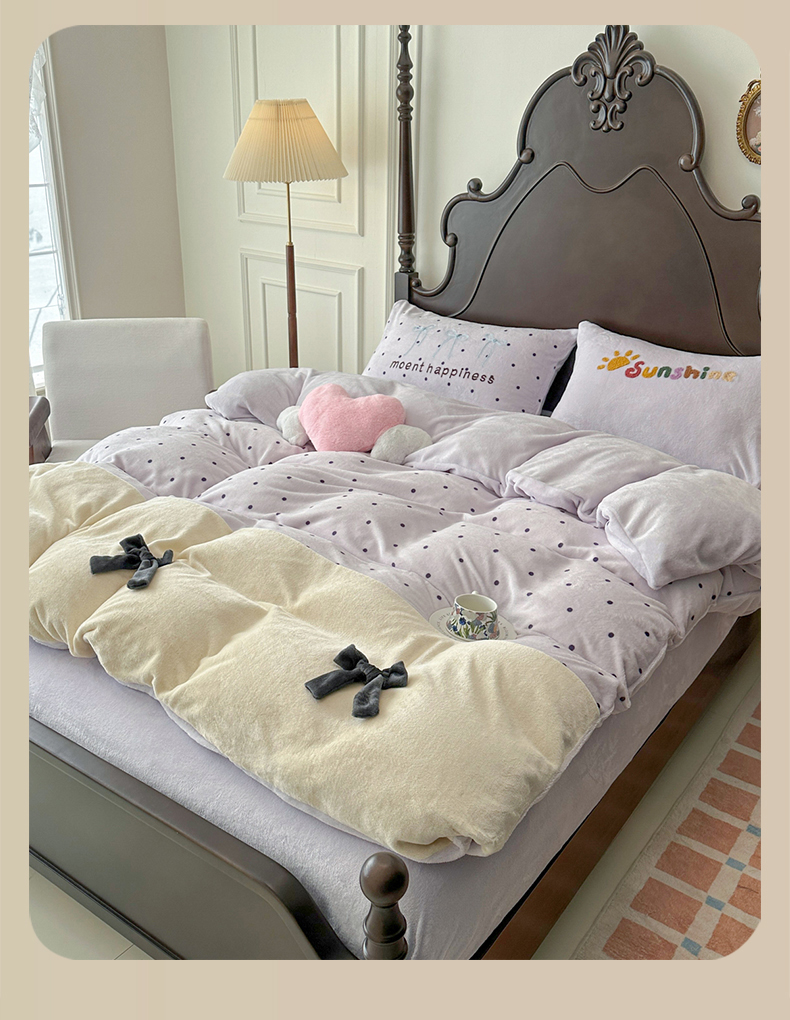 当前位置: 91家纺网 > 商品网购 > 床品套件 > 四件套 > 牛奶绒四件套 > 子钦家纺 2025秋冬新款加厚牛奶绒复古公主风毛巾绣床单床笠四件套 牛奶绒法式复古风-紫波点