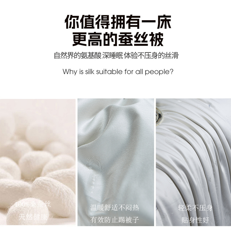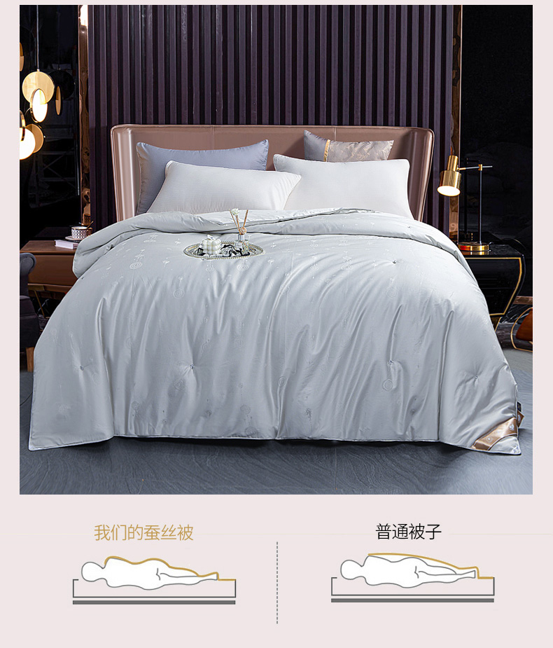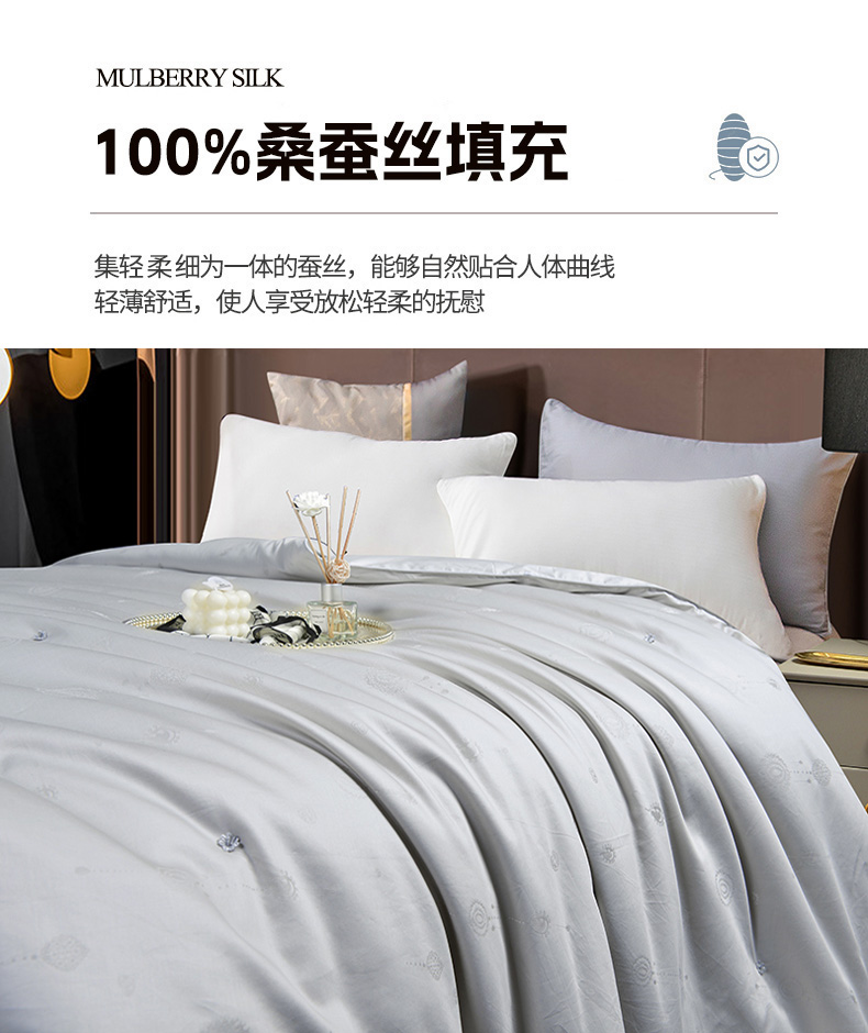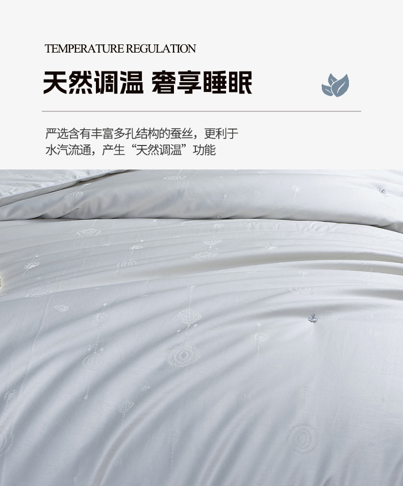 商品名称:新品 热销桑蚕丝被 蝴桐家纺 全棉提花桑蚕丝被 保真桑蚕丝被 超柔天然夏凉被 空调被 春秋被 加厚冬被 婚庆被芯 四季被