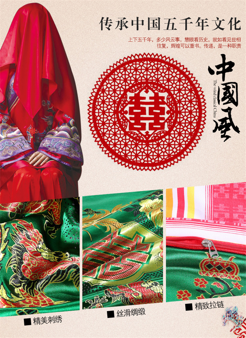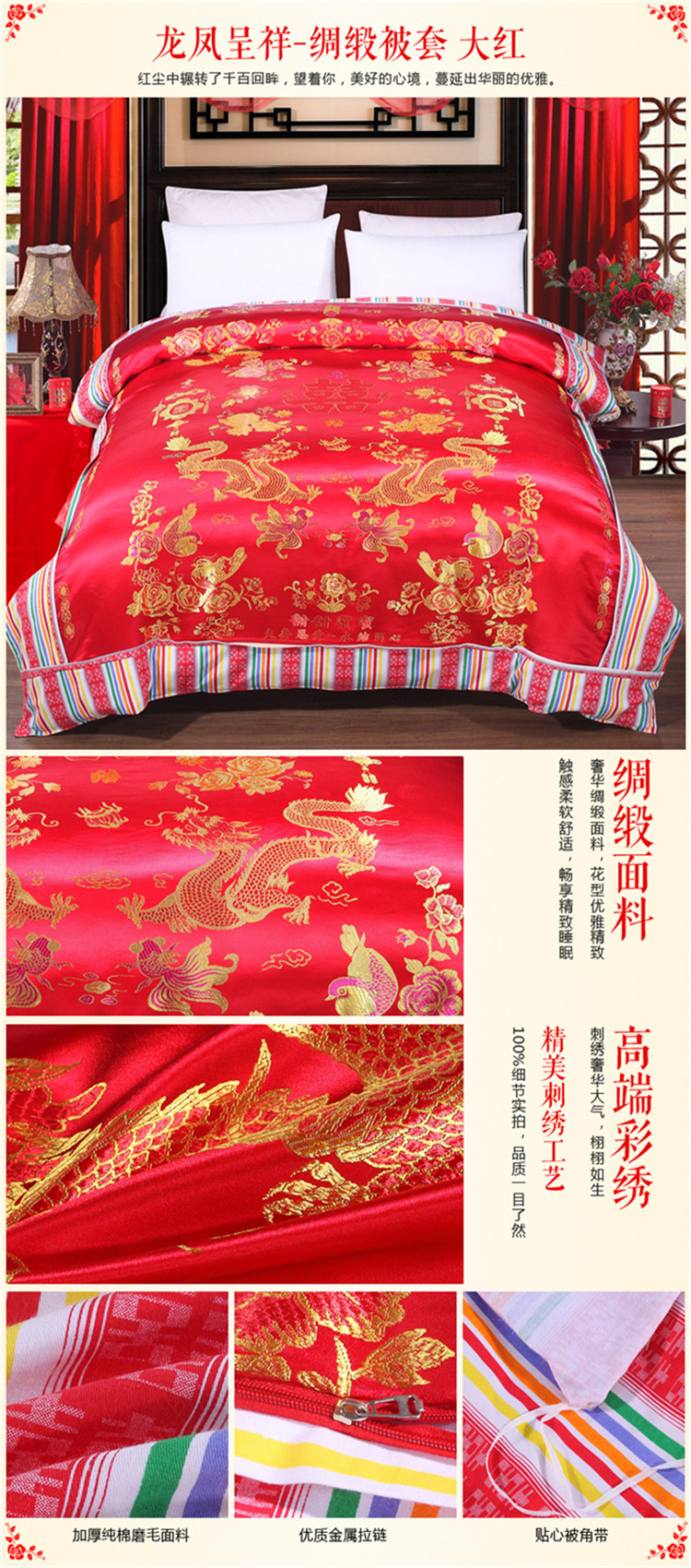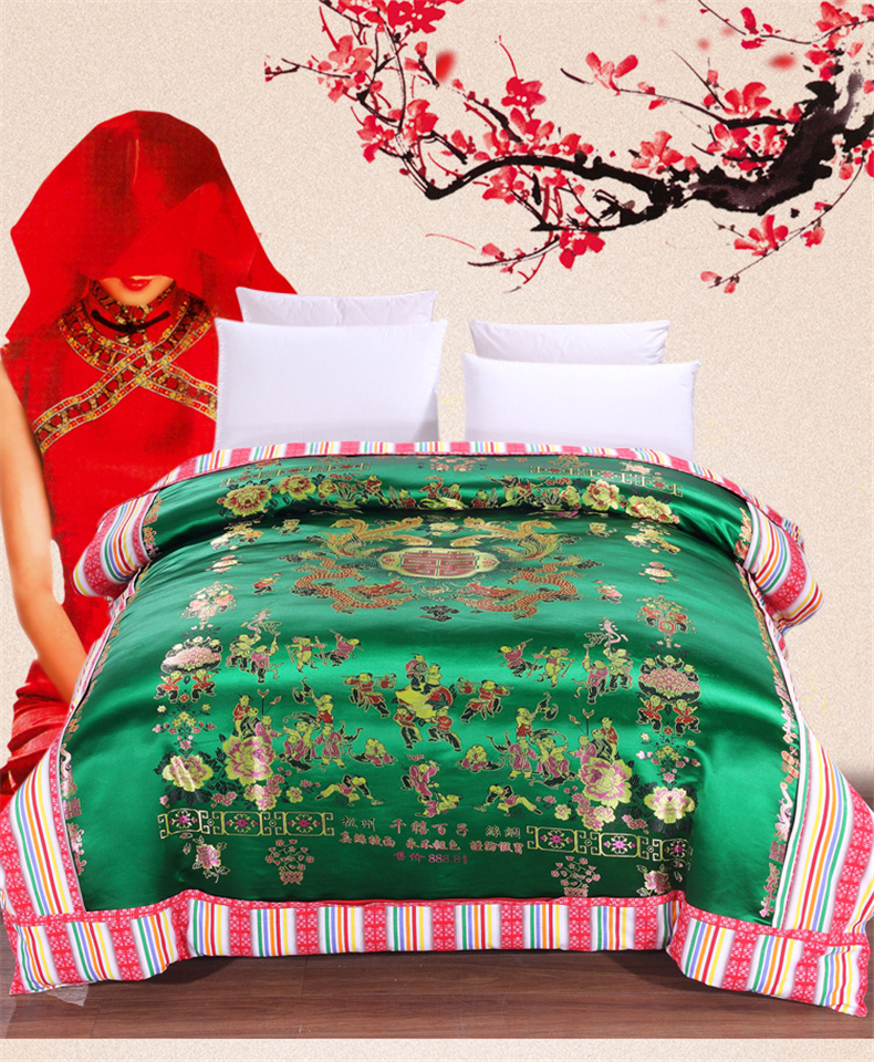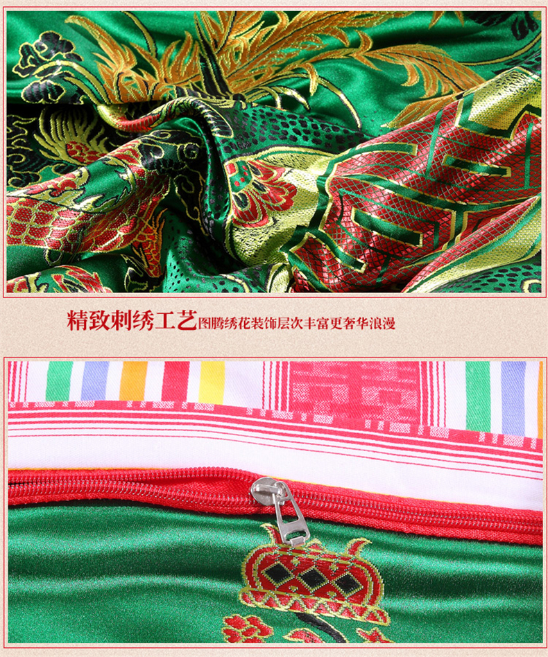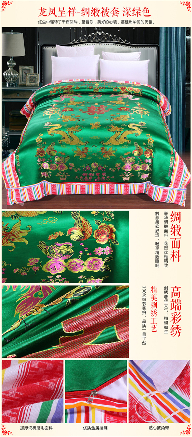 当前位置: 91家纺网 > 商品网购 > 床品套件 > 四件套 > 婚庆四件套 > 浩情国际婚庆供货中心 2026新品婚庆结婚绸缎面全棉老粗布经典款被套被单龙凤呈祥百子图大红绿长期供货 龙凤百子-绸缎被套深绿色