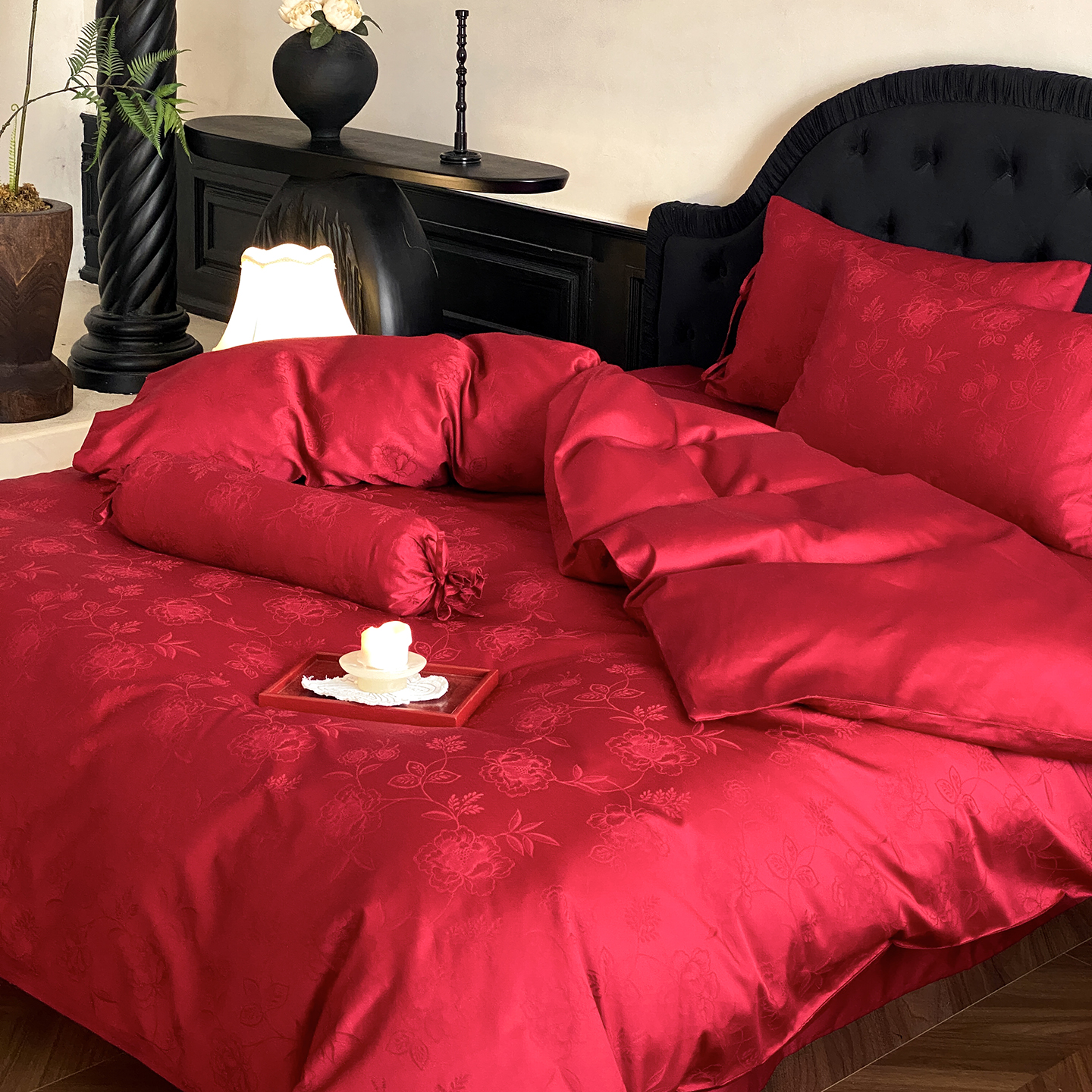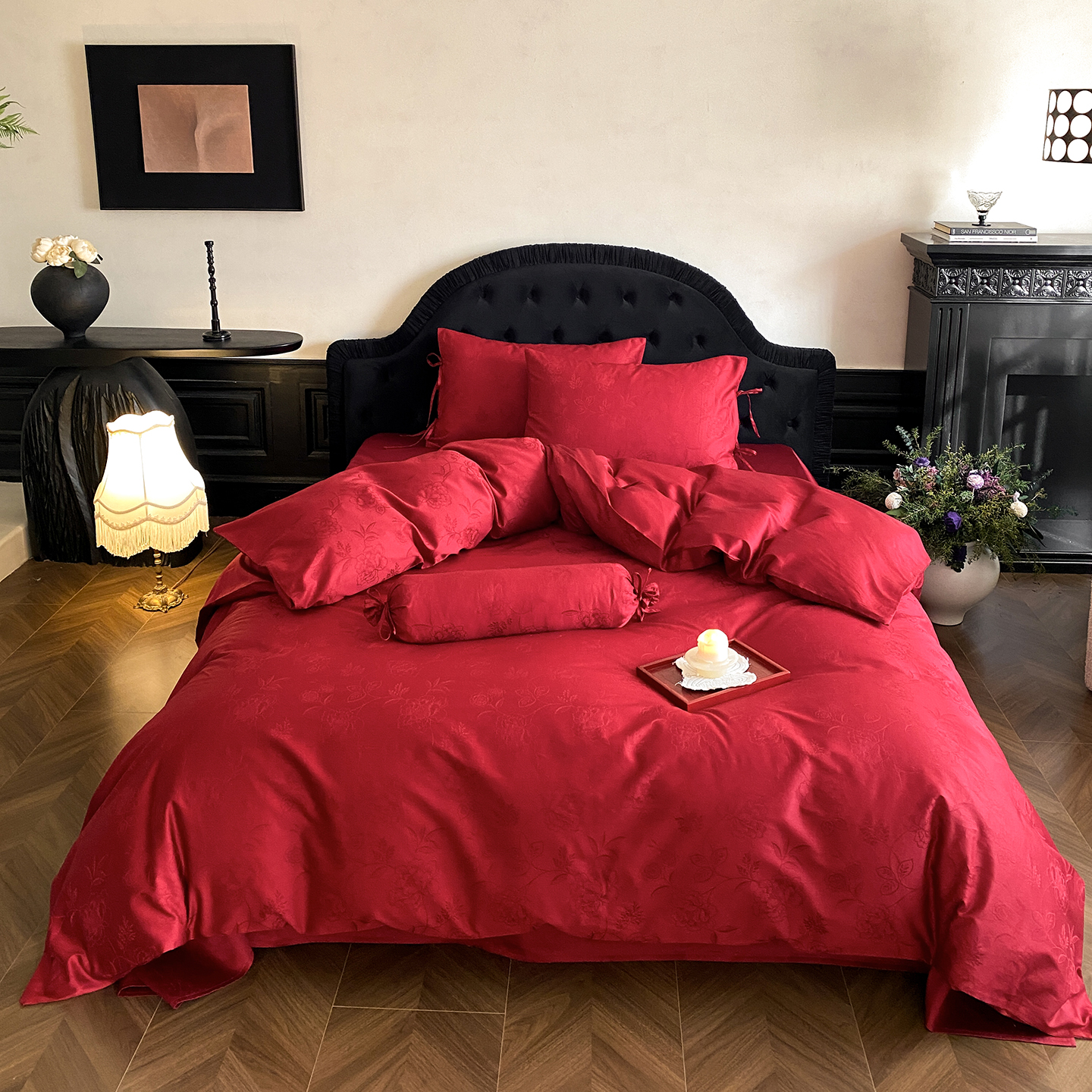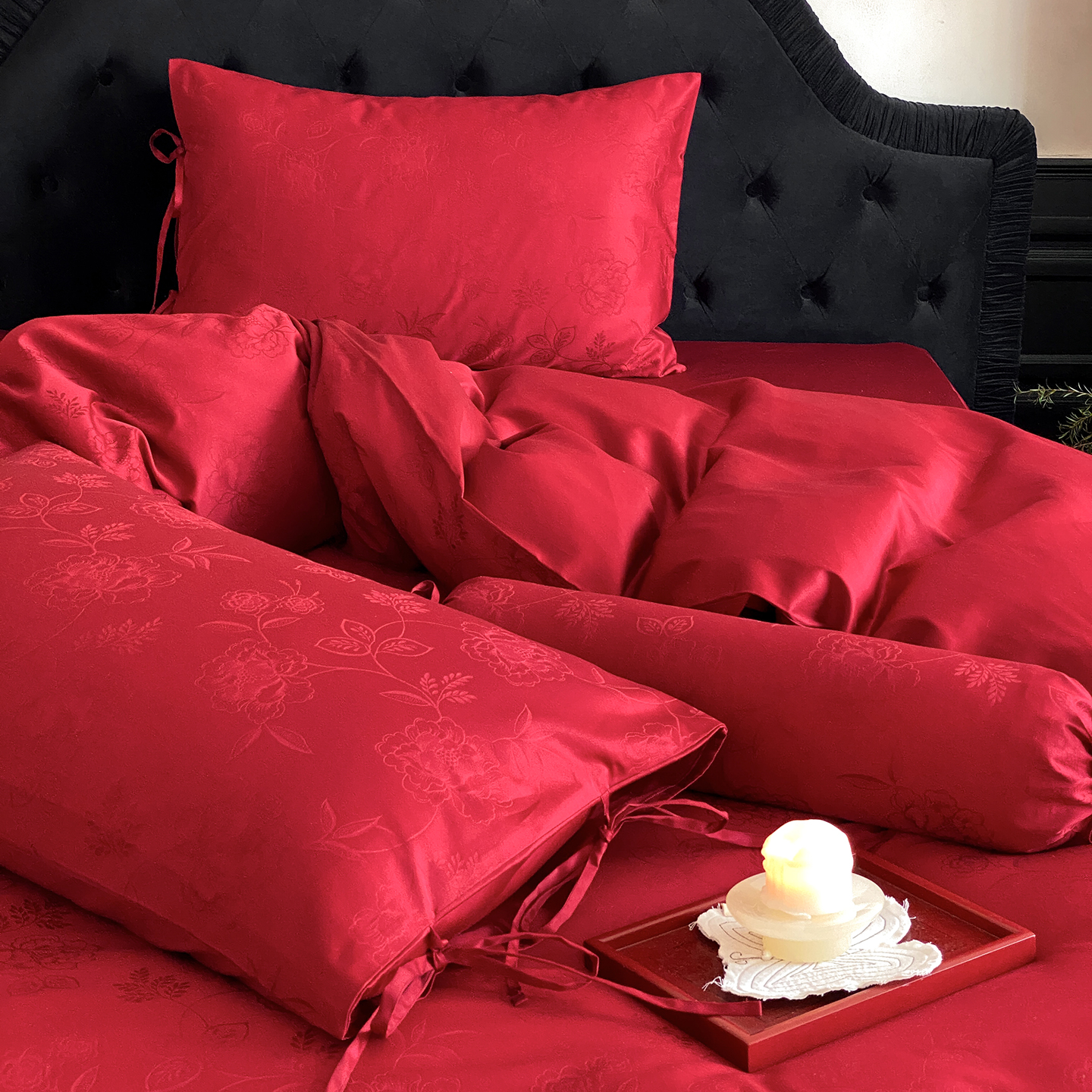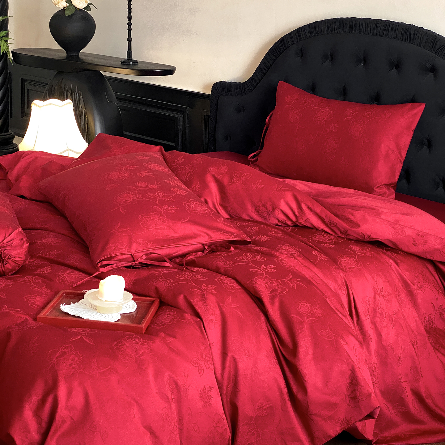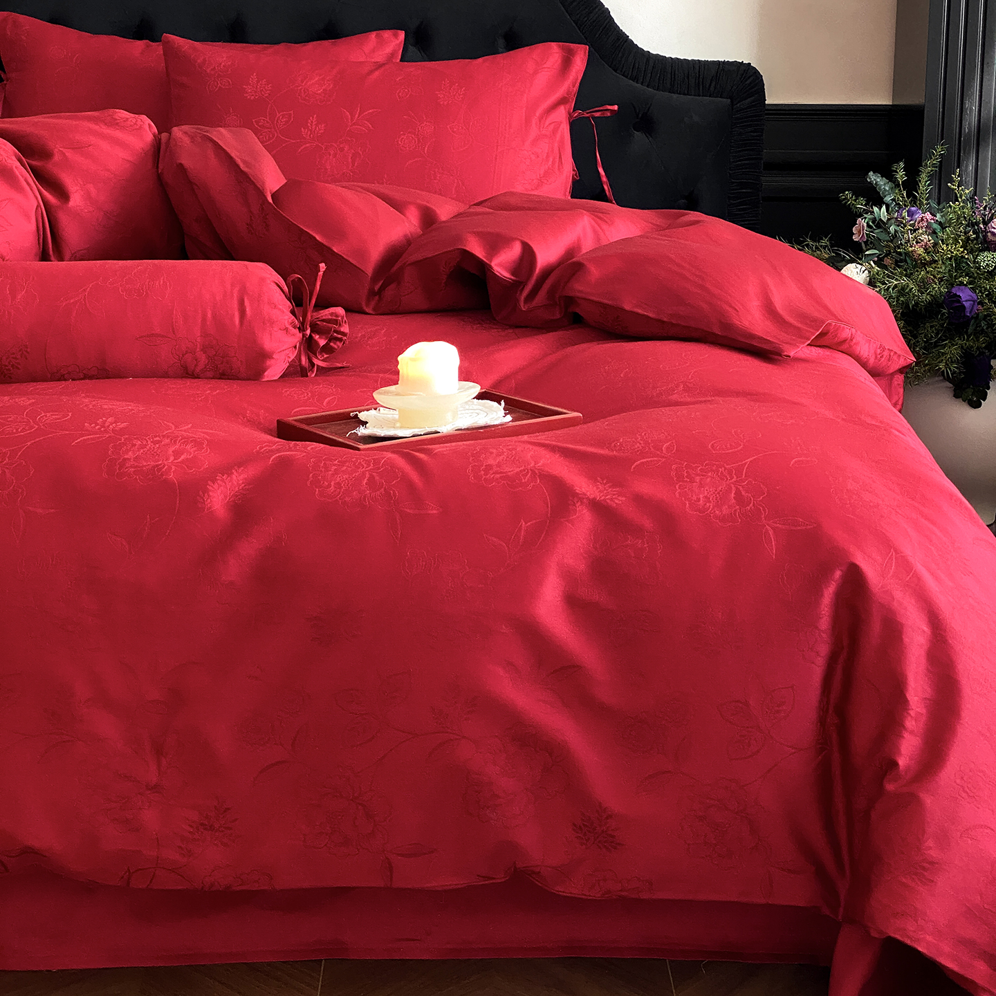 当前位置: 91家纺网 > 商品网购 > 床品套件 > 四件套 > 长绒棉四件套 > (总)极简 2025新款秋冬款100S长绒棉精美提花系列四件套-红薇绣梦