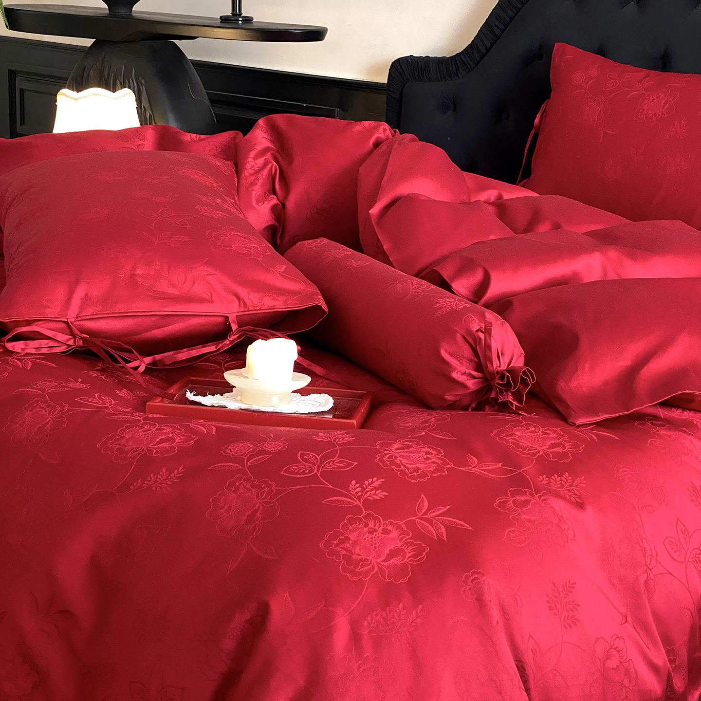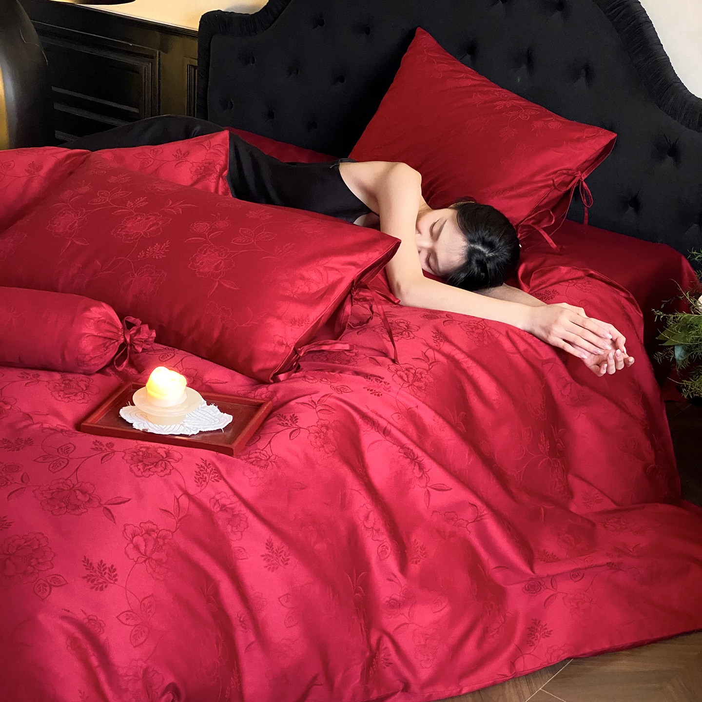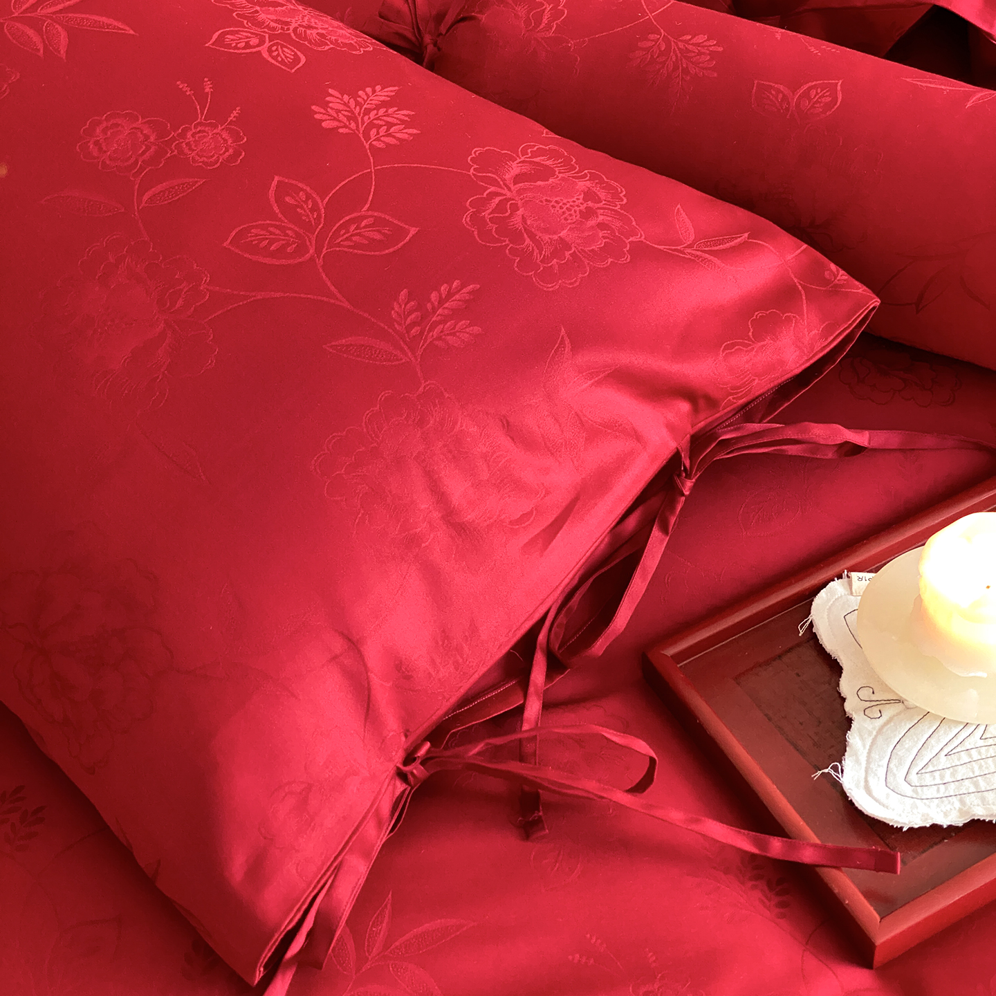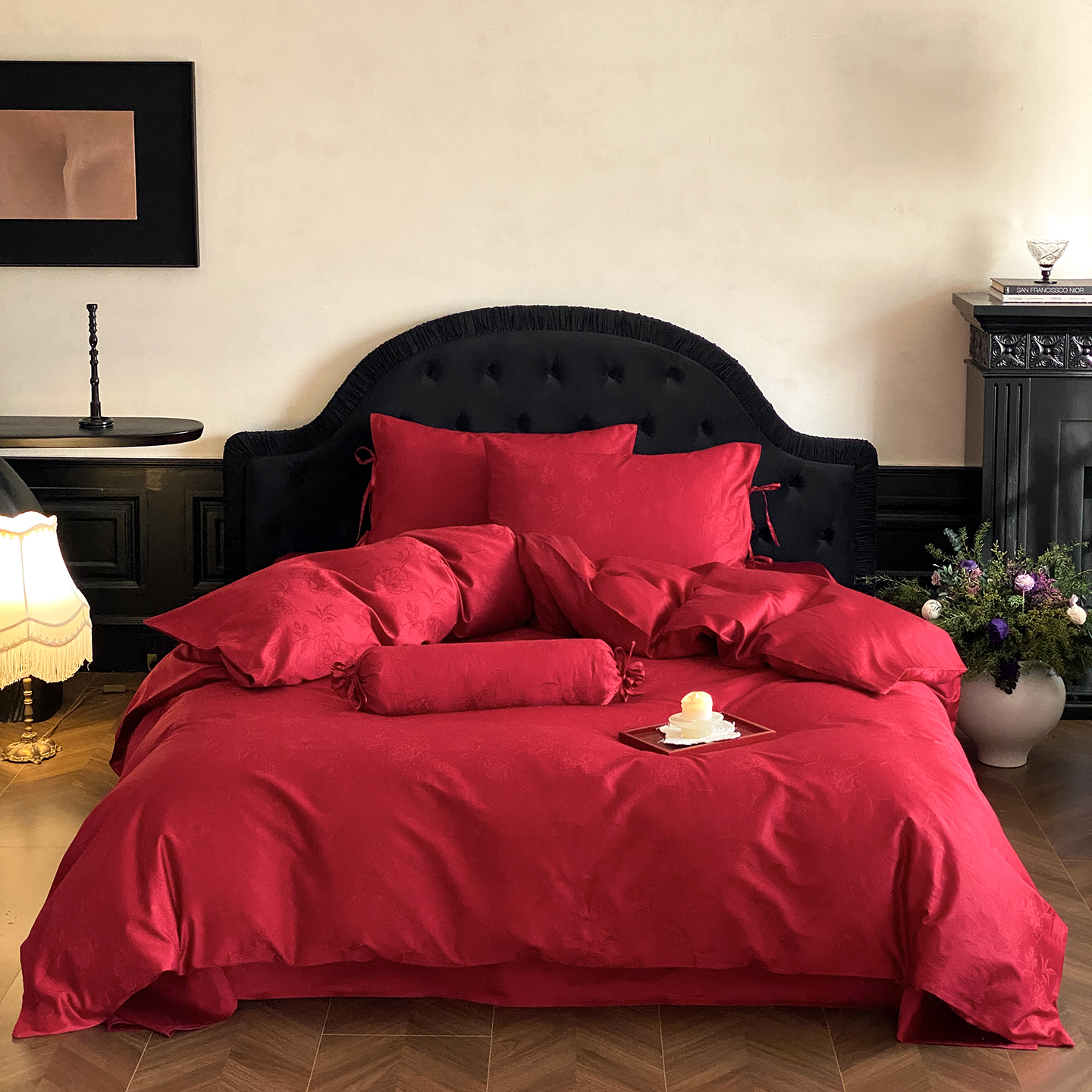 当前位置: 91家纺网 > 商品网购 > 床品套件 > 四件套 > 长绒棉四件套 > (总)极简 2025新款秋冬款100S长绒棉精美提花系列四件套-红薇绣梦