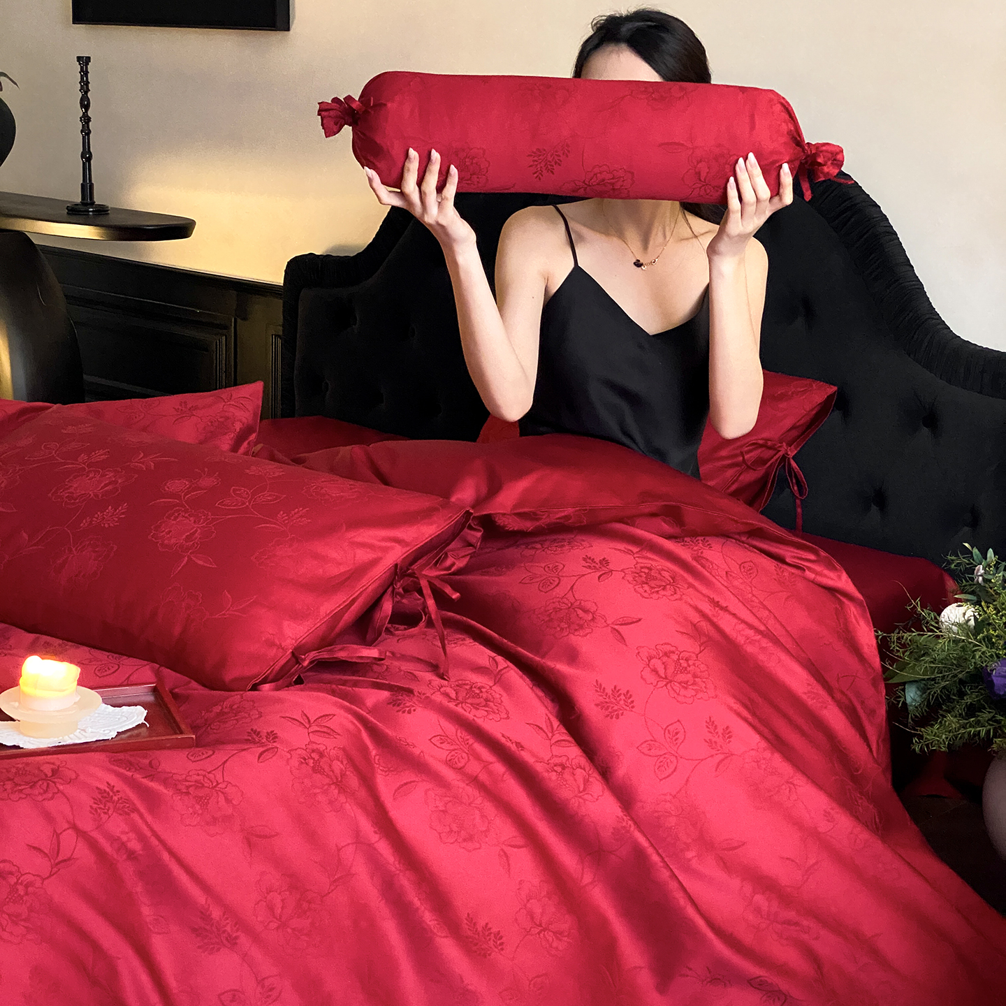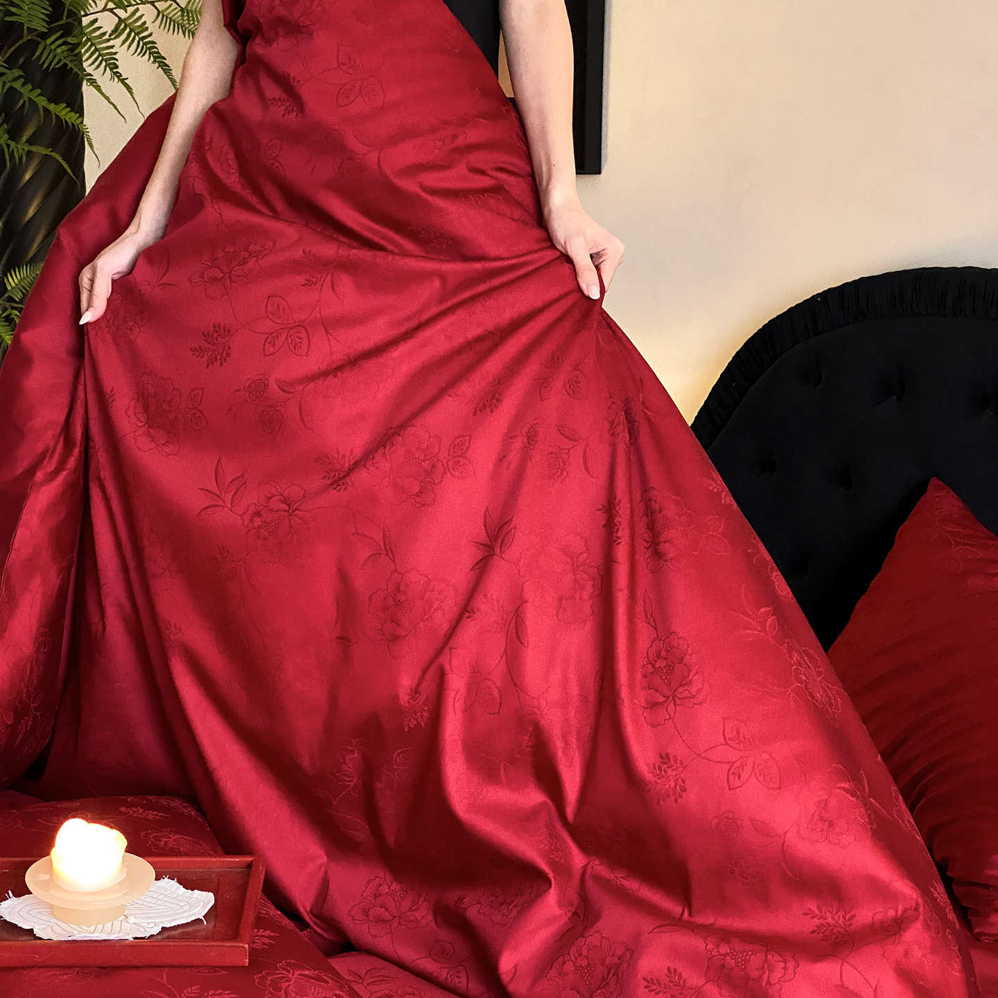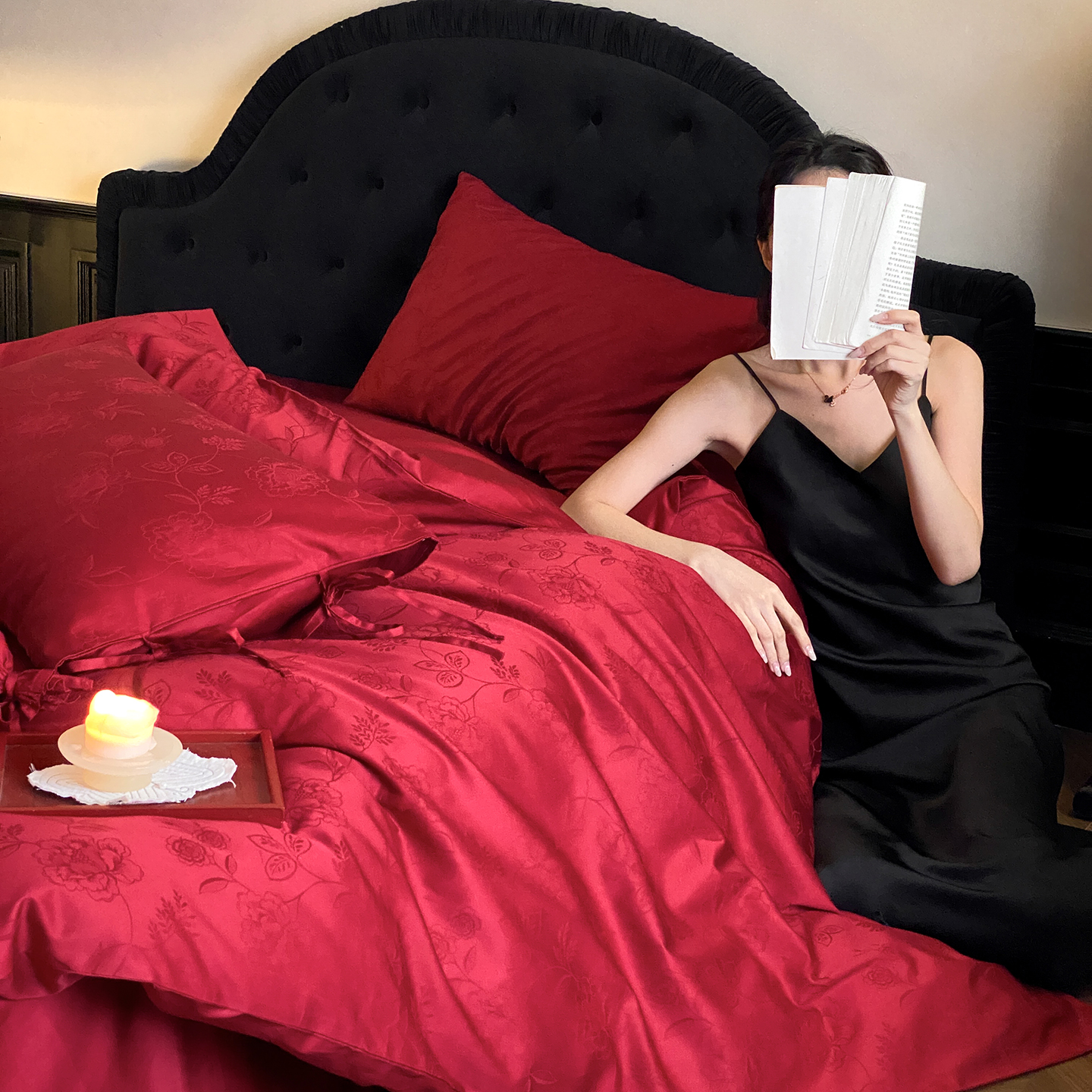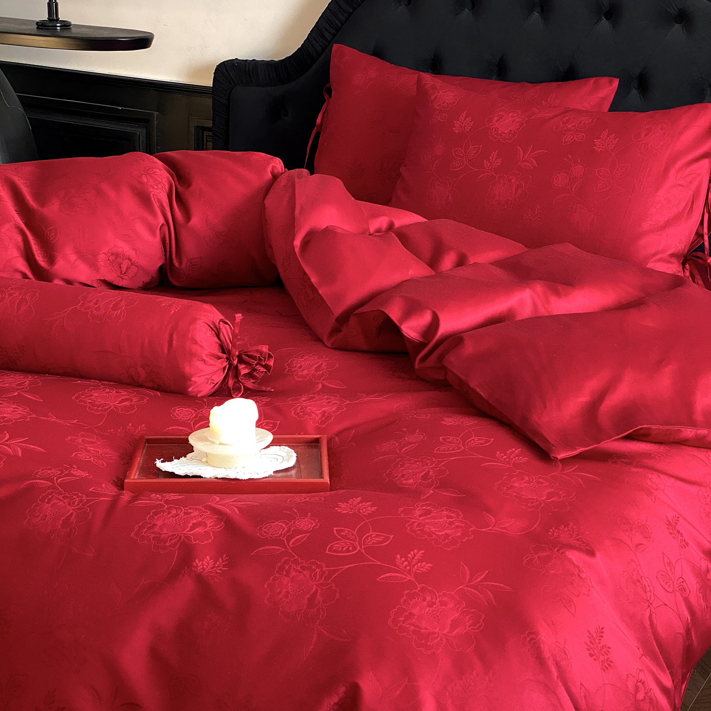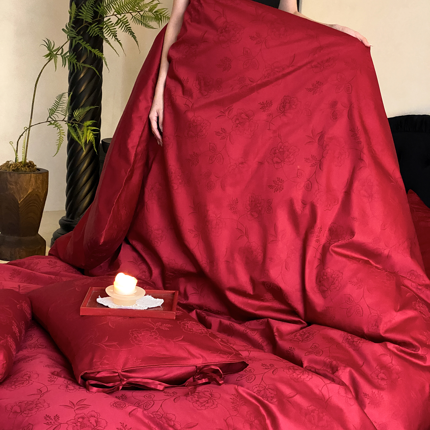当前位置: 91家纺网 > 商品网购 > 床品套件 > 四件套 > 长绒棉四件套 > (总)极简 2025新款秋冬款100S长绒棉精美提花系列四件套-红薇绣梦