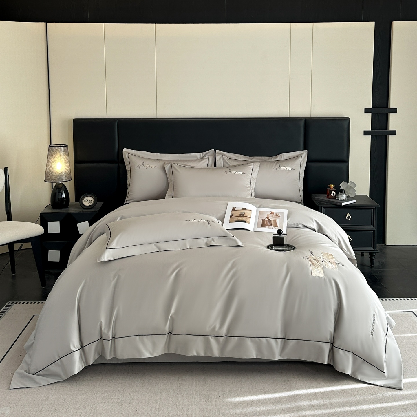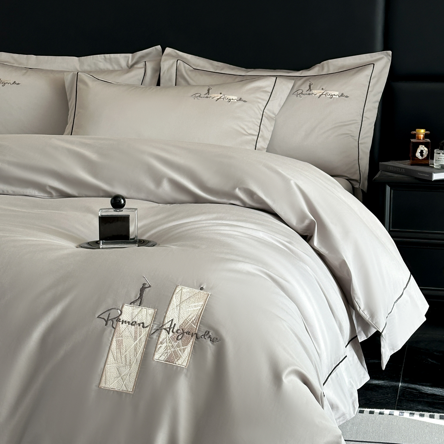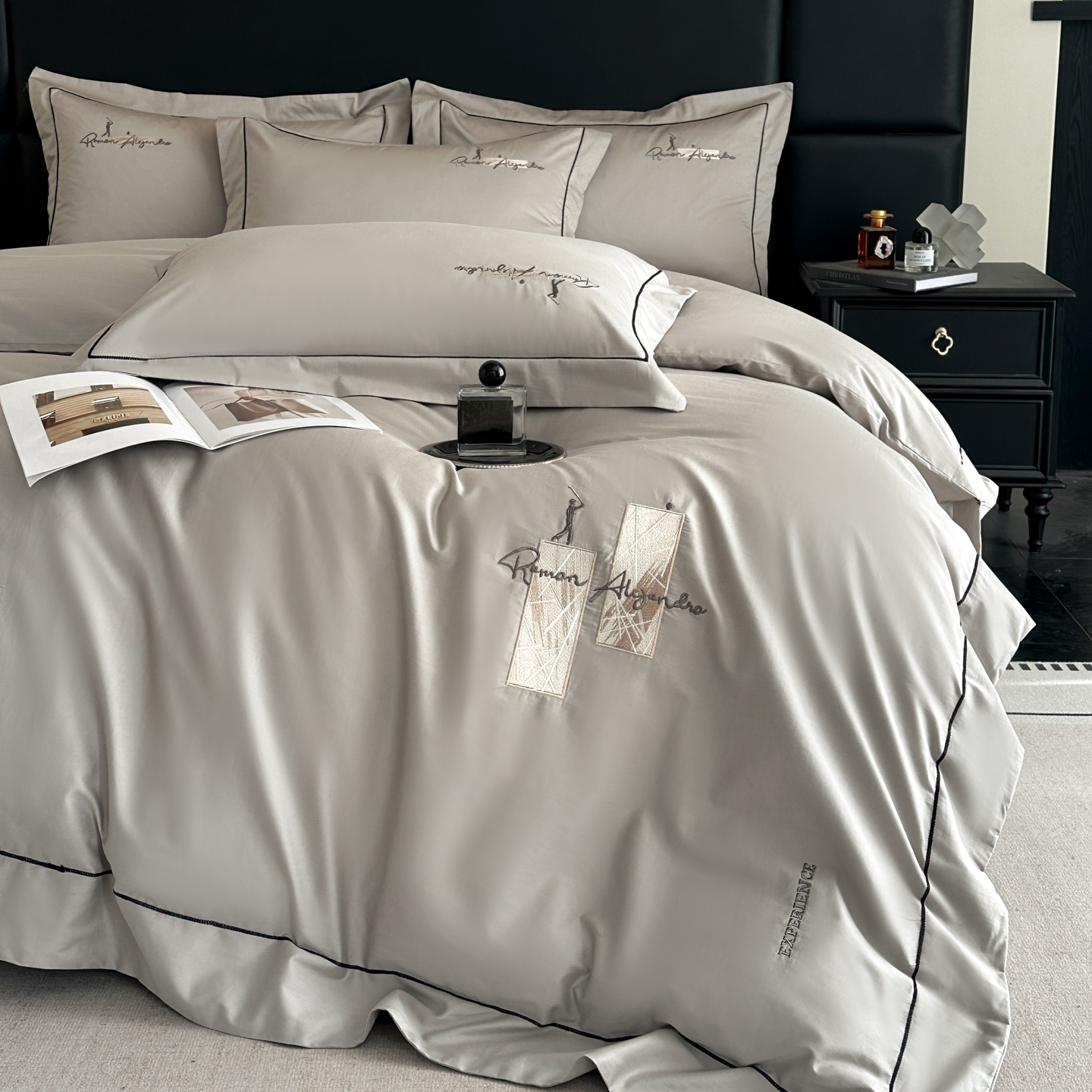 (总)新方向 2025新款刺绣全棉100s贡缎长绒棉四件套-往事,往事-爵士灰,往事-香槟