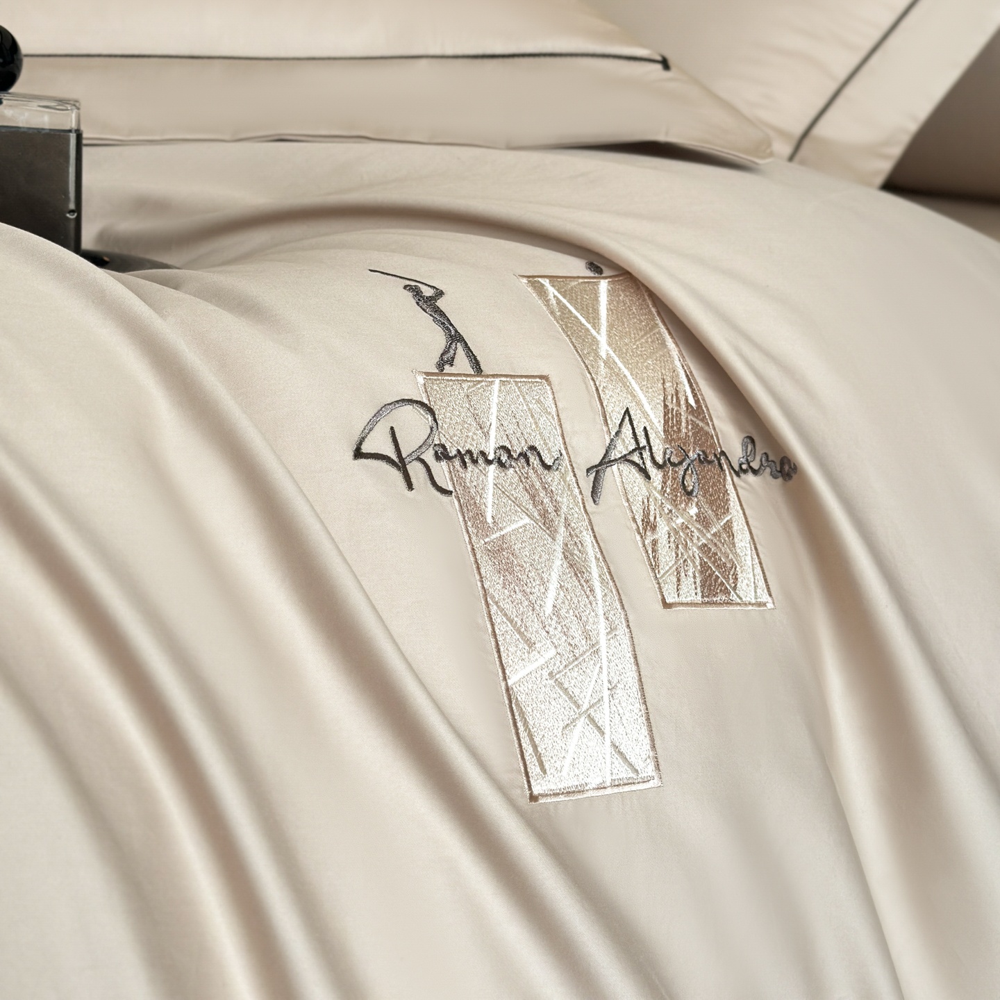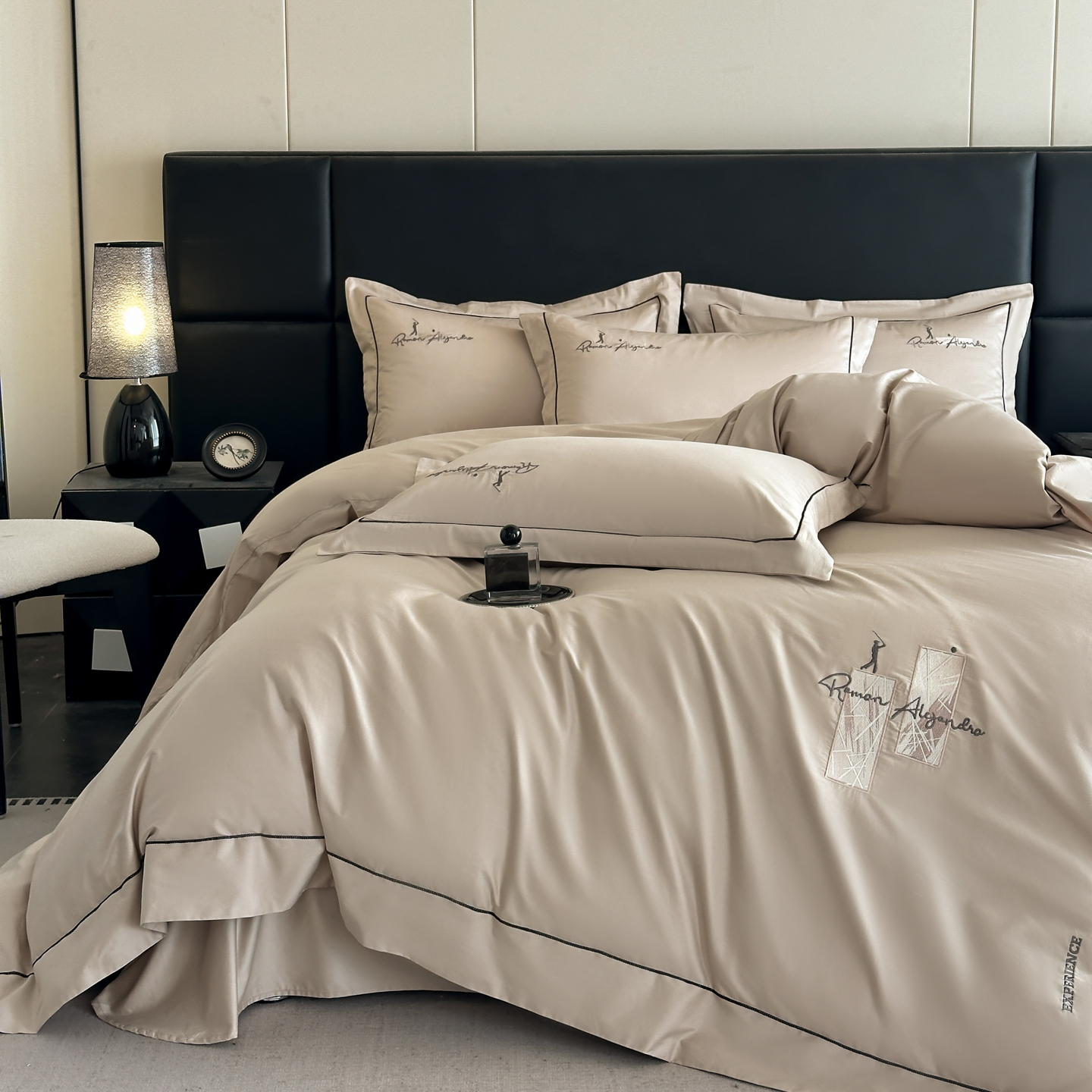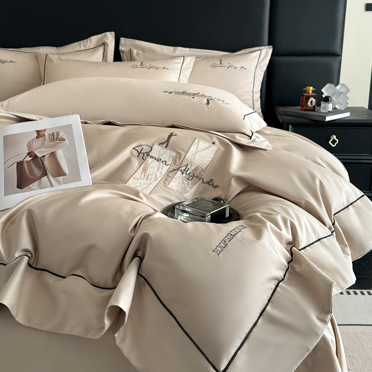 (总)新方向 2025新款刺绣全棉100s贡缎长绒棉四件套-往事,往事-爵士灰,往事-香槟