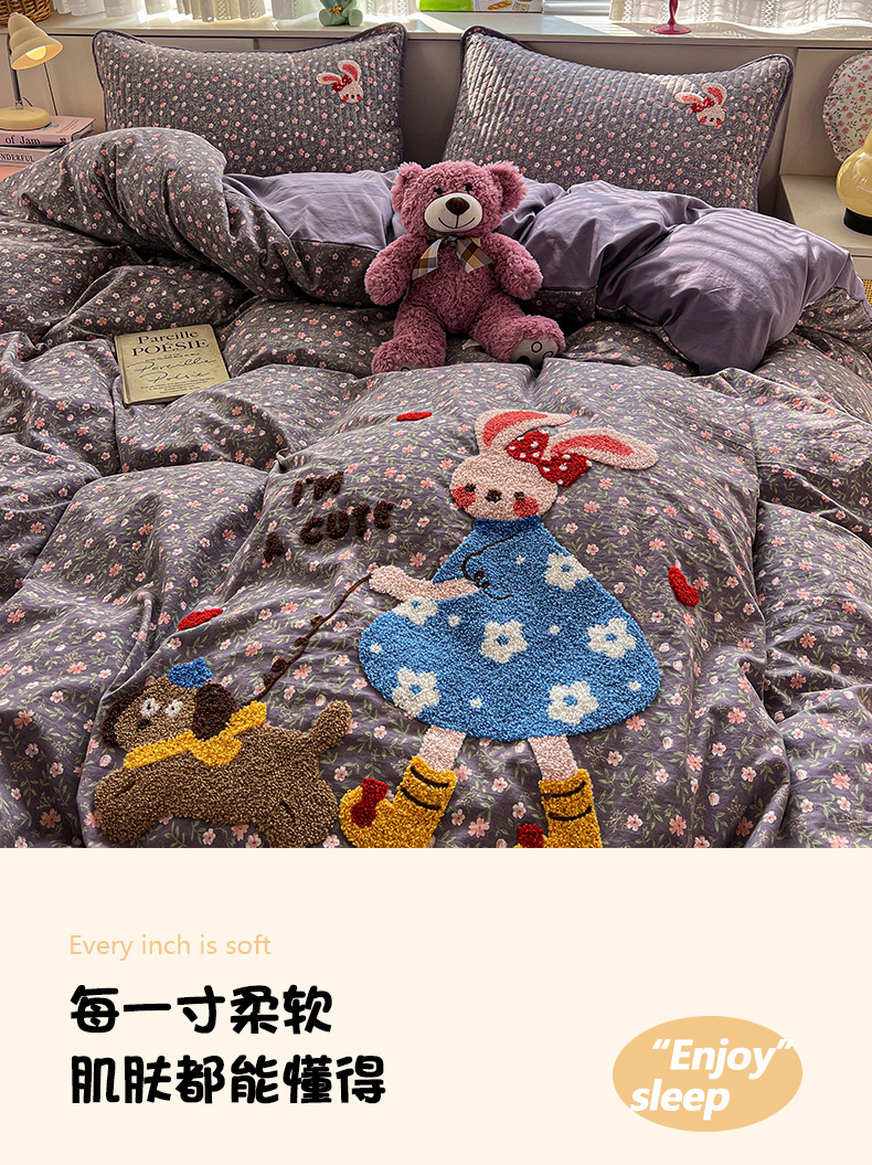 (总)水墨江南 2025新款超柔水洗棉贴布绣四件套,抱抱熊蓝,抱抱熊奶油咖,萝卜兔粉,萝卜兔蓝,猫猫狗蓝,猫猫狗奶油蓝,羊小驼粉,羊小驼蓝