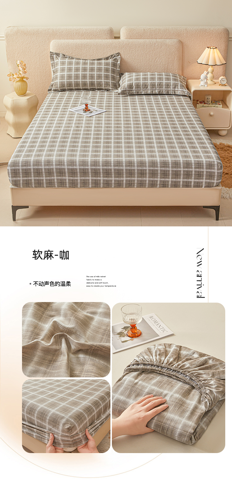• 91家纺网 家纺一手货源 找家纺 名优家纺 2026新款纯色高密全棉纯棉床笠单床笠床笠单件 初见-咖