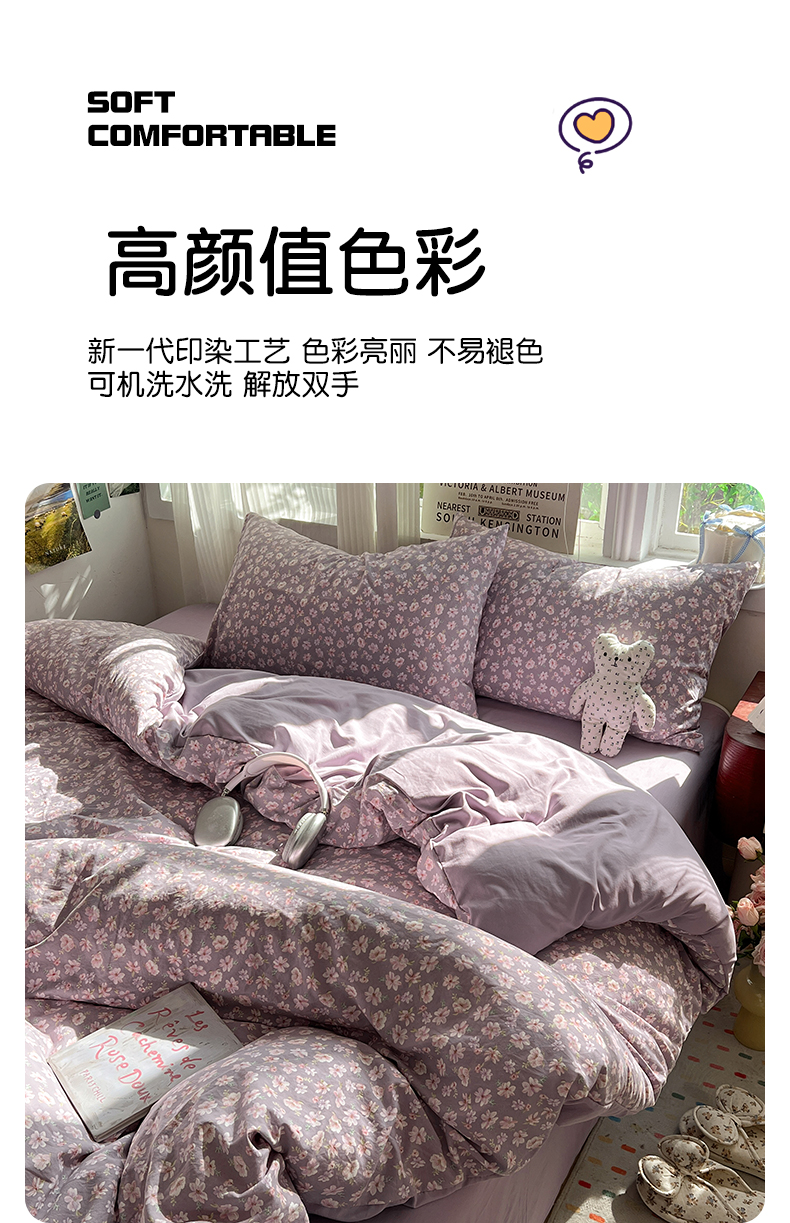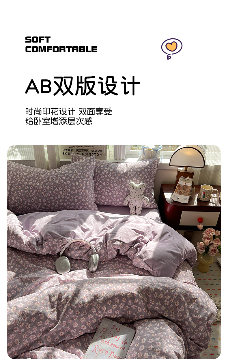 (总)水墨江南 2025新款小清新水洗棉印花四件套,豆蔻,格调,格子小狗,格子樱桃,海盐波点,花季,花田-粉,花田-蓝,假日小熊,山茶花,芋泥波点,紫色蝴蝶结