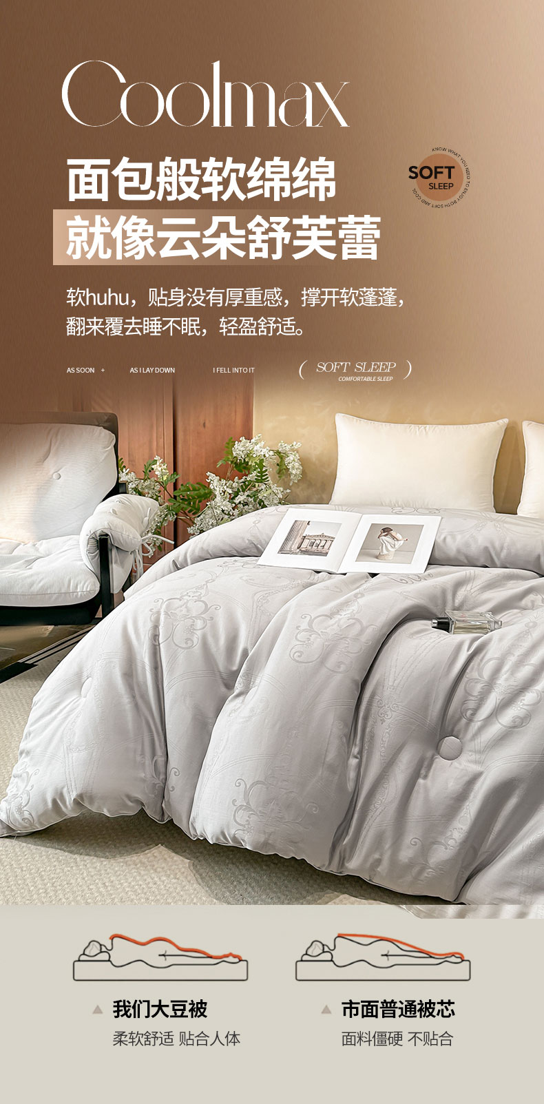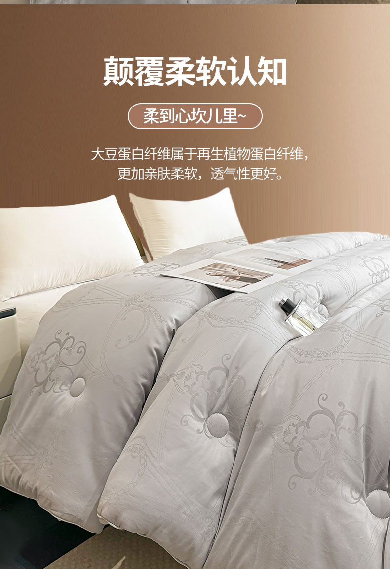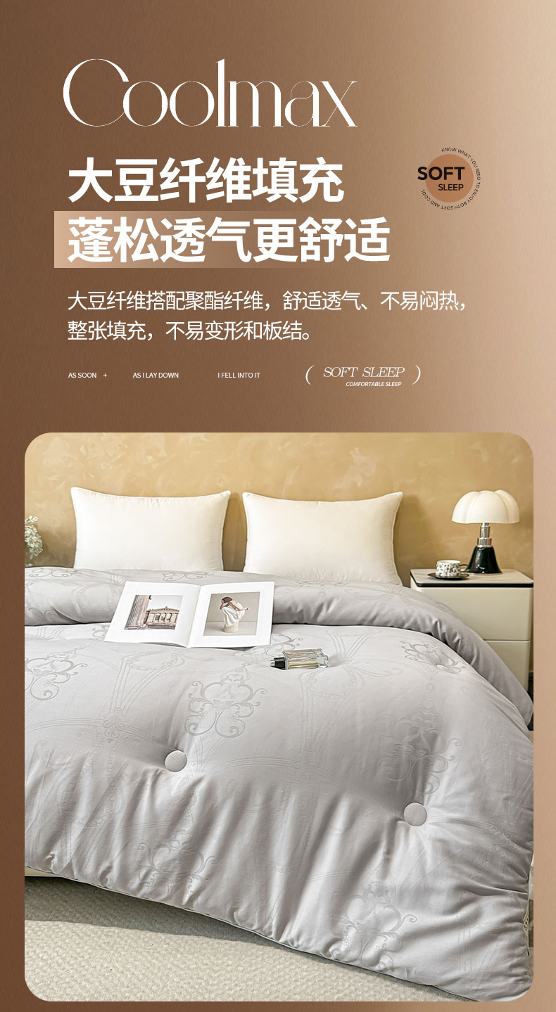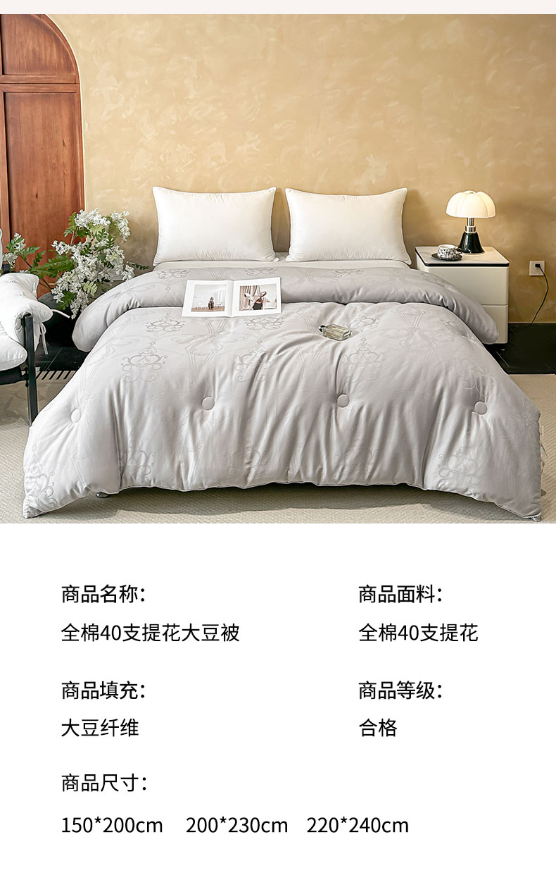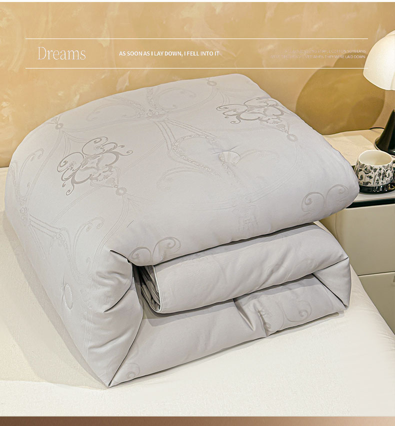 • 91家纺网 家纺一手货源 找家纺 壹张床 2025新款全棉40支大提花大豆被保暖冬被家用被子被芯春秋被冬被学生被 雅芙-灰