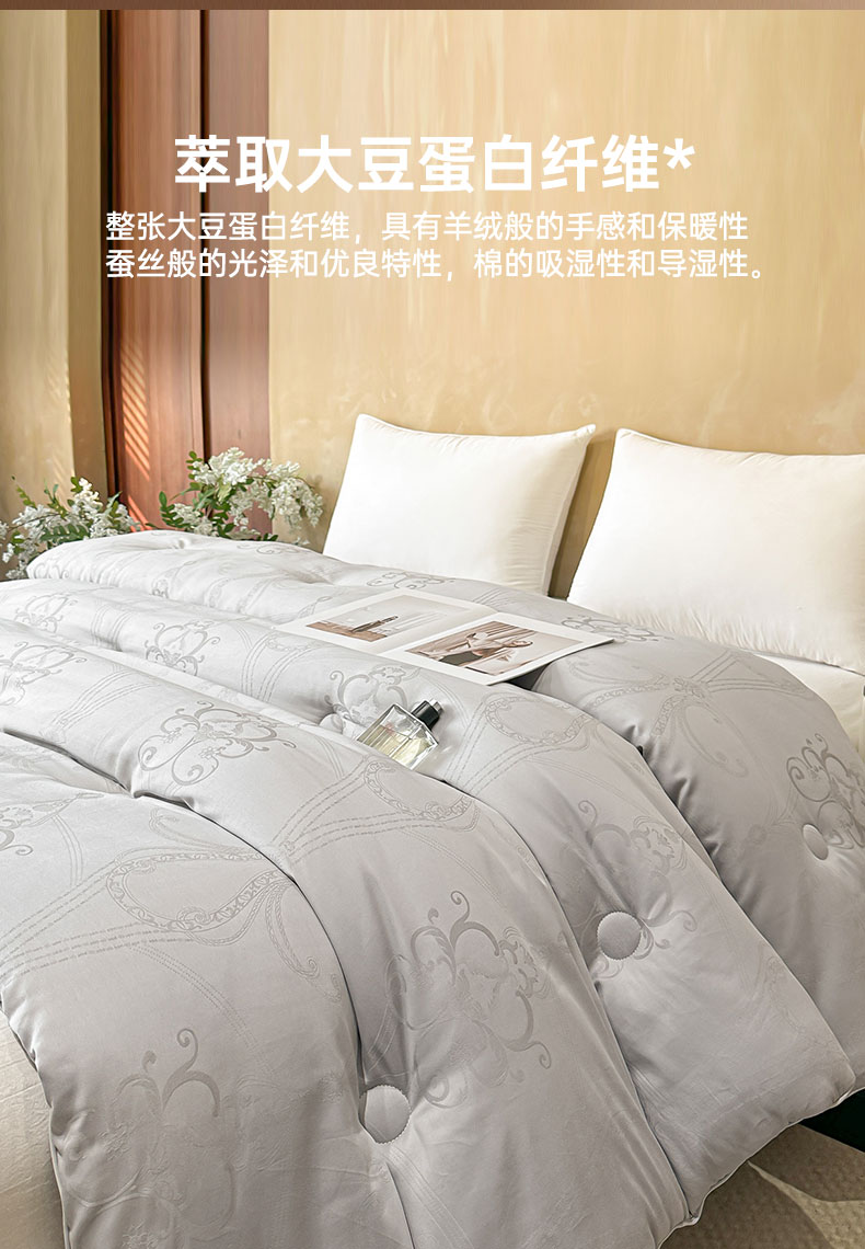 (总)壹张床 2025新款全棉40支大提花大豆被保暖冬被家用被子被芯春秋被冬被学生被,雅芙-白,雅芙-玉,雅芙-灰