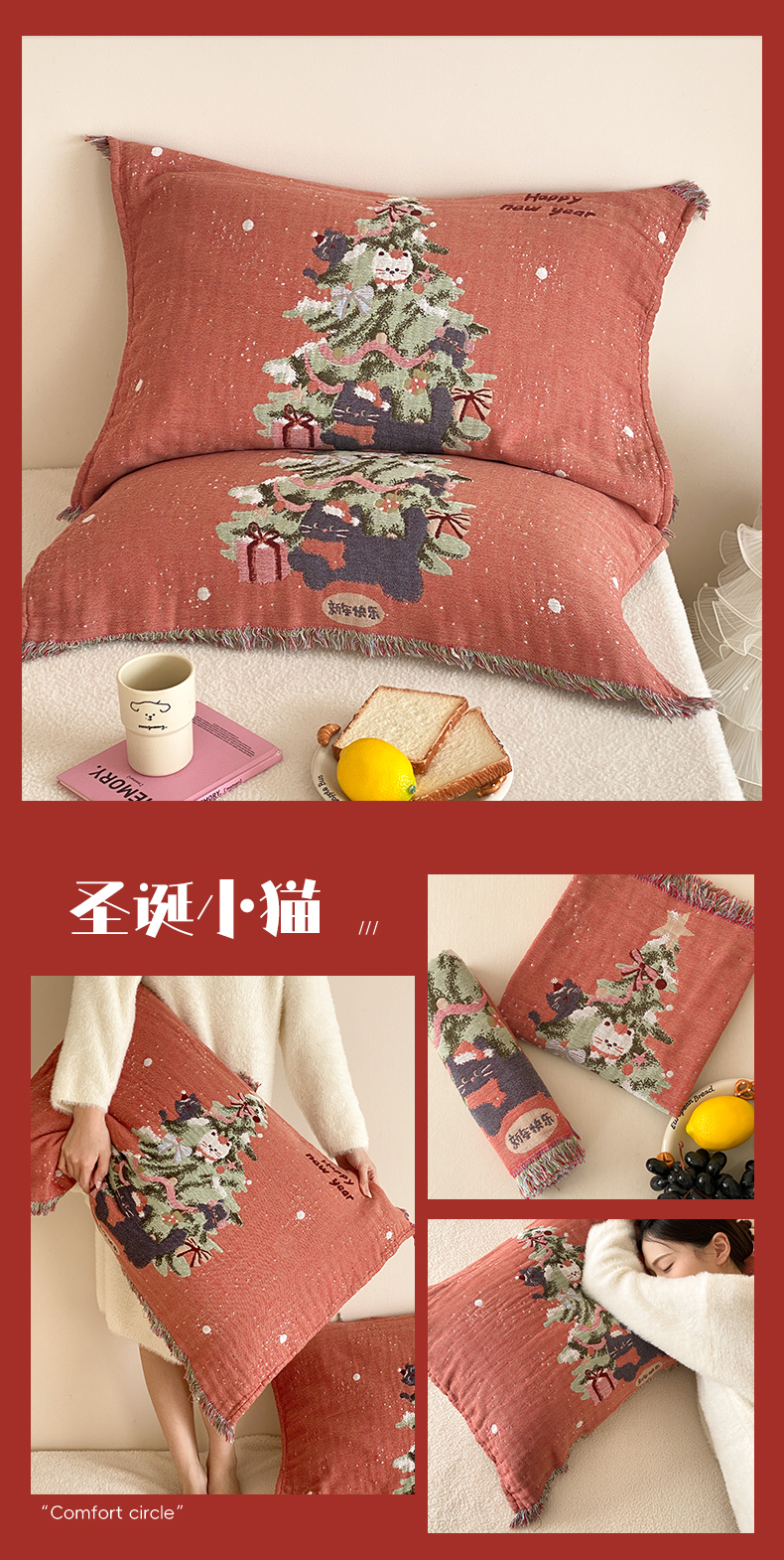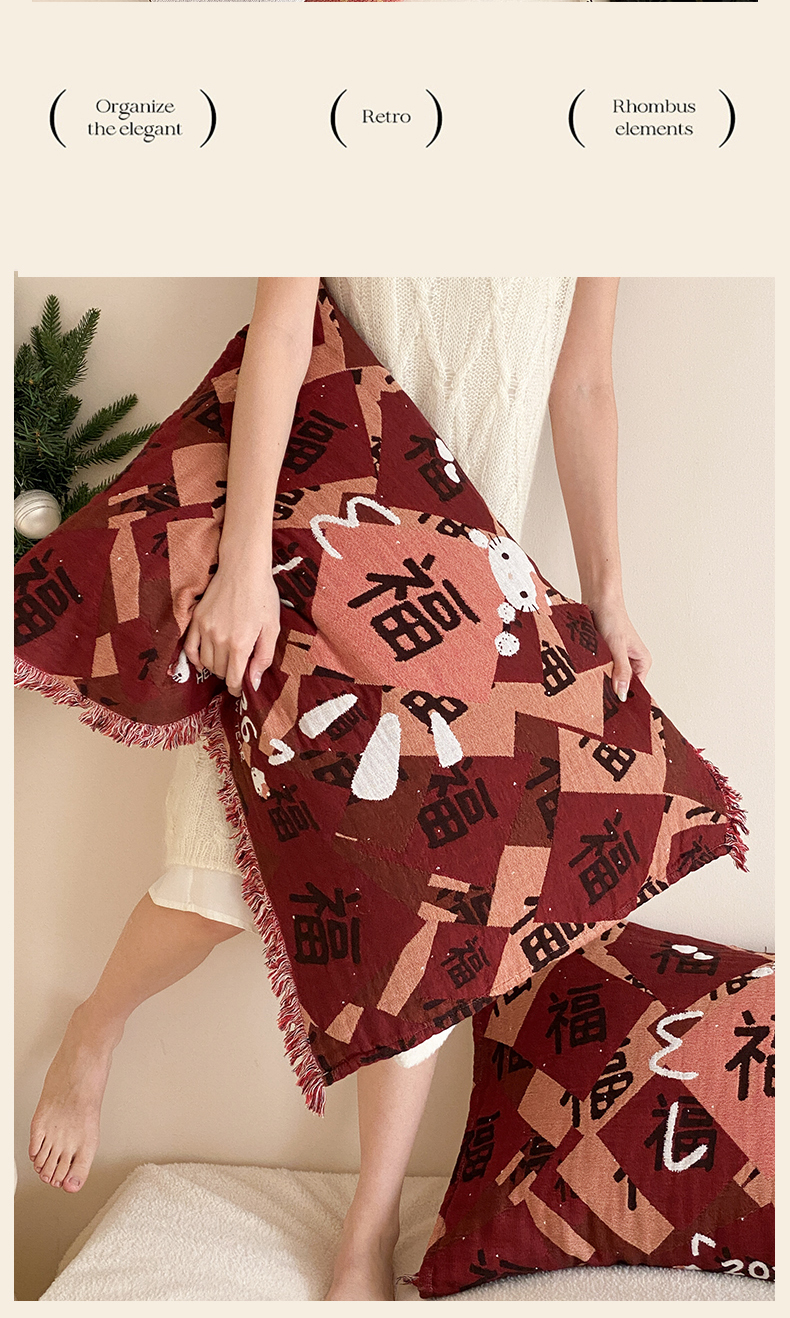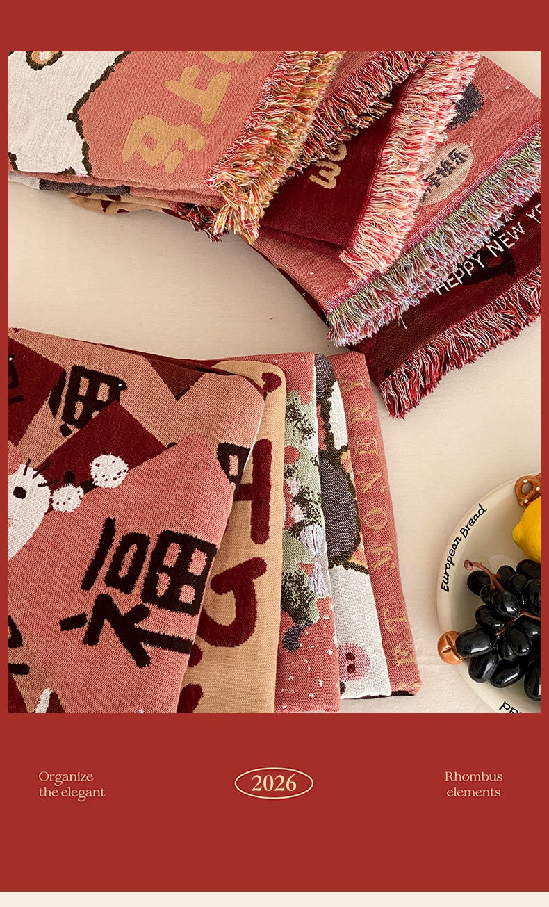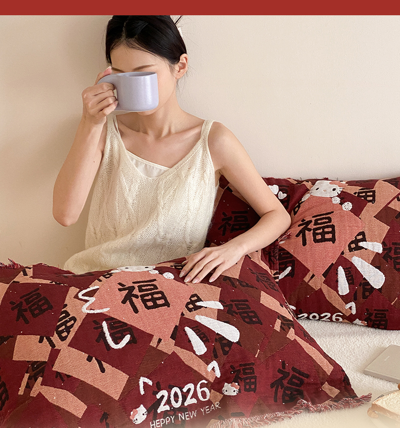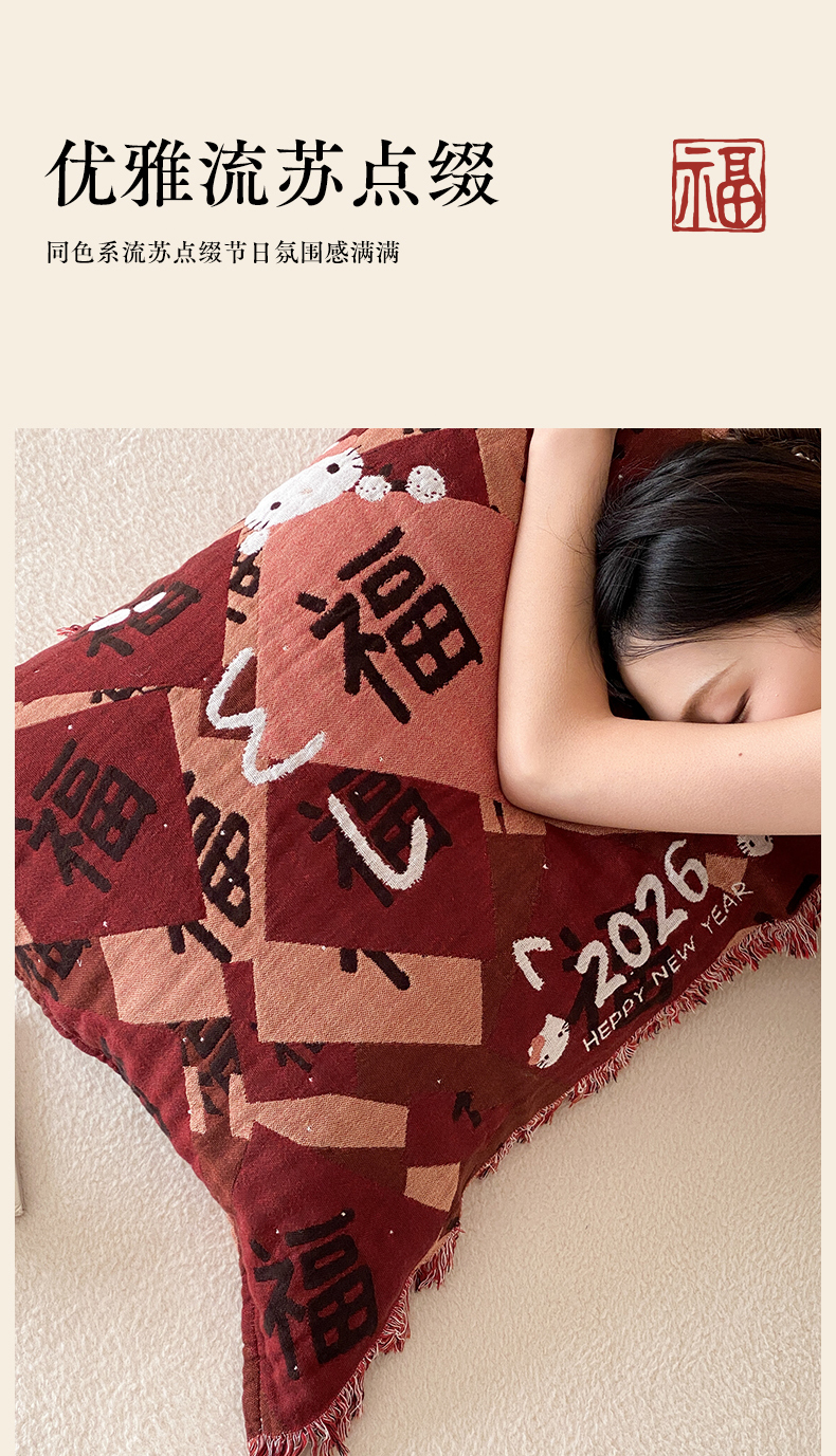 (总)麻依 2025新款四层纱布全棉新年大红枕巾流苏婚庆枕盖,八方来财,发财暴富,福禄,福气满满,福娃,公主发财,好运,锦鲤,马上有钱,平安喜乐,圣诞小猫,新年快乐,组合