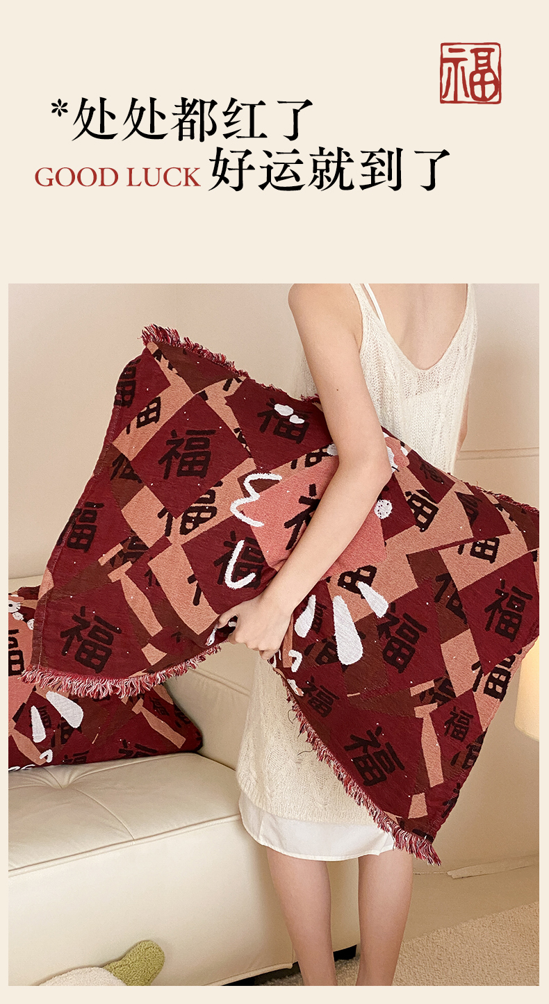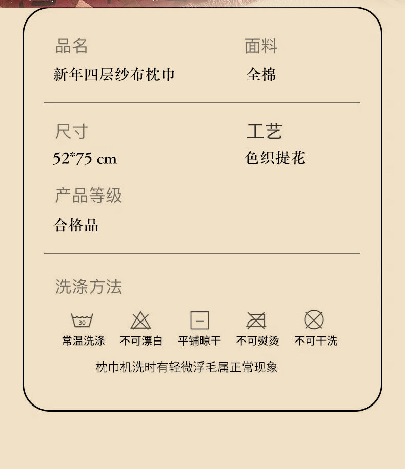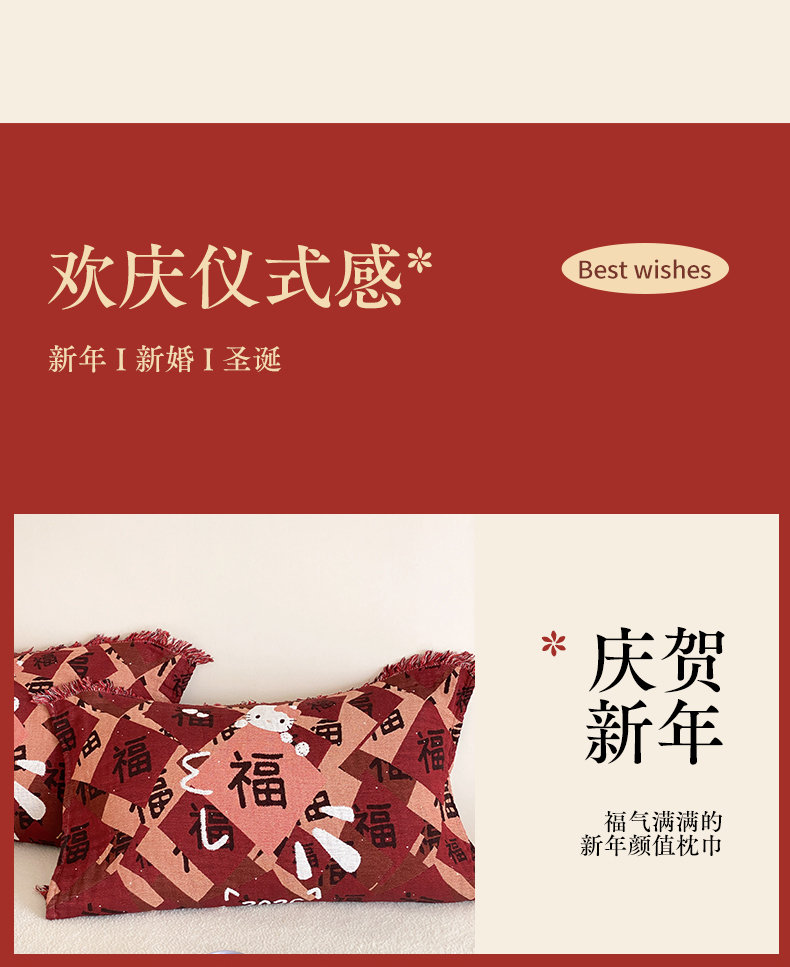 商品名称:麻依 2025新款四层纱布全棉新年大红枕巾流苏婚庆枕盖 福气满满