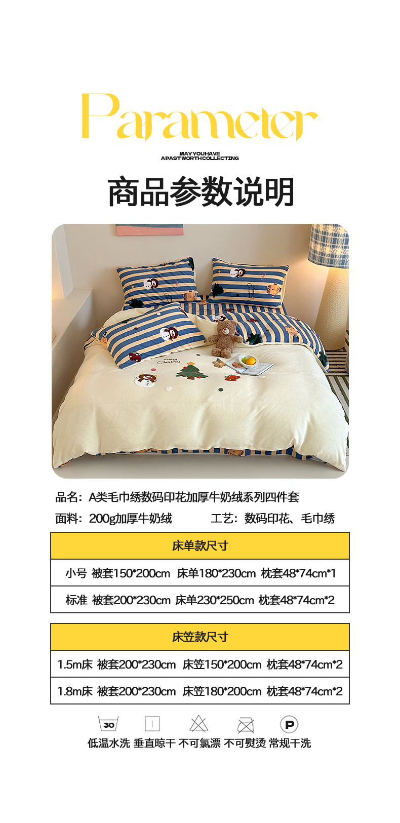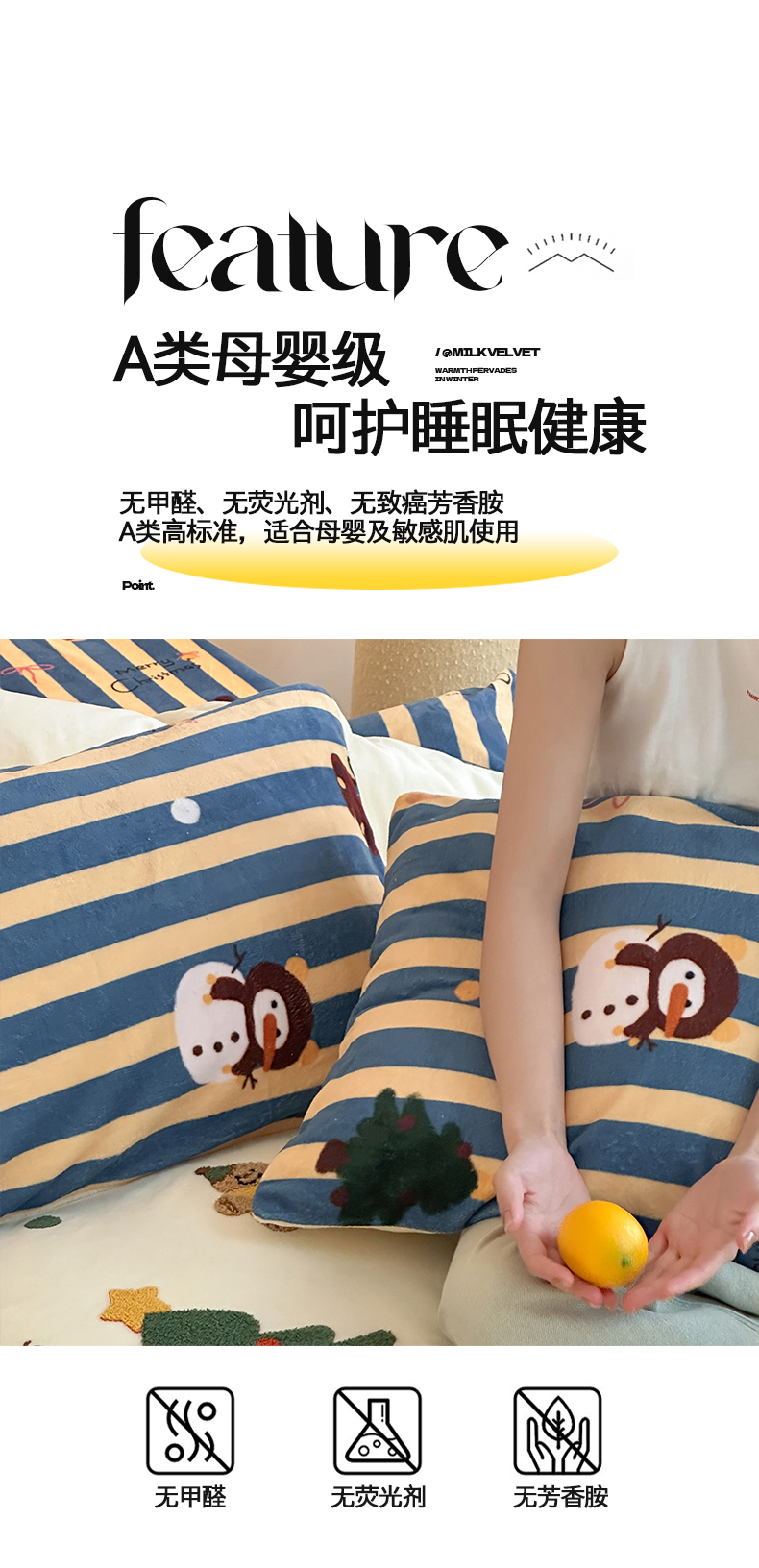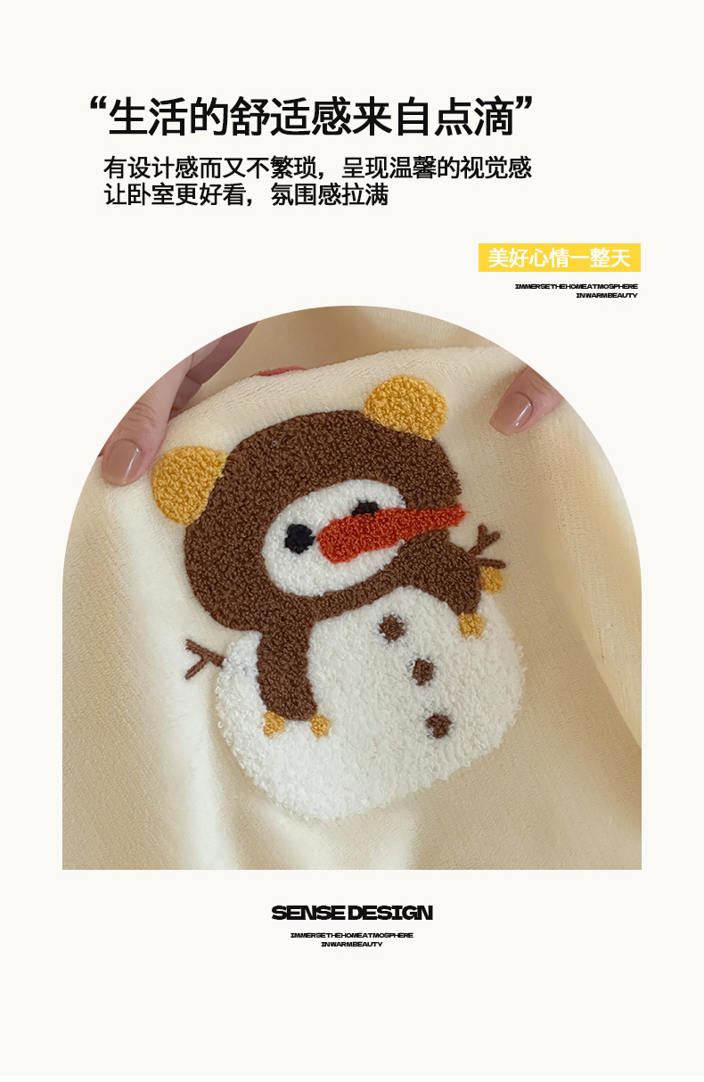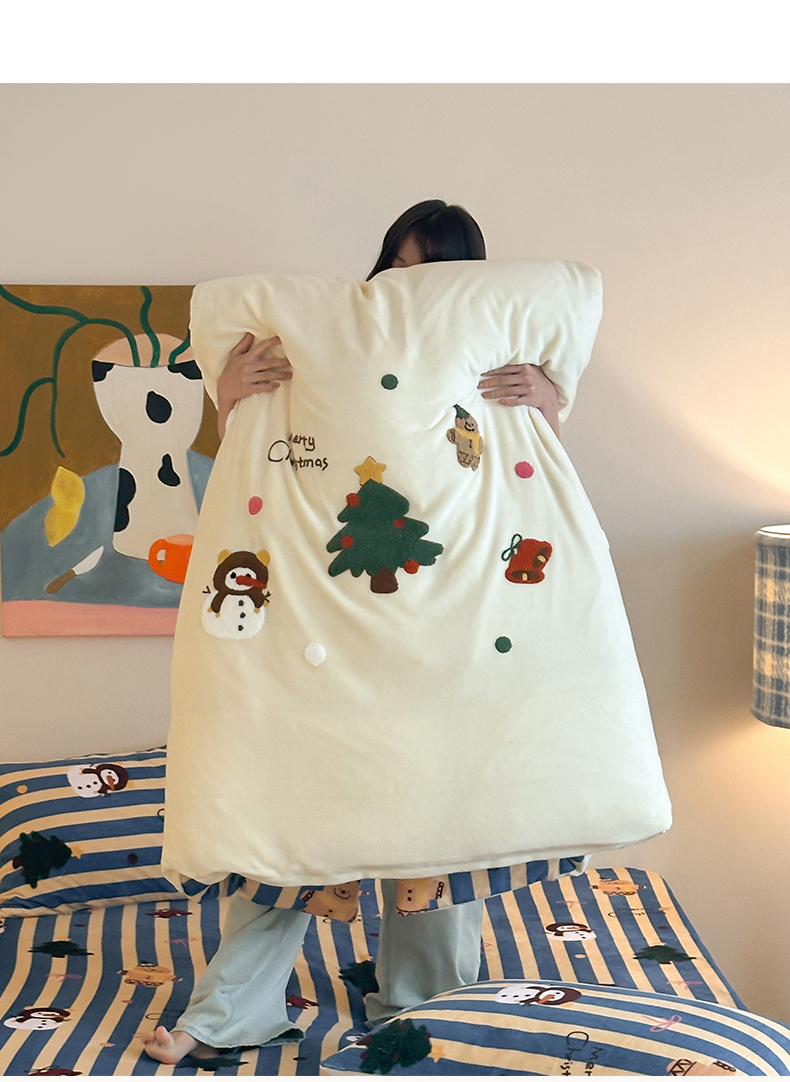 当前位置: 91家纺网 > 商品网购 > 床品套件 > 四件套 > 牛奶绒四件套 > 桃子家居 2025新款A类毛巾绣立体数码印花可爱卡通圣诞印加绣加厚牛奶绒系列四件套 绒印加绣-奶黄条纹雪人
