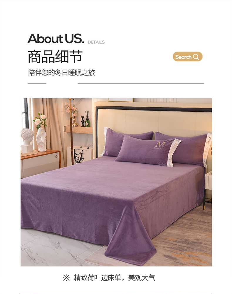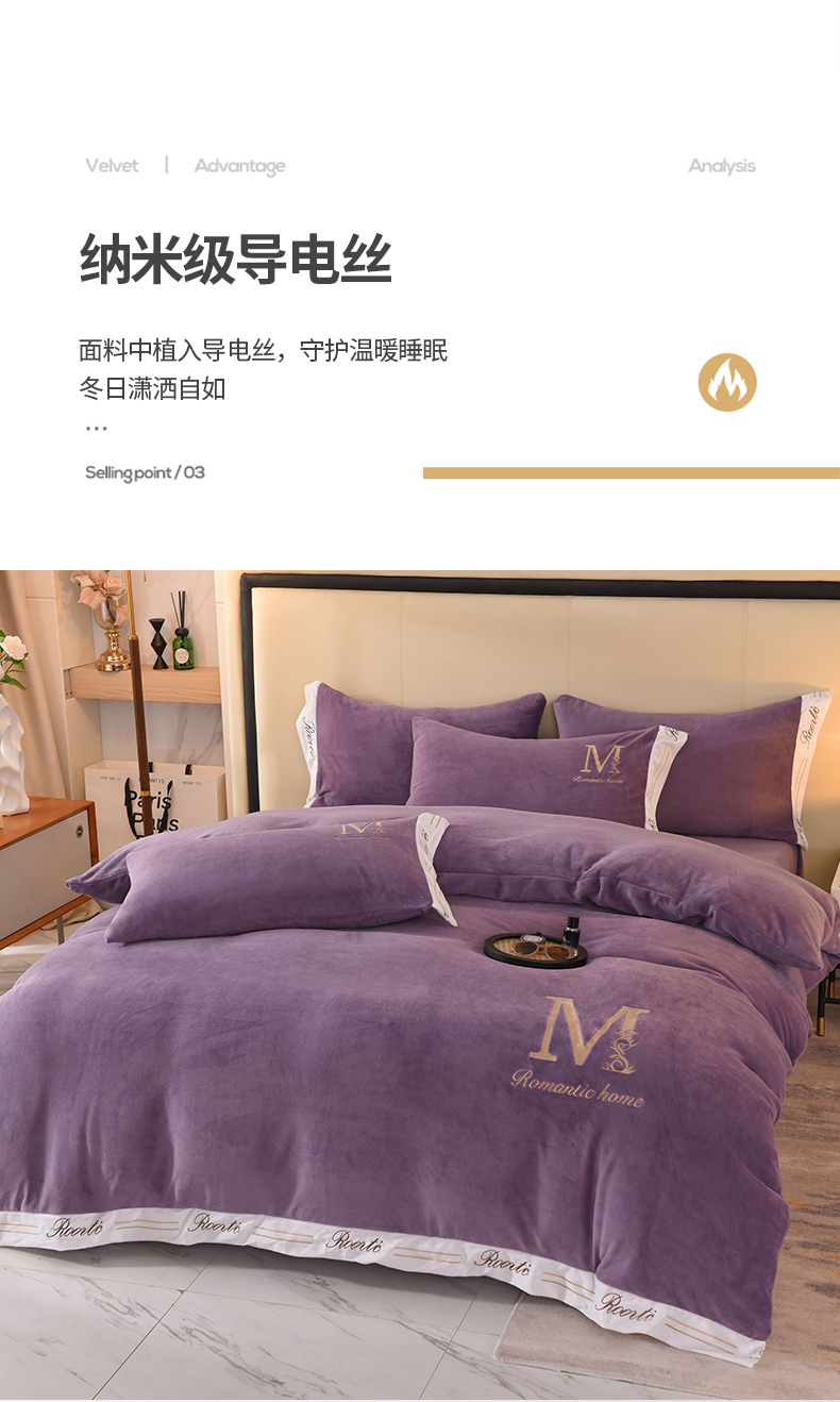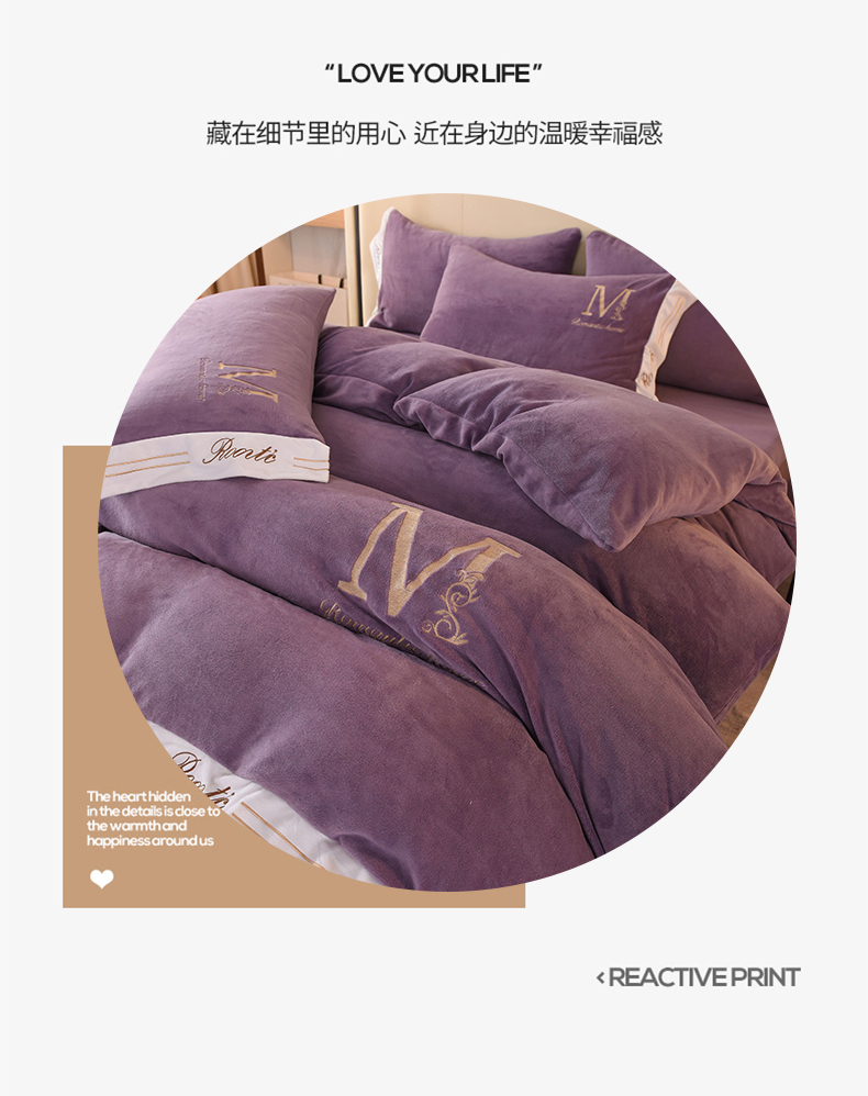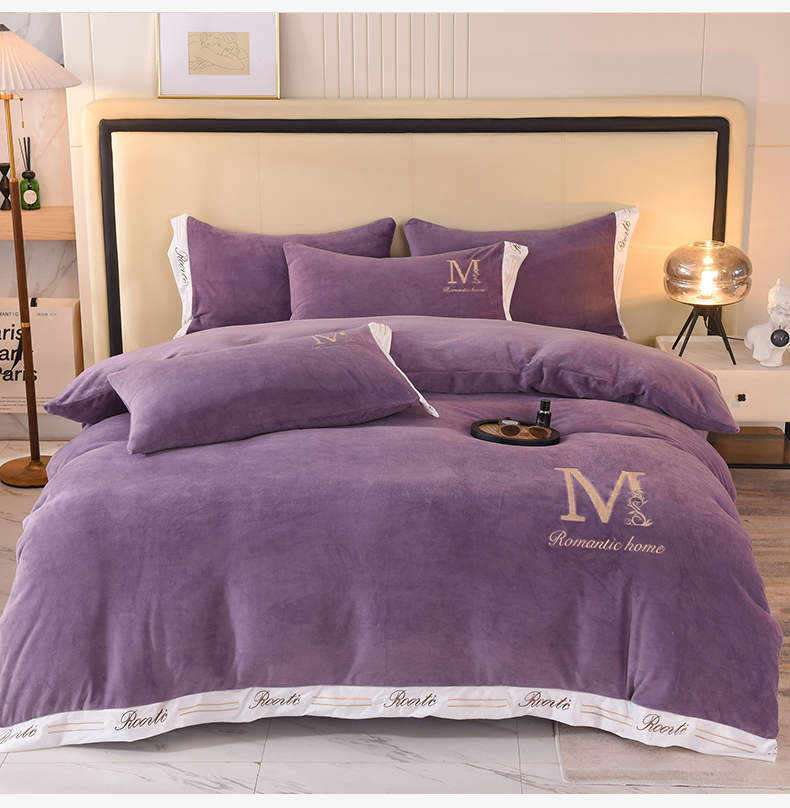 商品名称:大米家居 2025新款宽边刺绣牛奶绒四件套-罗曼蒂克系列 罗曼蒂克-暮山紫