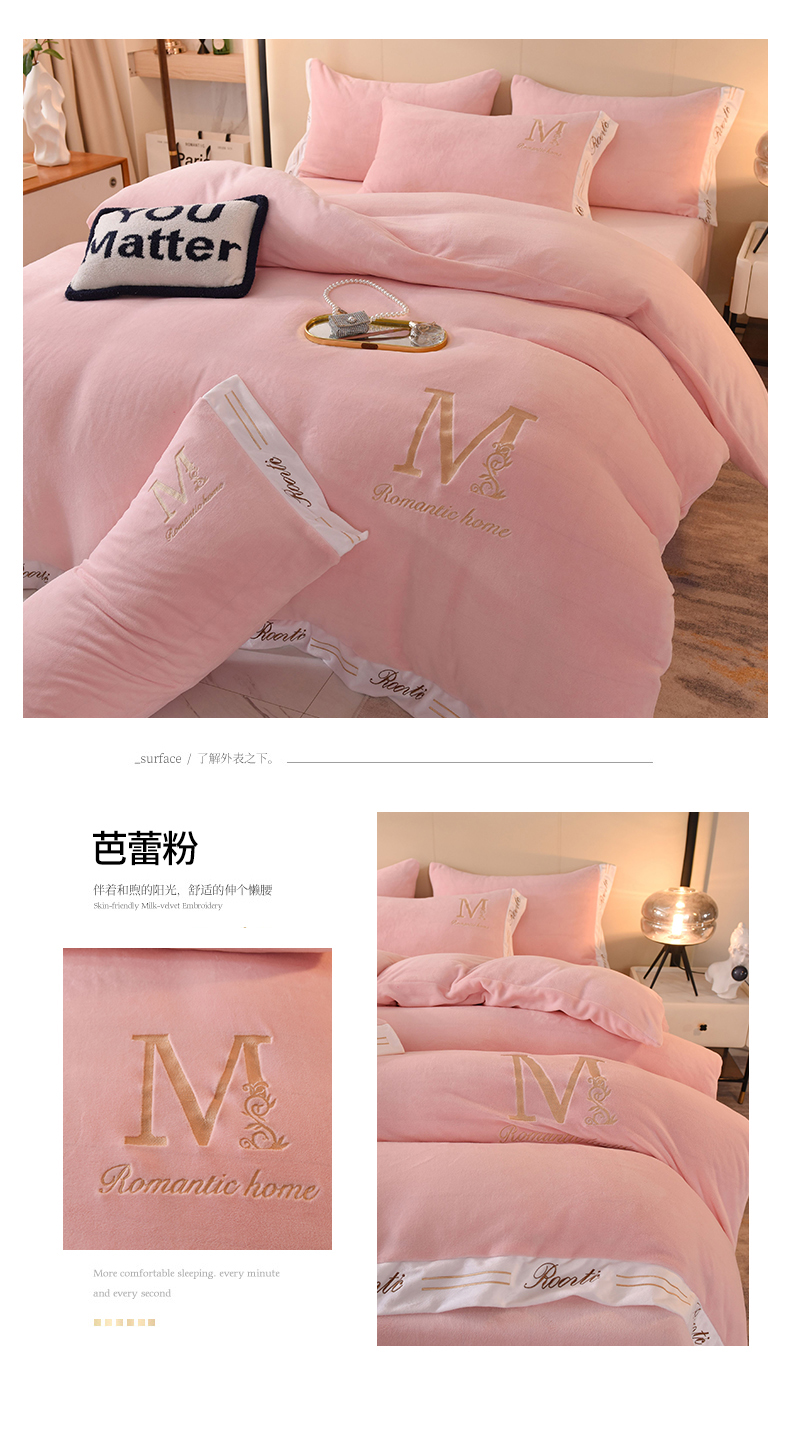 (总)大米家居 2025新款宽边刺绣牛奶绒四件套-罗曼蒂克系列,罗曼蒂克-芭蕾粉,罗曼蒂克-克莱因蓝,罗曼蒂克-莫兰迪绿,罗曼蒂克-暮山紫,罗曼蒂克-奶油橙,罗曼蒂克-星空灰