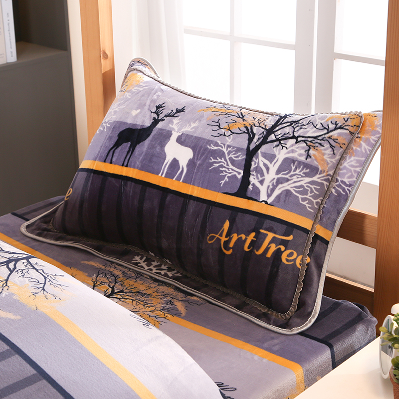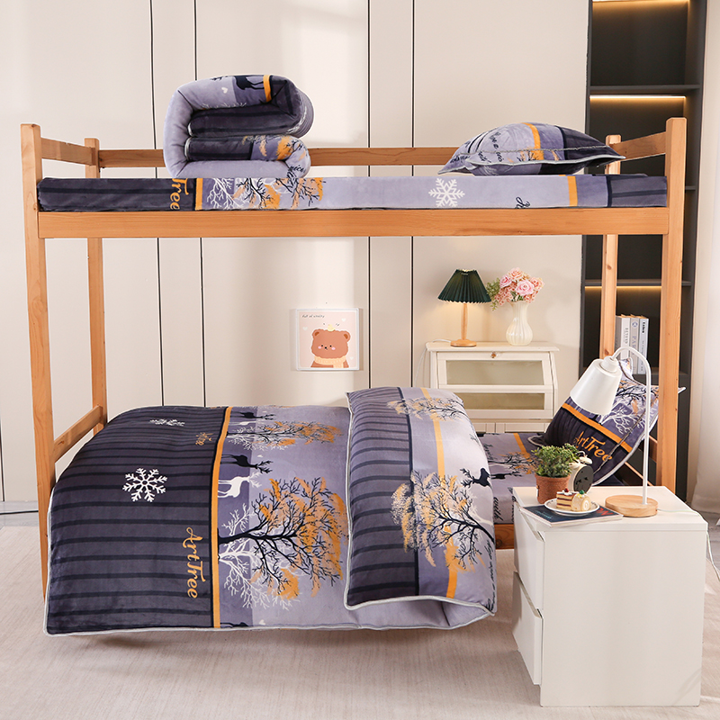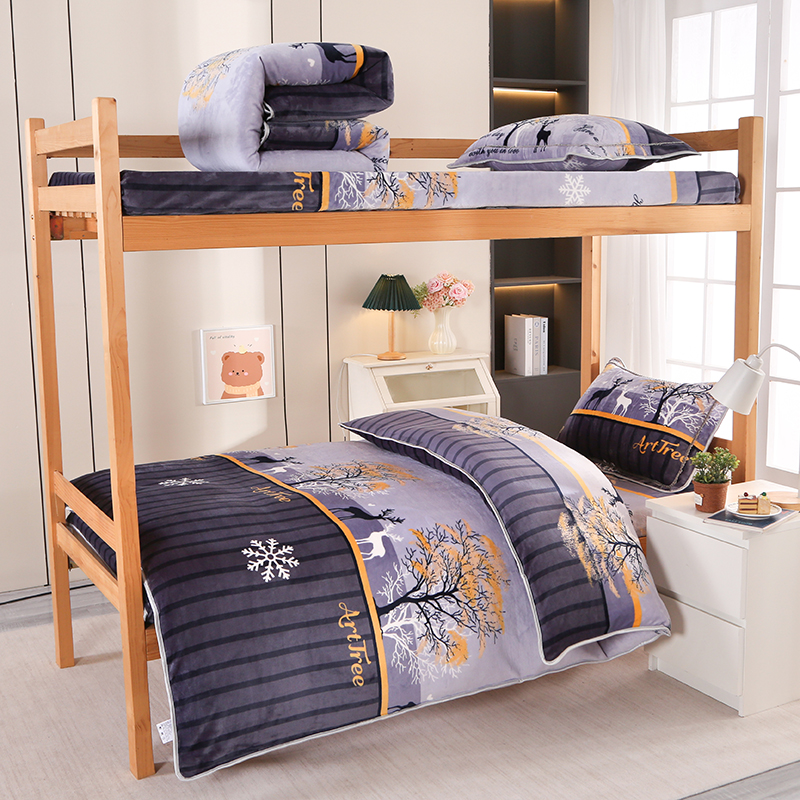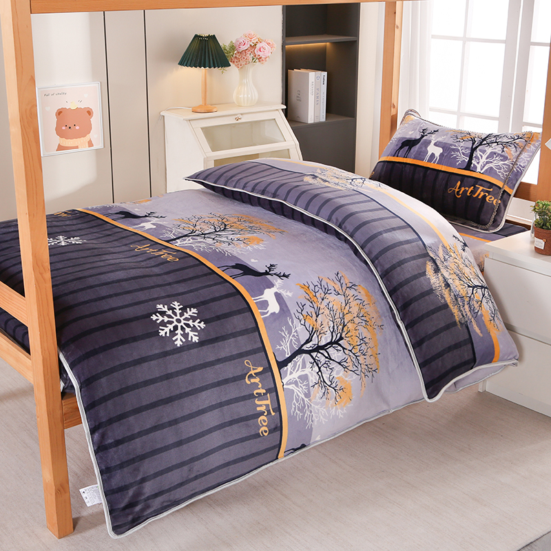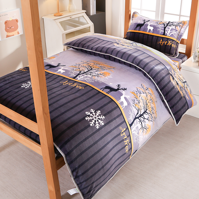 雨洋家纺 2025新款学生季加厚保暖牛奶绒金貂绒婴儿宝宝学生三件套 一鹿有你