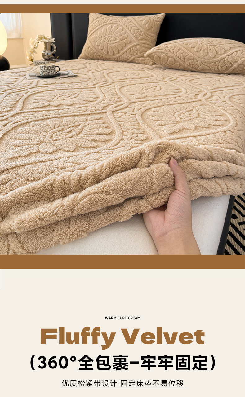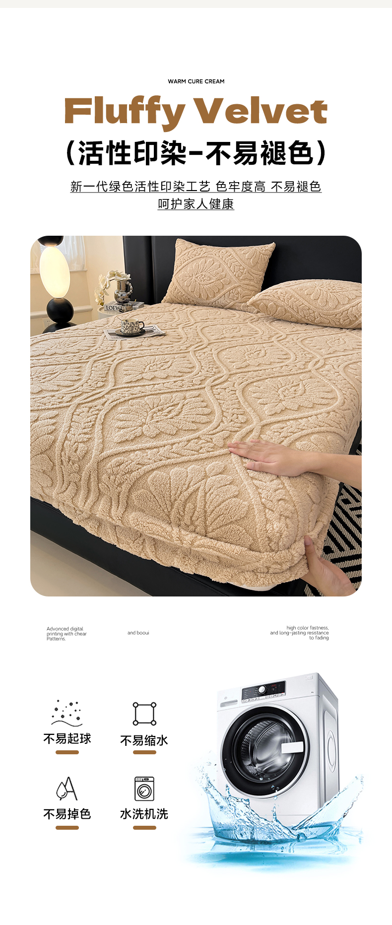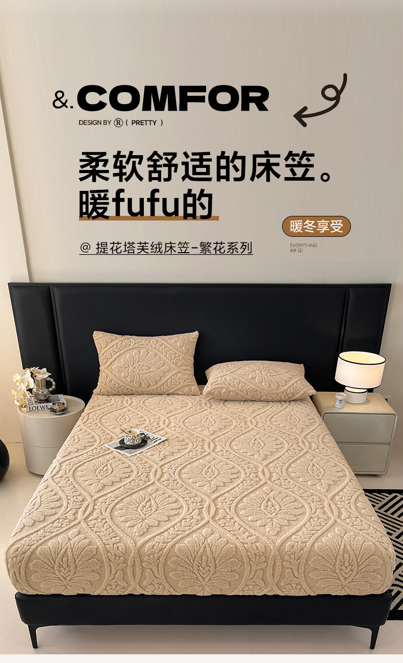 • 91家纺网 家纺一手货源 找家纺 (总)莱家富 2026新款塔芙绒舒棉绒雕花绒单床笠 床笠单件-花朵系列(可提供压缩),组合图仅供展示不可下单,花朵-粉玉,花朵-湖蓝,花朵-米驼,花朵-奶白,花朵-桑绿,花朵-雾灰