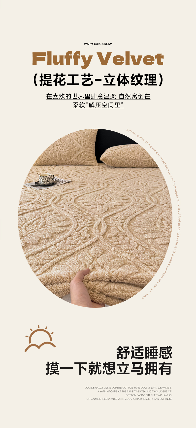 (总)莱家富 2026新款塔芙绒舒棉绒雕花绒单床笠 床笠单件-花朵系列(可提供压缩),组合图仅供展示不可下单,花朵-粉玉,花朵-湖蓝,花朵-米驼,花朵-奶白,花朵-桑绿,花朵-雾灰