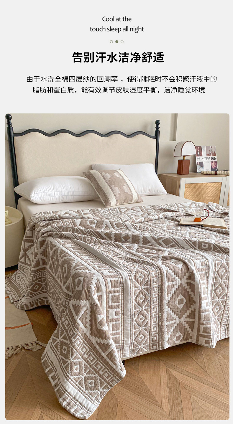 (总)卡奥家纺 2026新款水洗全棉纯棉四层纱盖毯毛巾被夏凉被夏被空调被-图腾系列,图腾-灰,图腾-咖,图腾-蓝