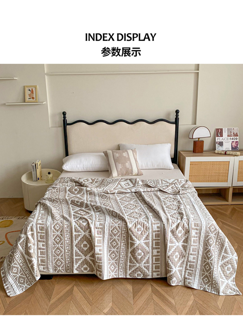 (总)卡奥 2025款无印风日式水洗纯棉三层纱夏被毛巾被盖毯午睡毛毯,方格花-粉,方格花-蓝灰,方格花-米灰,十字格-粉,十字格-灰,十字格-米,几何-灰,几何-蓝