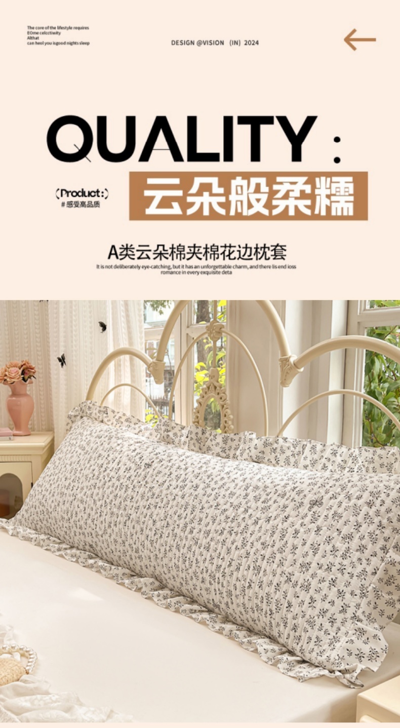 • 91家纺网 家纺一手货源 找家纺 梦舒羽 2026新款A类云朵棉夹棉花边枕套宿舍情侣双人加长枕芯内胆套-双人枕套 花间迷离(花边夹棉)