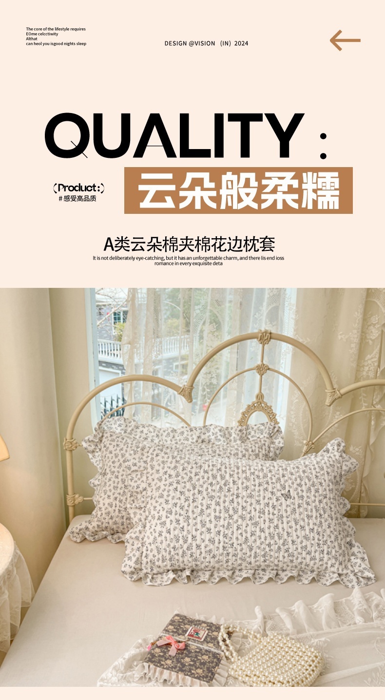 商品名称:(总)圣比熊 2026新款A类云朵棉夹棉花边枕套宿舍单人一只装枕芯内胆套-单人枕套