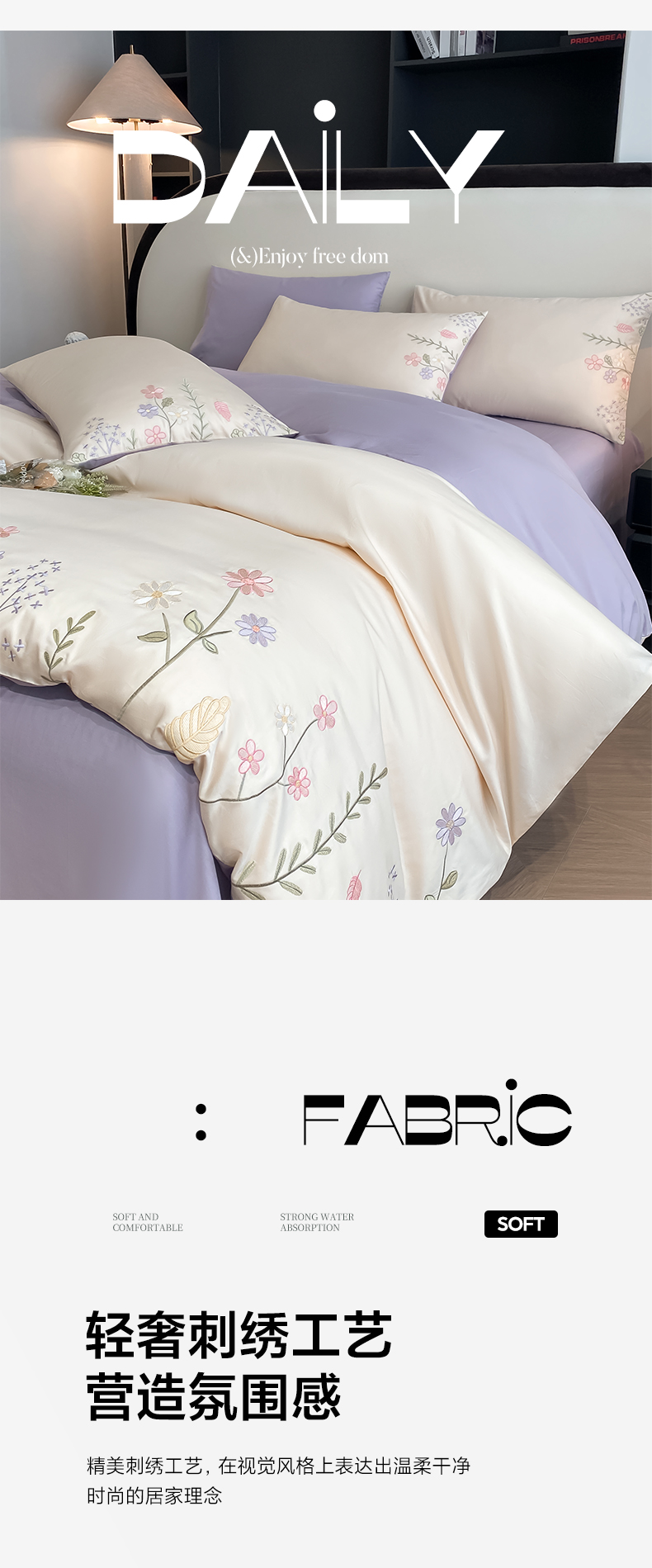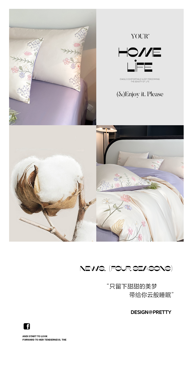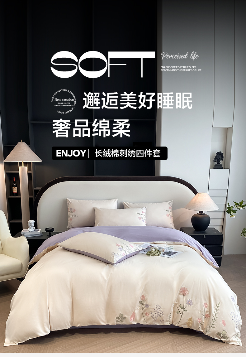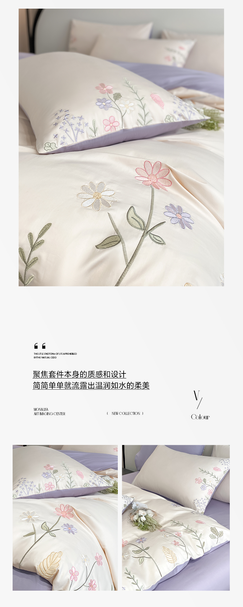 (总)欣宜家纺 2026春夏新款60支A类新疆长绒棉刺绣全棉四件套纯棉床品套件,玛丽-香芋紫,玛丽-梦幻蓝,玛丽-奶白,玛丽-轻奢粉,玛丽-石灰