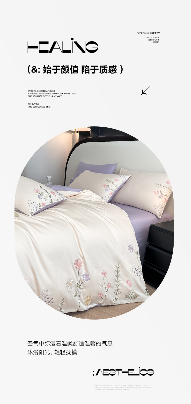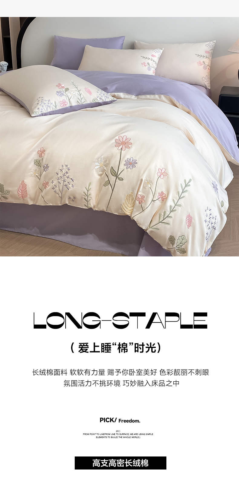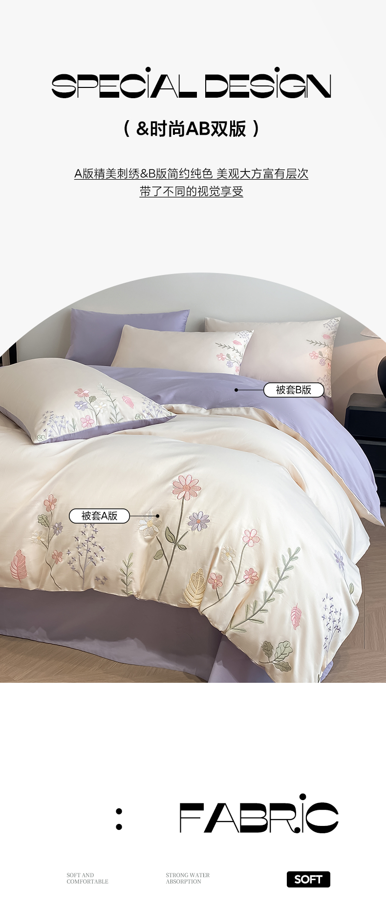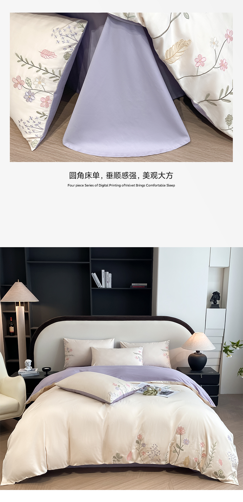 (总)欣宜家纺 2026春夏新款60支A类新疆长绒棉刺绣全棉四件套纯棉床品套件,玛丽-香芋紫,玛丽-梦幻蓝,玛丽-奶白,玛丽-轻奢粉,玛丽-石灰
