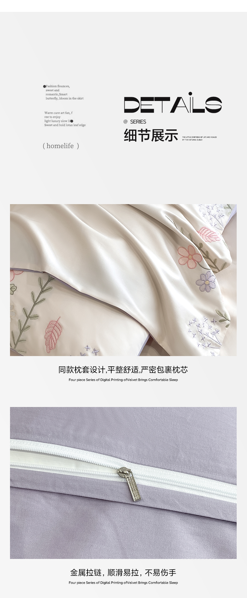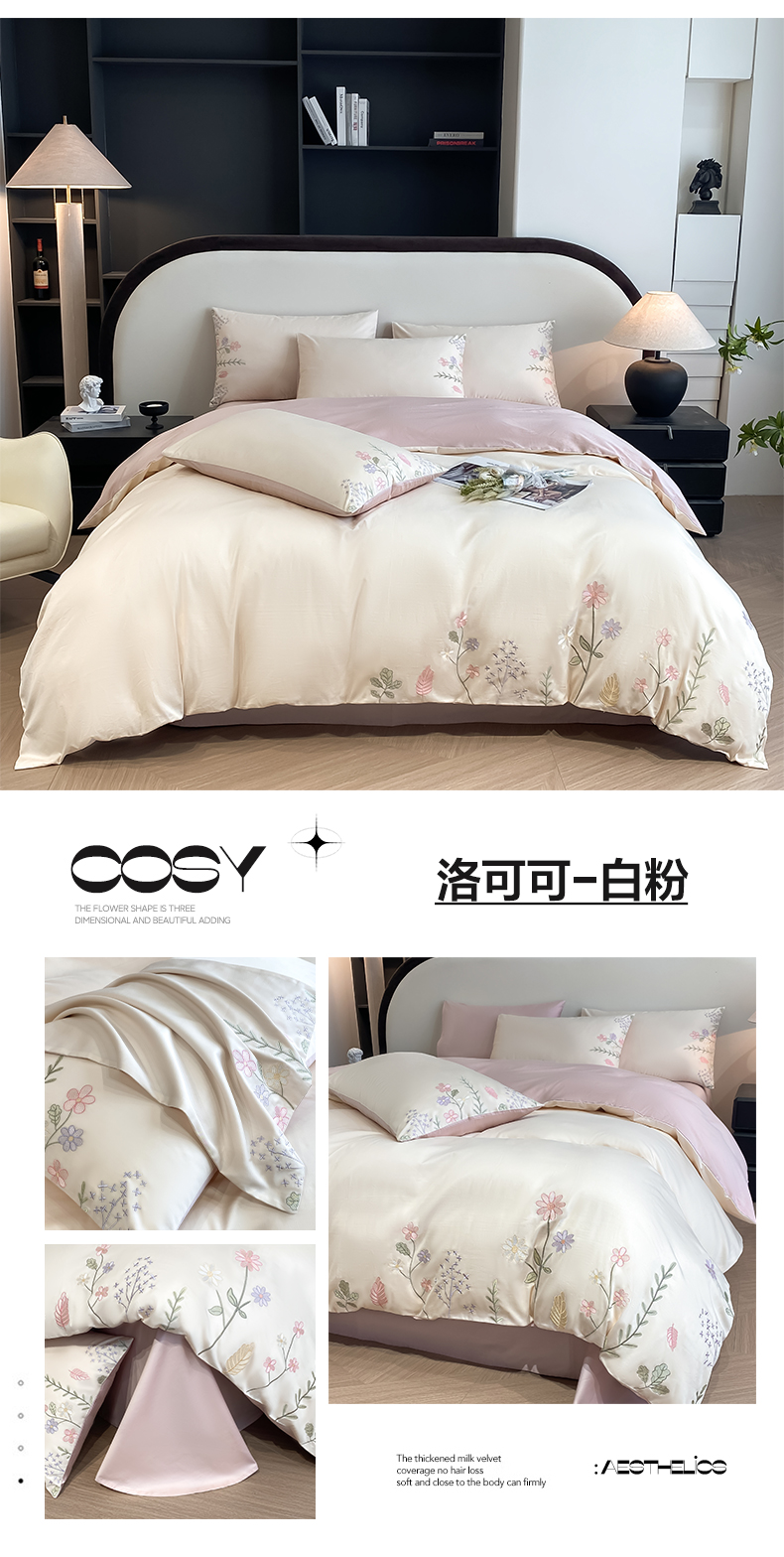 欣宜家纺 2025新款全棉长绒棉刺绣绣花款纯棉四件套高端礼盒款-洛可系列 洛可可-白紫