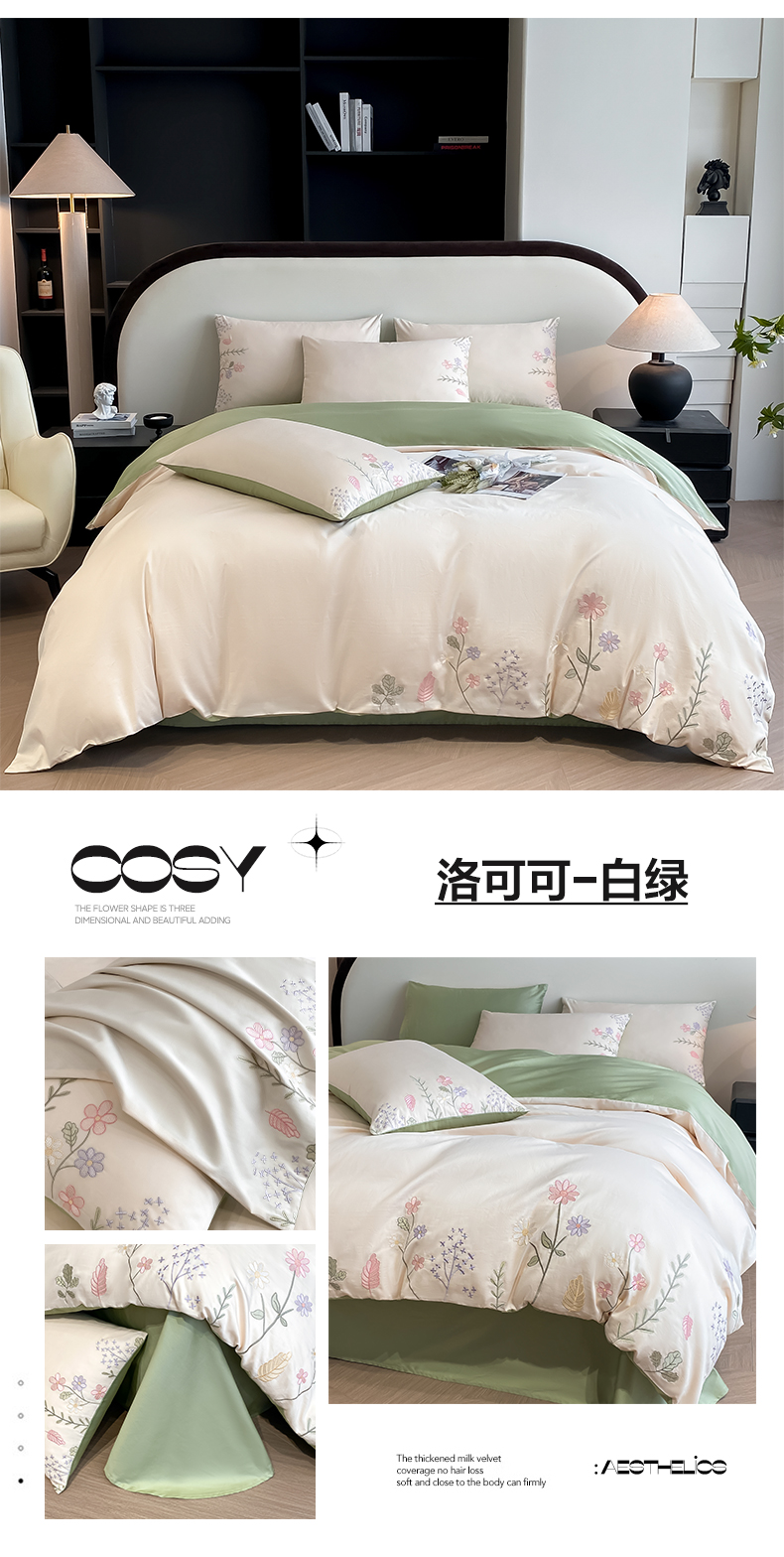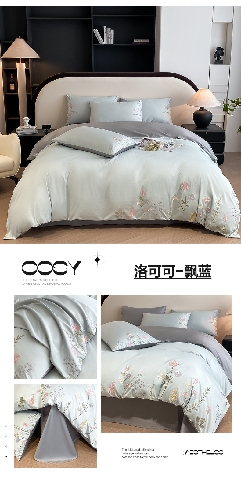 (总)欣宜家纺 2026春夏新款60支A类新疆长绒棉刺绣轻奢风四件套,樱花-白粉,樱花-清香绿,樱花-少女粉,樱花-天天蓝,樱花-香芋紫