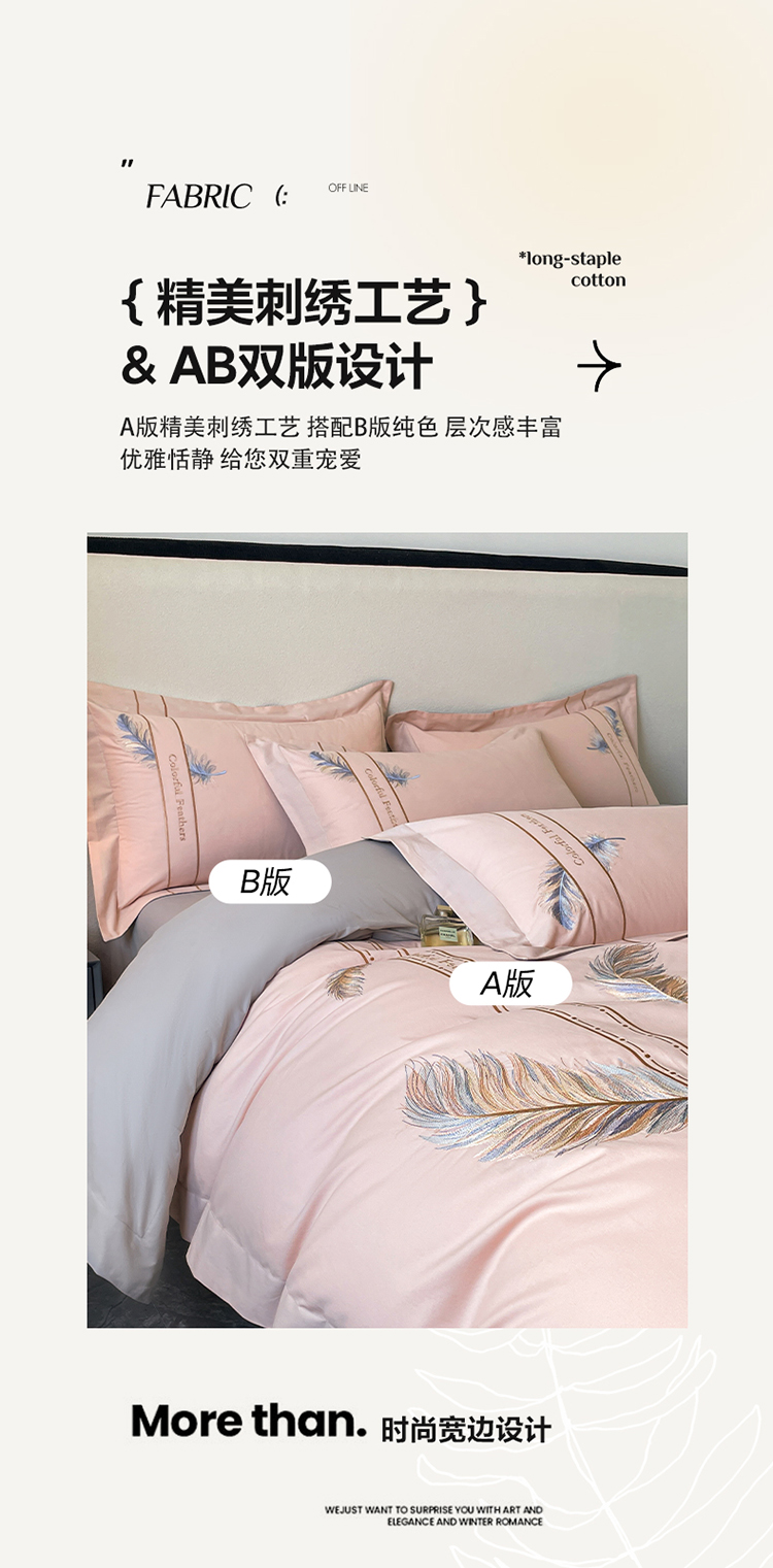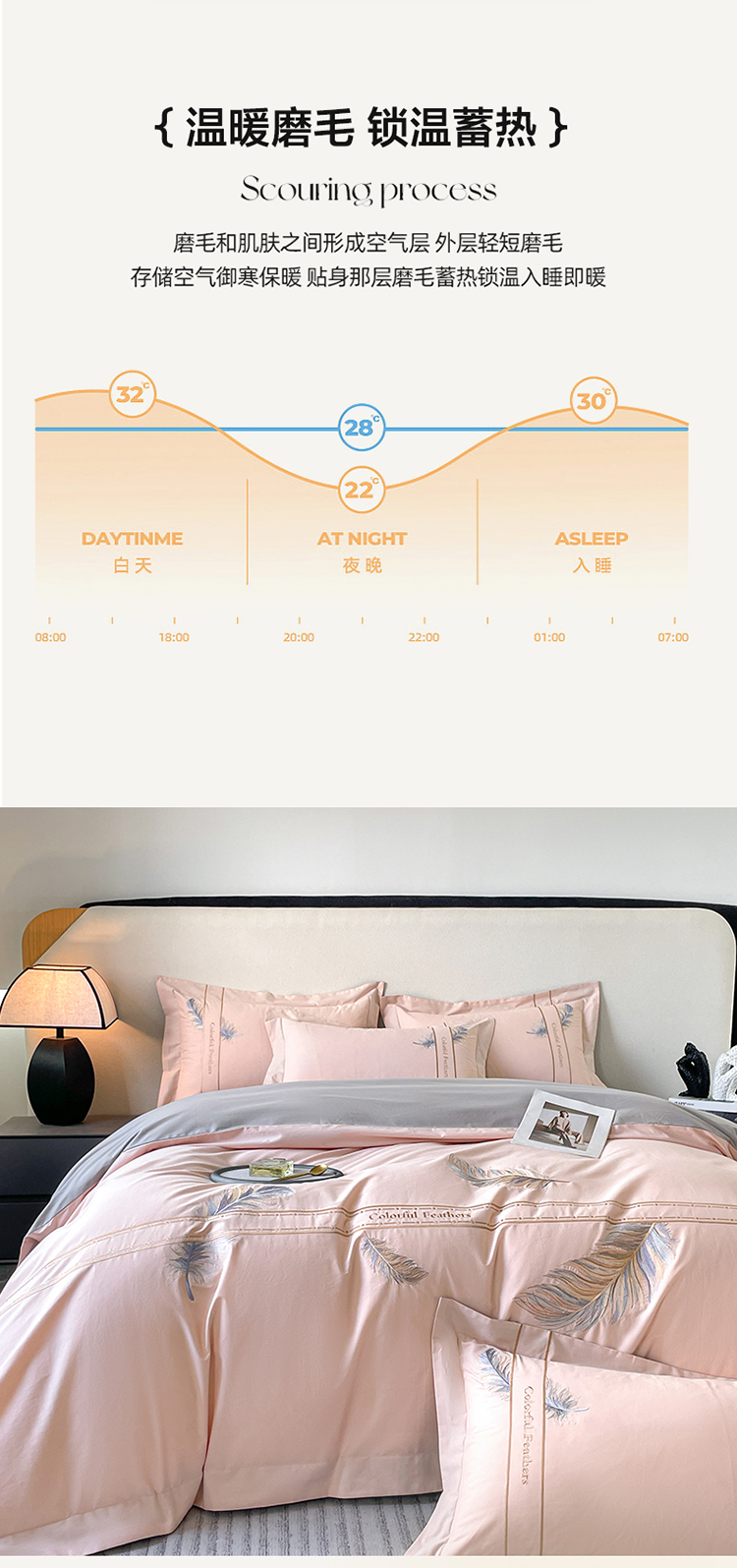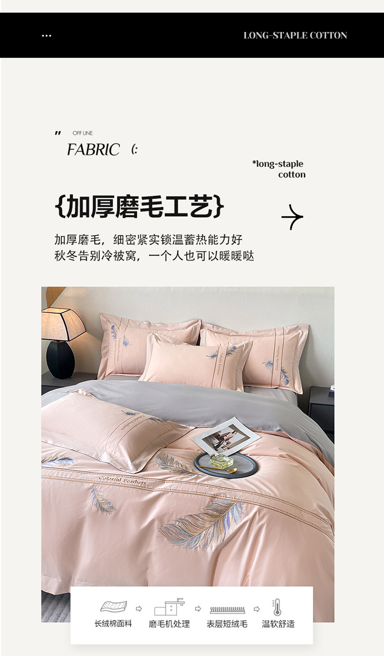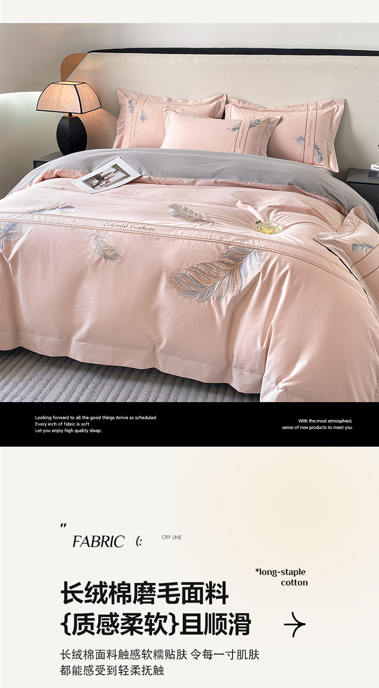 欣宜家纺 2025新款纯棉全棉长绒棉磨毛不掉毛高端四件套羽翼系列带礼盒 豆沙粉