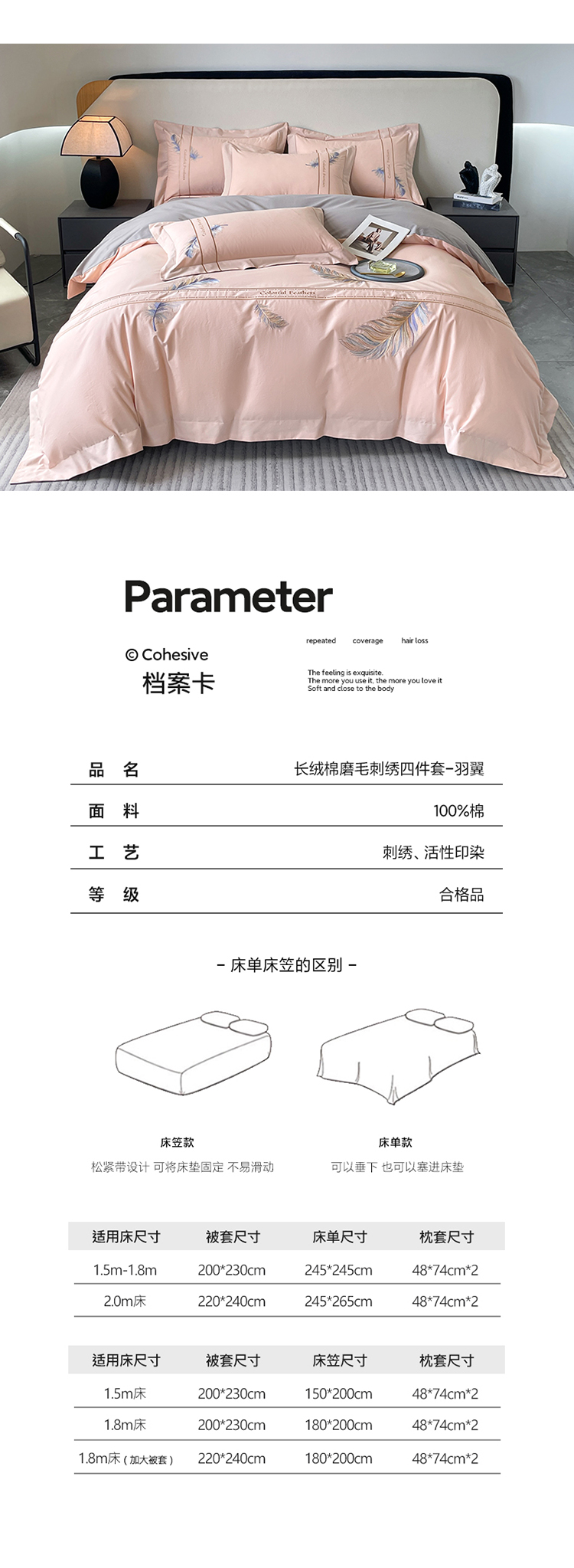 商品名称:欣宜家纺 2025新款纯棉全棉长绒棉磨毛不掉毛高端四件套羽翼系列带礼盒 豆沙粉