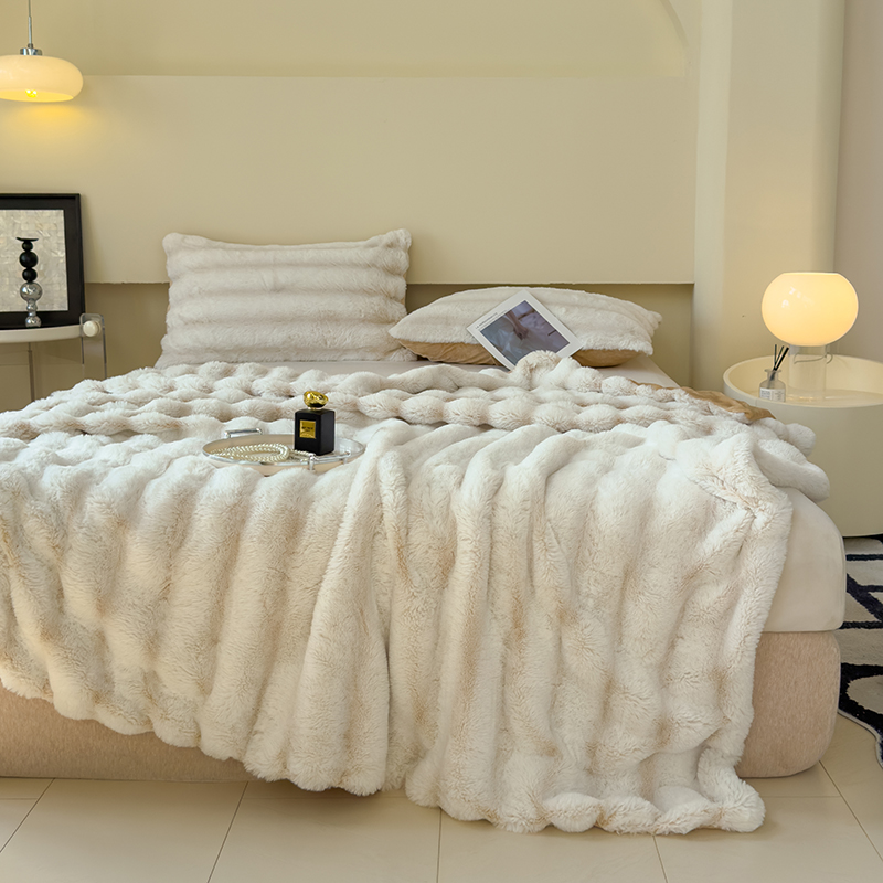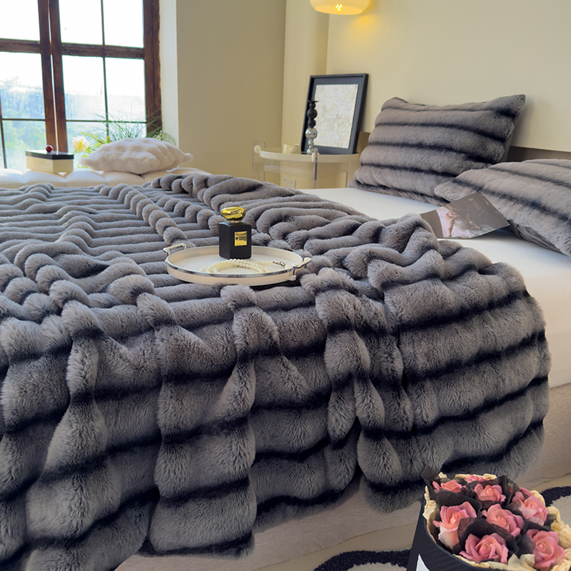 欣宜家纺 2025新款兔兔绒牛奶绒加厚兔毛毯保暖毯子 蓝灰