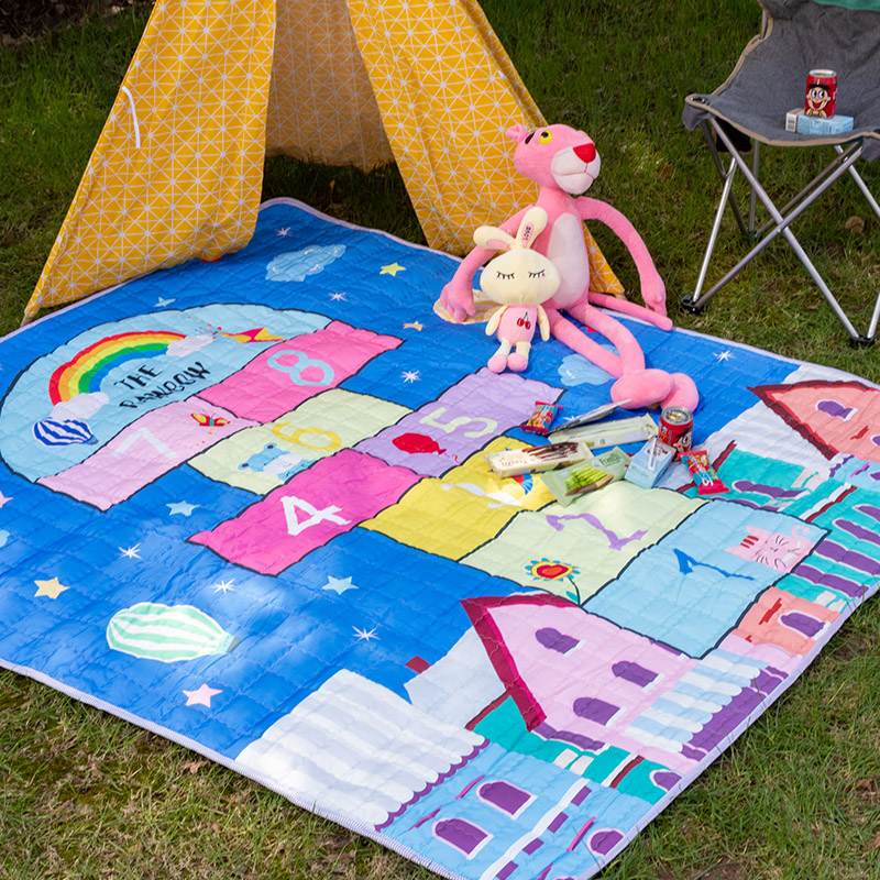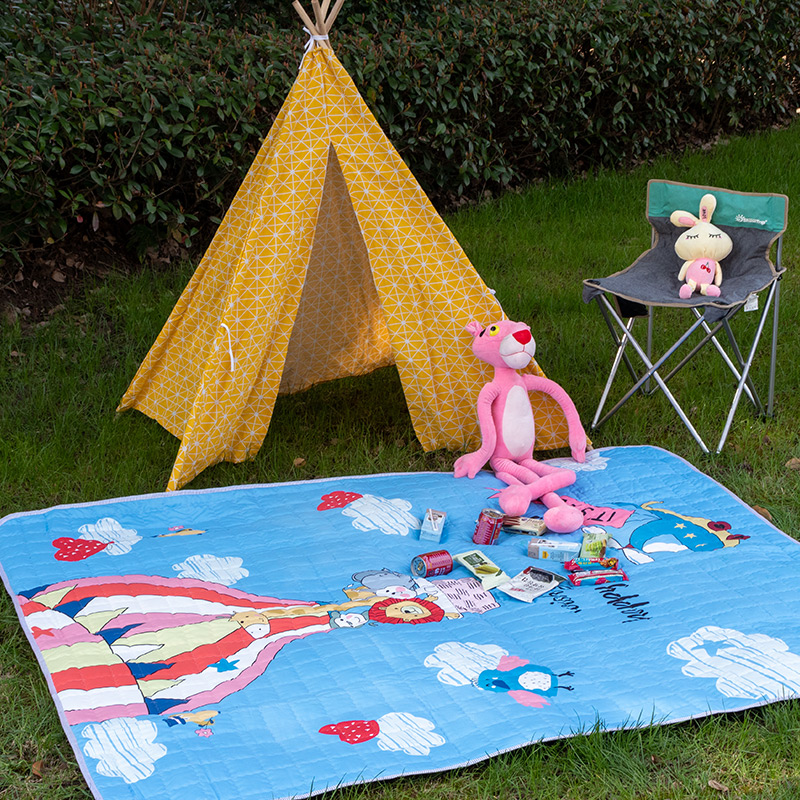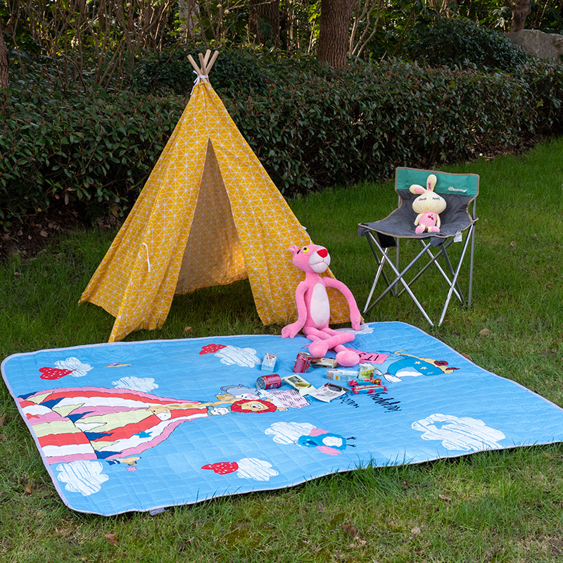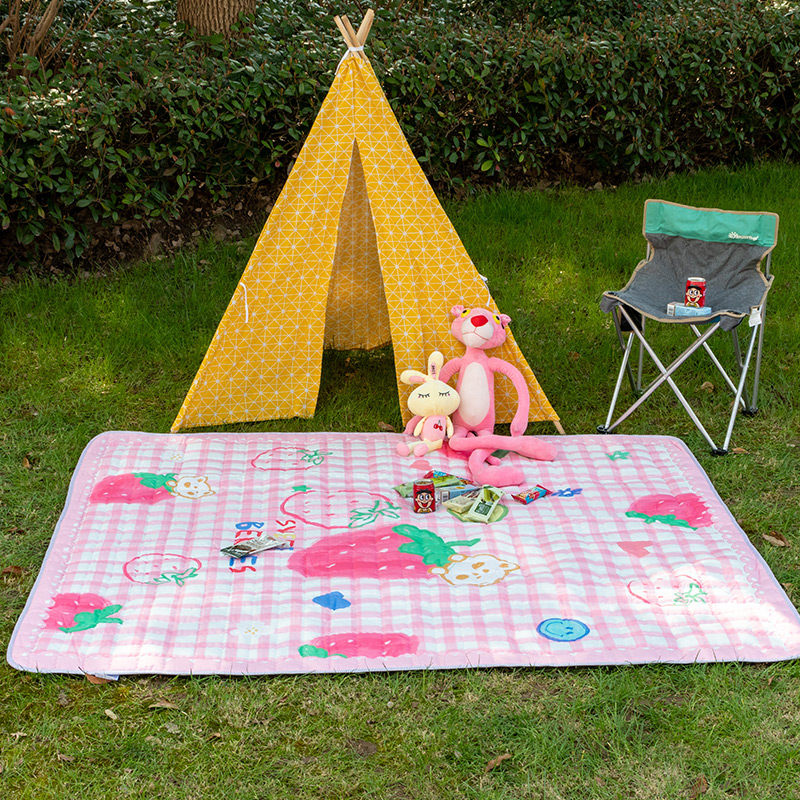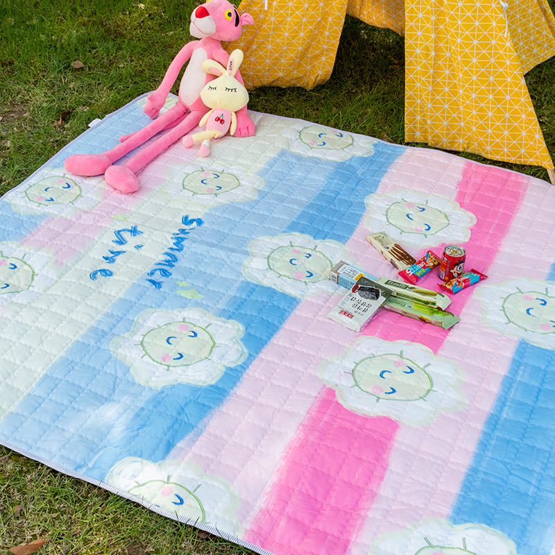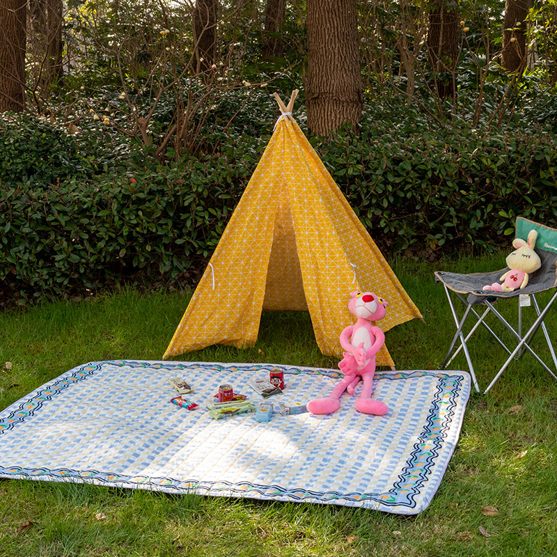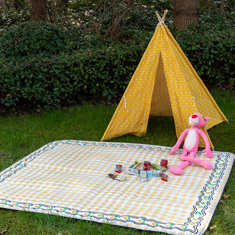 欣宜家纺 2025新款INS风绗缝加厚防水野餐草坪垫 黄蓝格