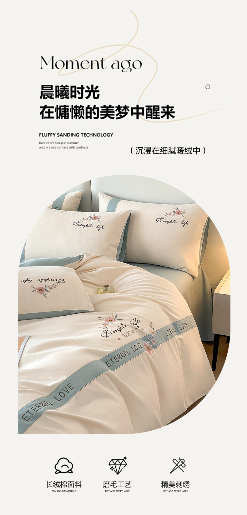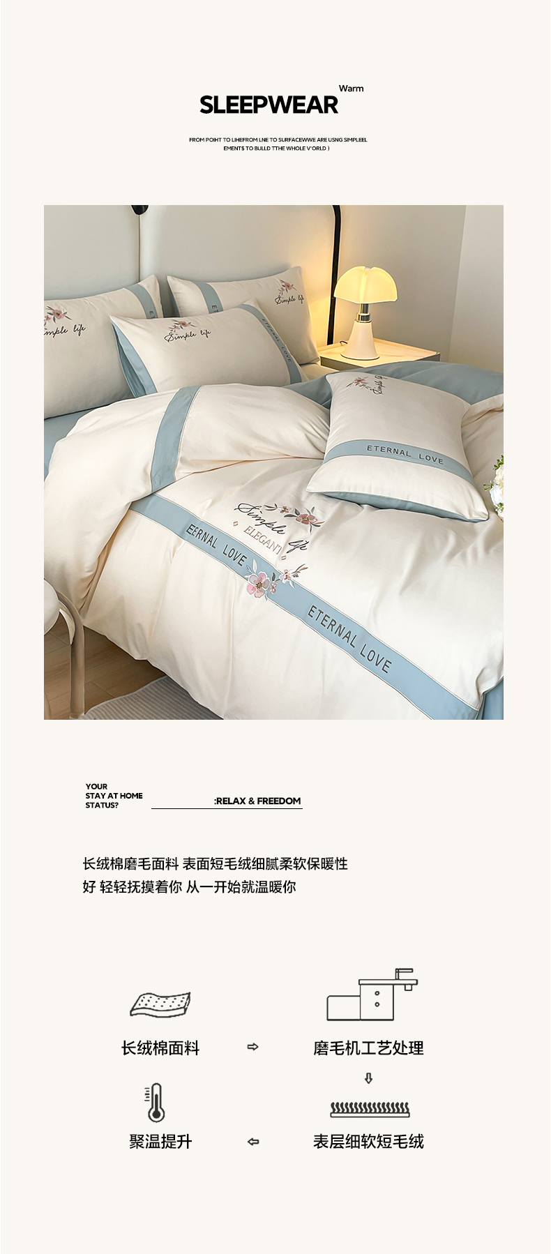 当前位置: 91家纺网 > 商品网购 > 床品套件 > 四件套 > 长绒棉四件套 > (总)欣宜家纺 2025年秋冬新款纯棉全棉长绒棉磨毛不掉毛刺绣款绣花四件套-送高档礼盒