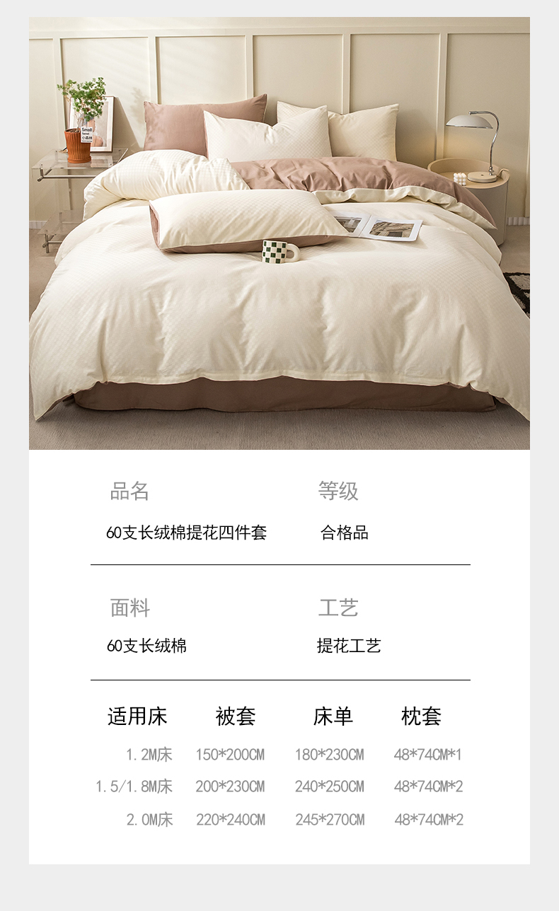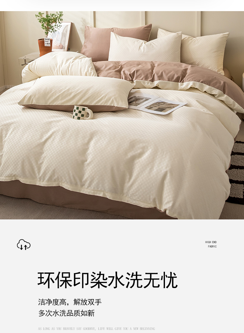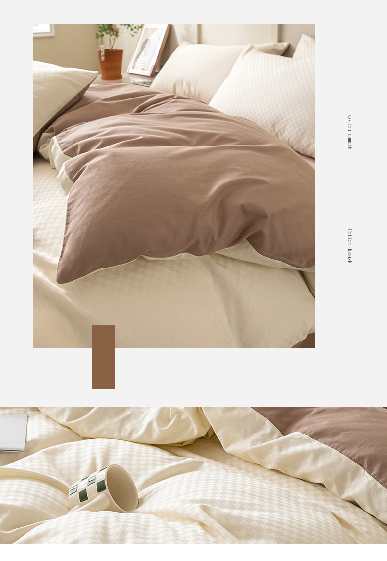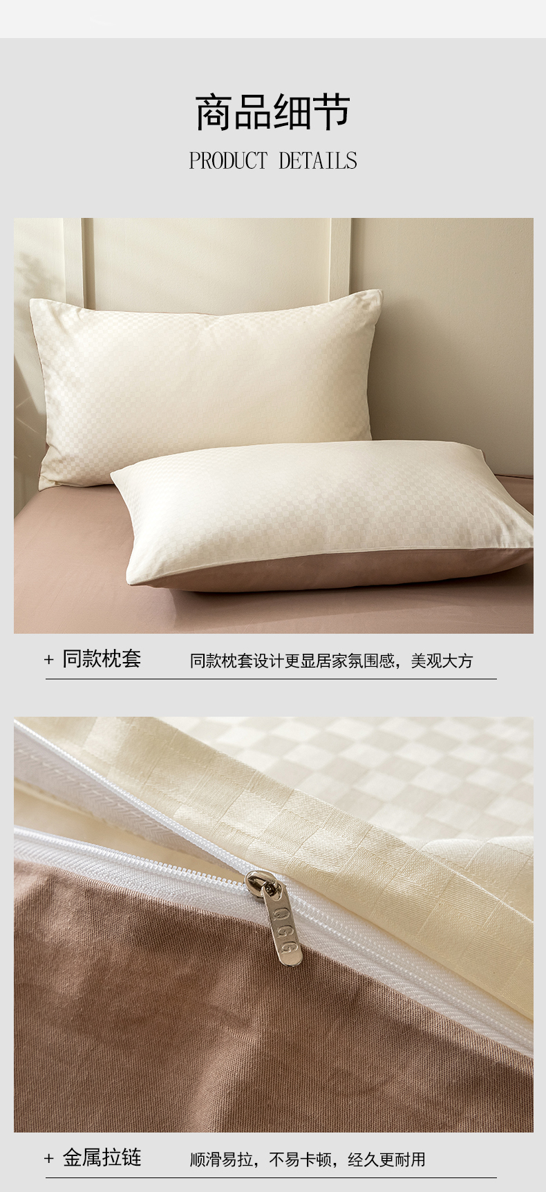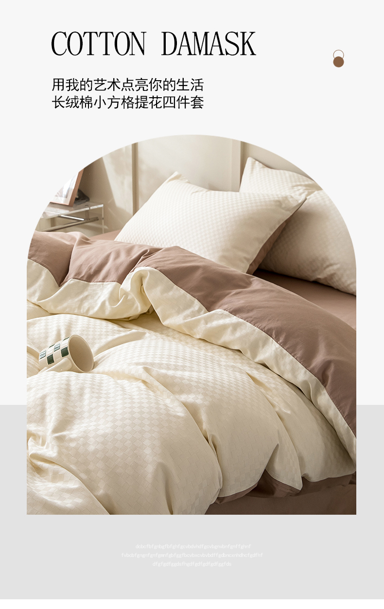 当前位置: 91家纺网 > 商品网购 > 床品套件 > 四件套 > 长绒棉四件套 > 琪格格纺织 2026新款轻奢长绒棉纯棉高级感提花方格酒店名宿居家四件套 60长绒棉-奶昔白+摩卡棕