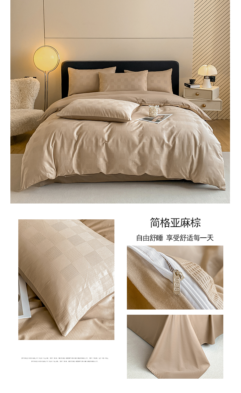 (总)琪格格纺织 2026新款轻奢长绒棉纯棉高级感提花方格酒店名宿居家四件套,60长绒棉-简格本白,60长绒棉-简格奶白亚麻棕,60长绒棉-简格亚麻棕,60长绒棉-纯果绿,60长绒棉-高级灰,60长绒棉-奶昔白,60长绒棉-奶昔白+果绿,60长绒棉-奶昔白+摩卡棕,60长绒棉-杏仁+摩卡棕,原棉大提花-本白,原棉大提花-卡其棕,原棉大提花-摩登灰,原棉大提花-浅蓝,原棉小提花-本白-场景一,原棉小提花-本白-场景二