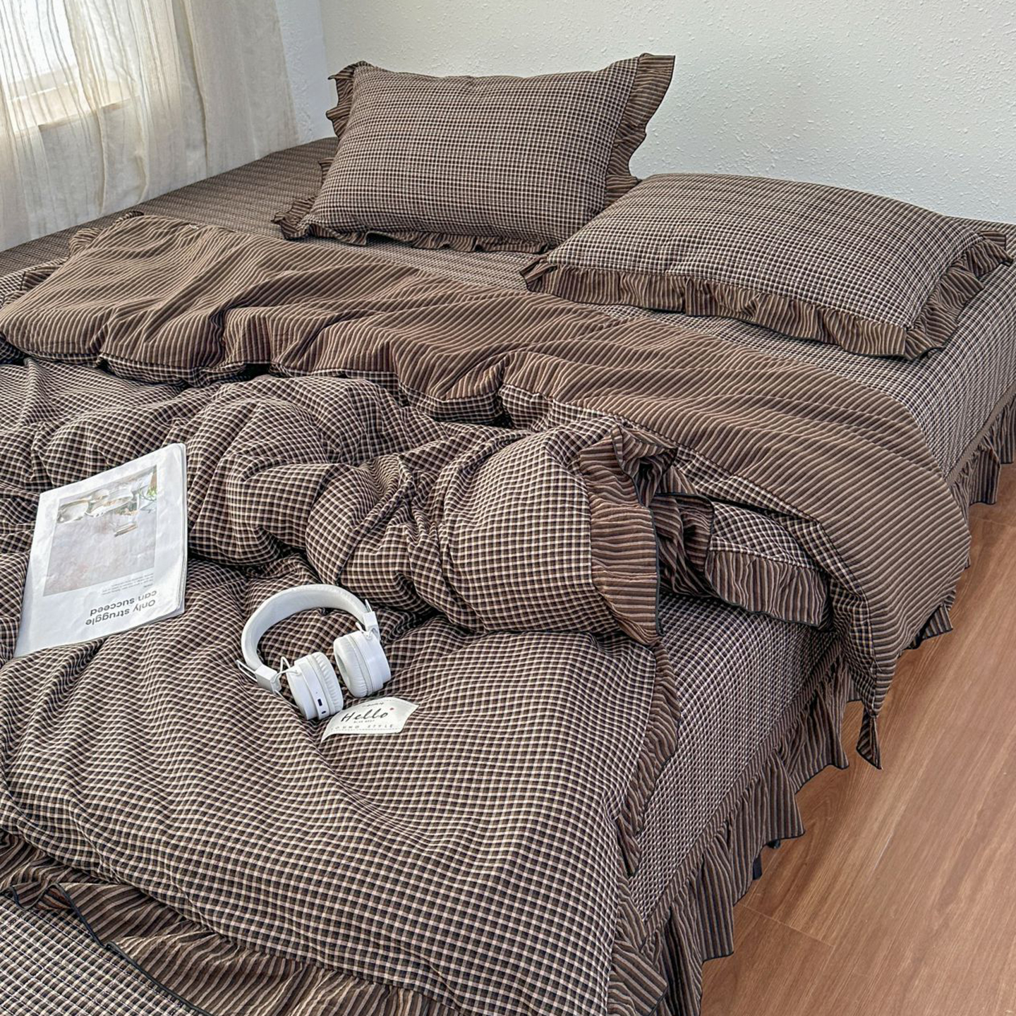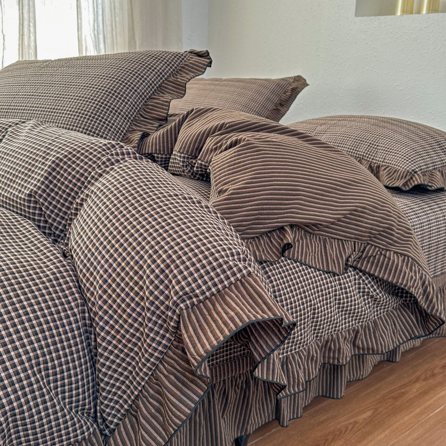 (总)暖居 2026新款色织全棉水洗棉填充棉花高温砂洗床盖四件套