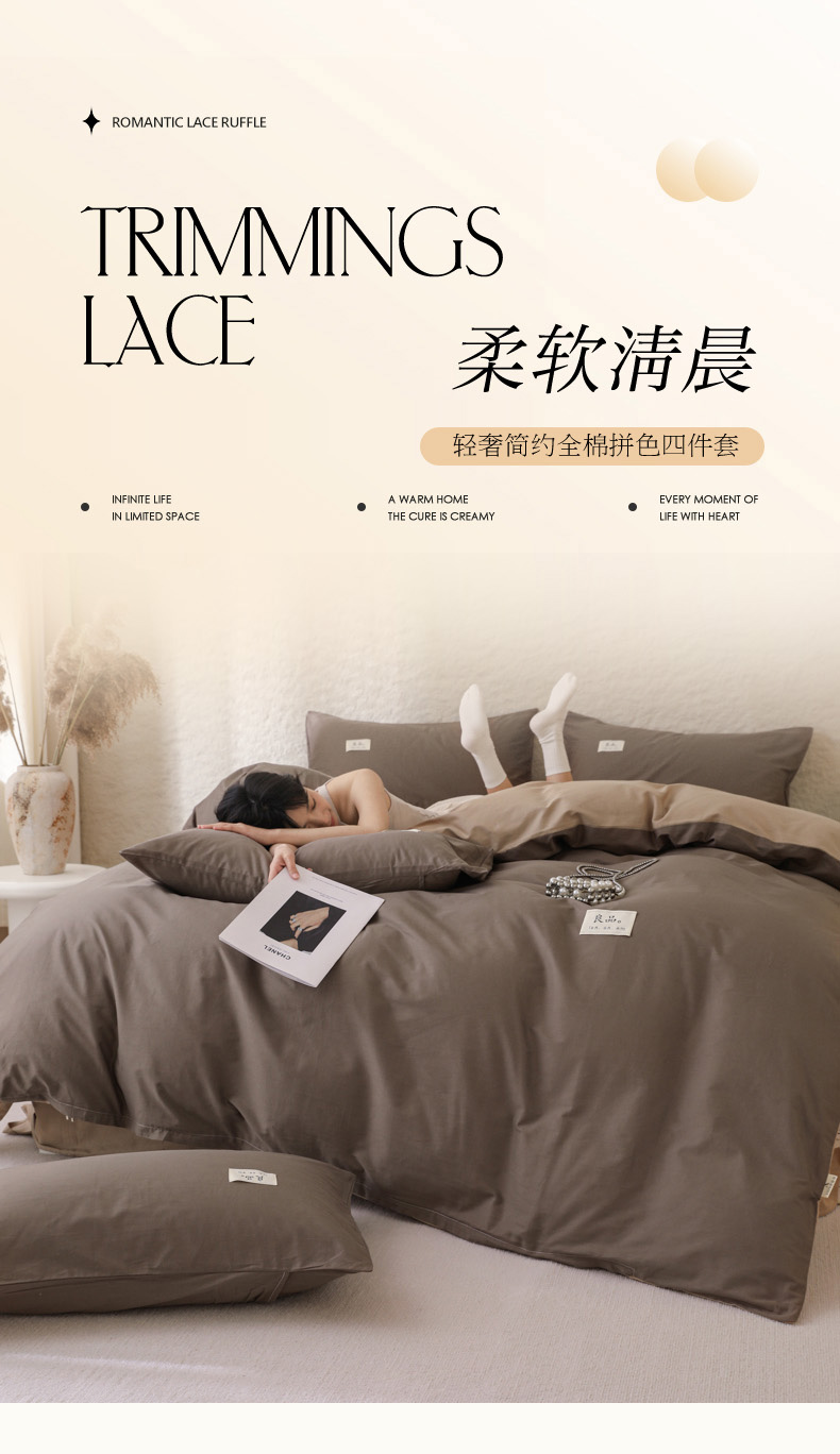 当前位置: 91家纺网 > 商品网购 > 床品套件 > 四件套 > 全棉普通四件套 > 眠博士 2026新款轻奢简约全棉40支拼色四件套 全棉拼色-春泥+卡其
