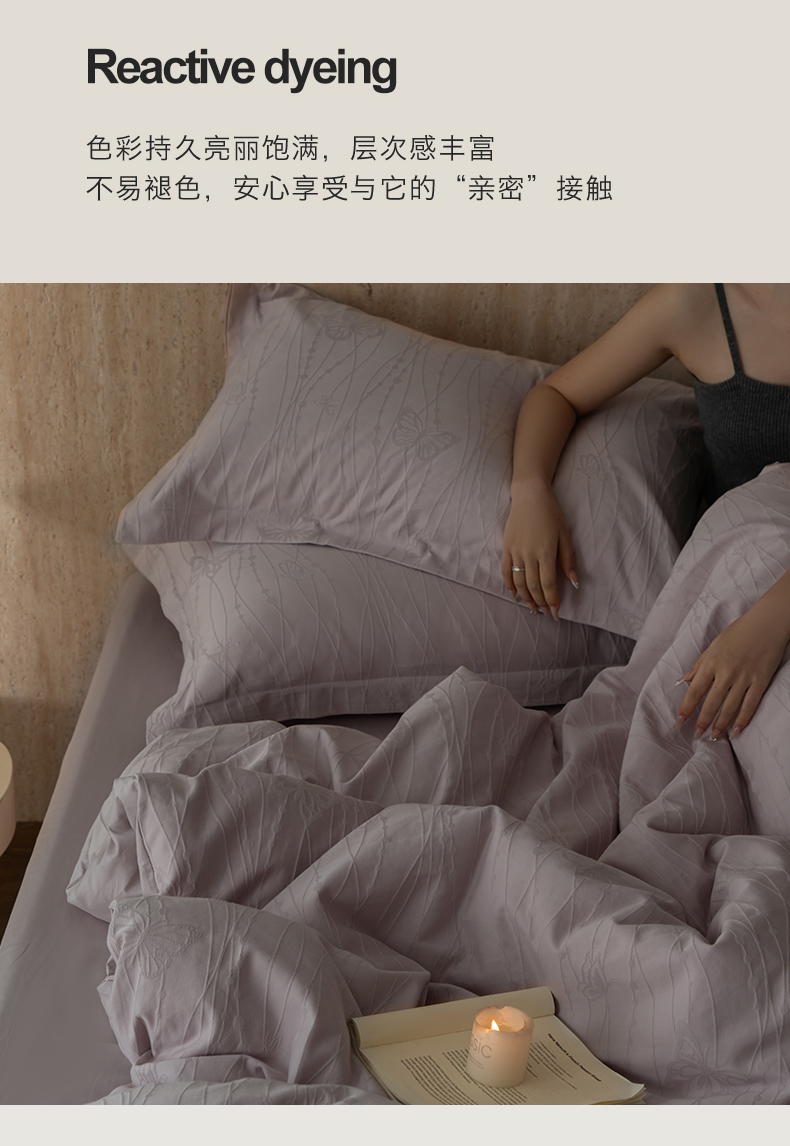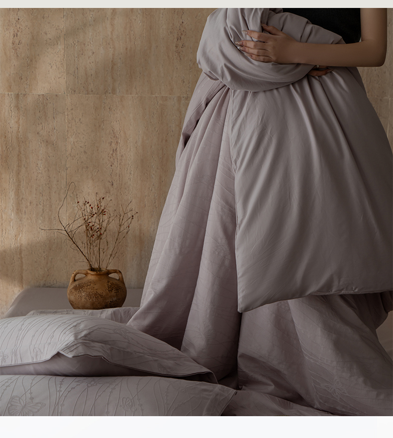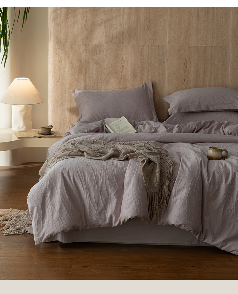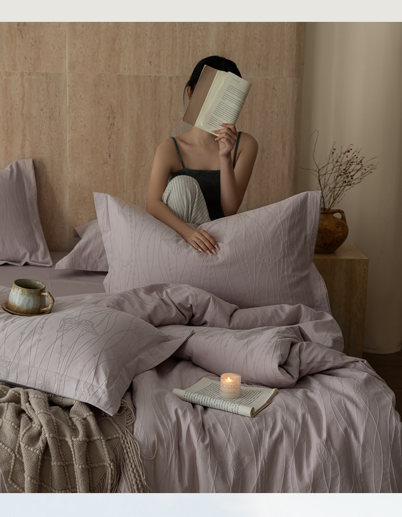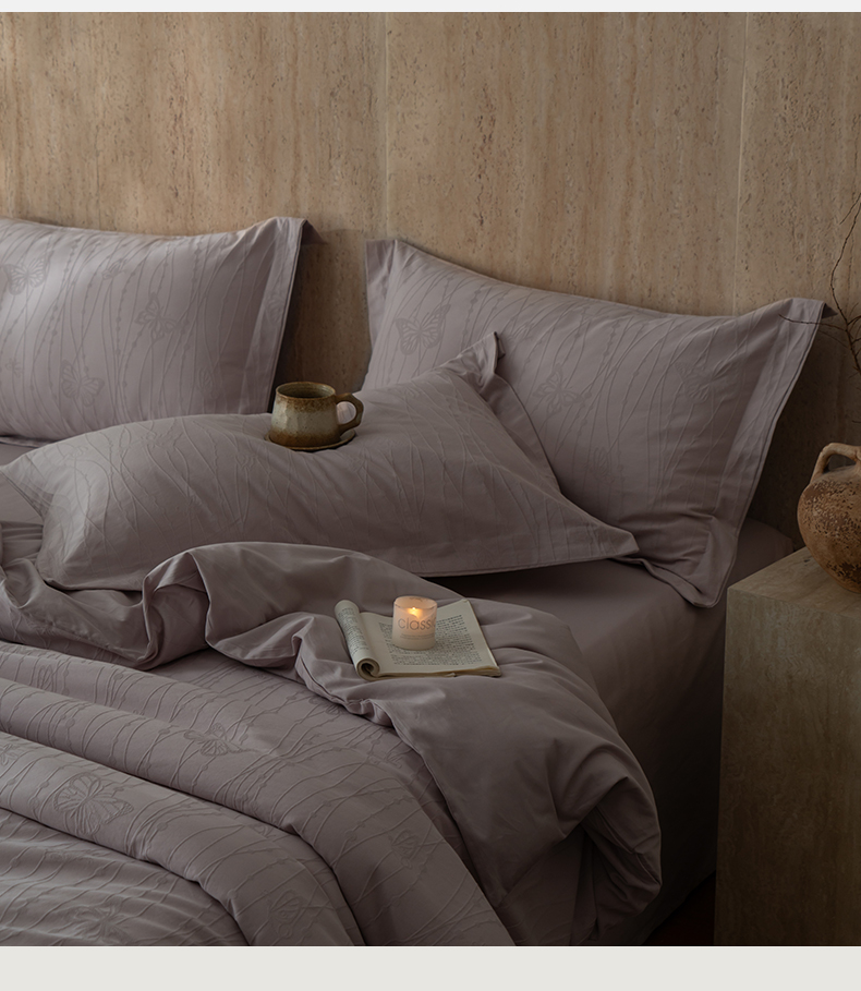 当前位置: 91家纺网 > 商品网购 > 床品套件 > 四件套 > 全棉普通四件套 > 爱思佳 2026新款A类全棉60s浮雕亮面提花系列四件套 蝶梦紫