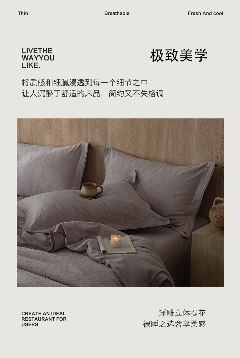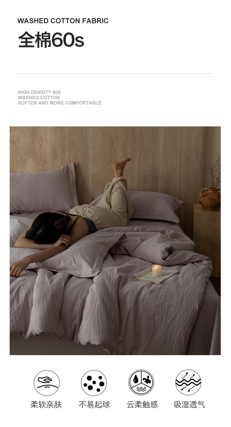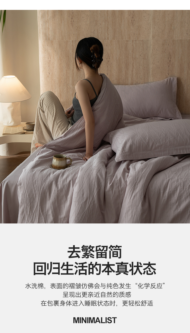 当前位置: 91家纺网 > 商品网购 > 床品套件 > 四件套 > 全棉普通四件套 > 爱思佳 2026新款A类全棉60s浮雕亮面提花系列四件套 蝶梦紫