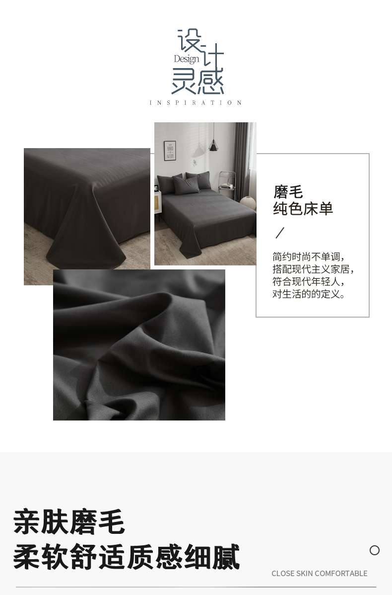 商品名称:啊雅家居 2026新款ins简约纯色磨毛系列单床单 灰