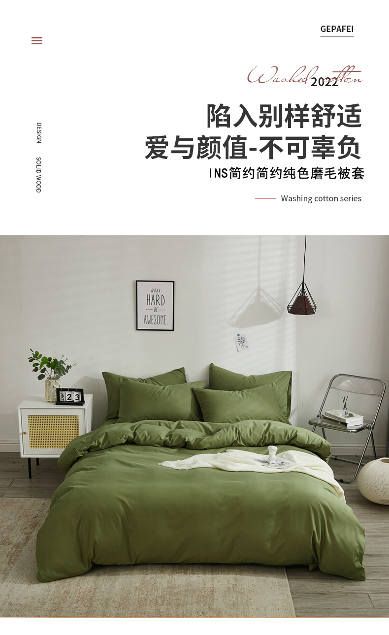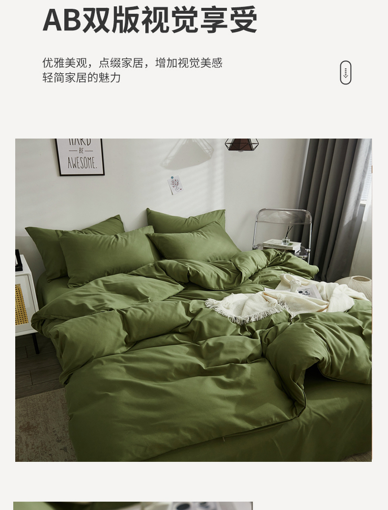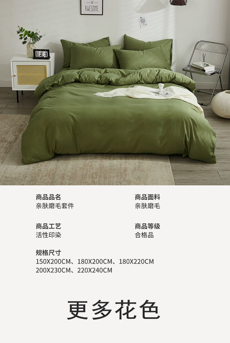 商品名称:啊雅家居 2026新款ins简约纯色磨毛被套可订制logo 军绿