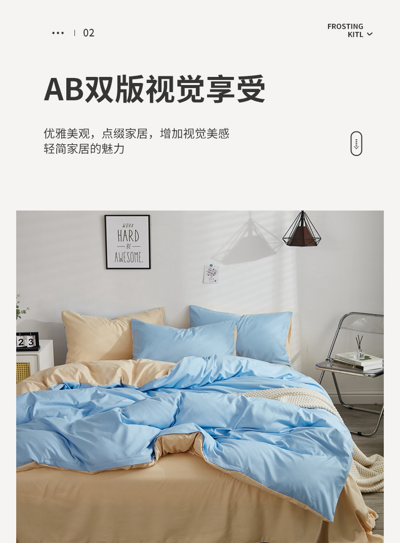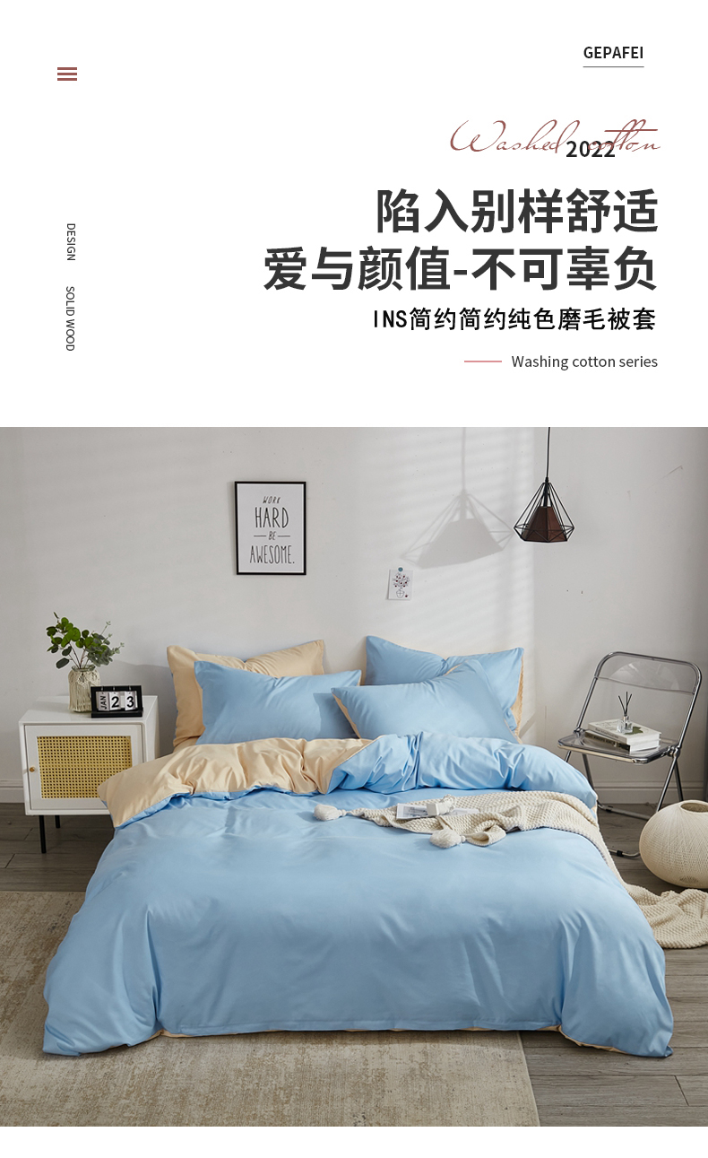 啊雅家居 2026新款ins简约纯色磨毛被套可订制logo 天空兰加黄