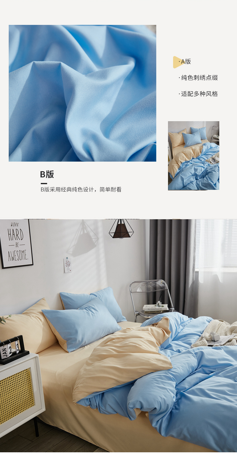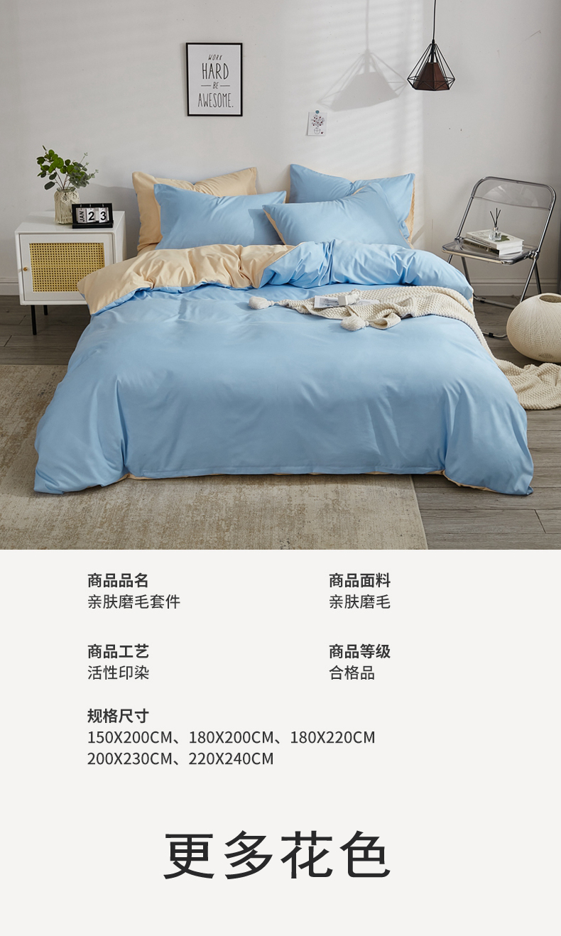 商品名称:啊雅家居 2026新款ins简约纯色磨毛被套可订制logo 天空兰加黄