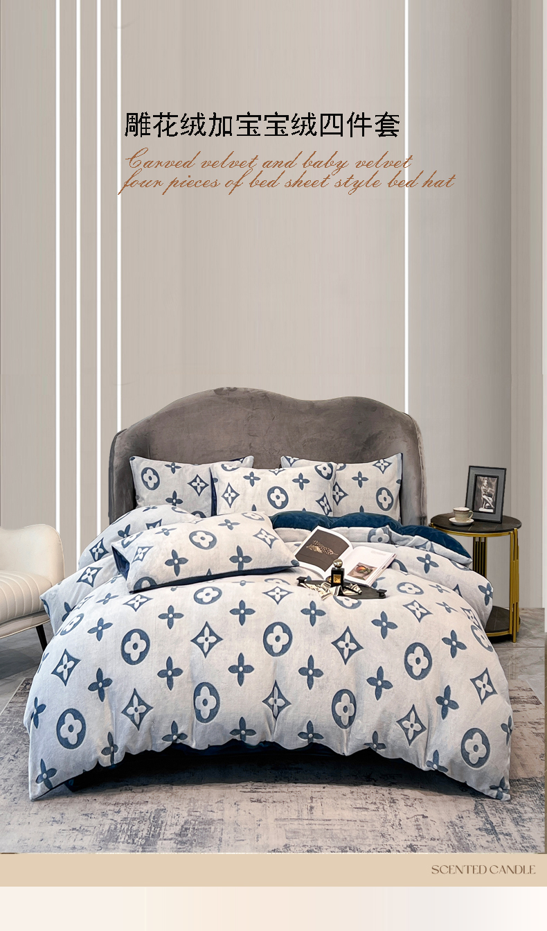 当前位置: 91家纺网 > 商品网购 > 床品套件 > 四件套 > 其它四件套 > 啊雅家居 2026新款雕花绒加宝宝绒四件套床单款床笠款 点雕蓝