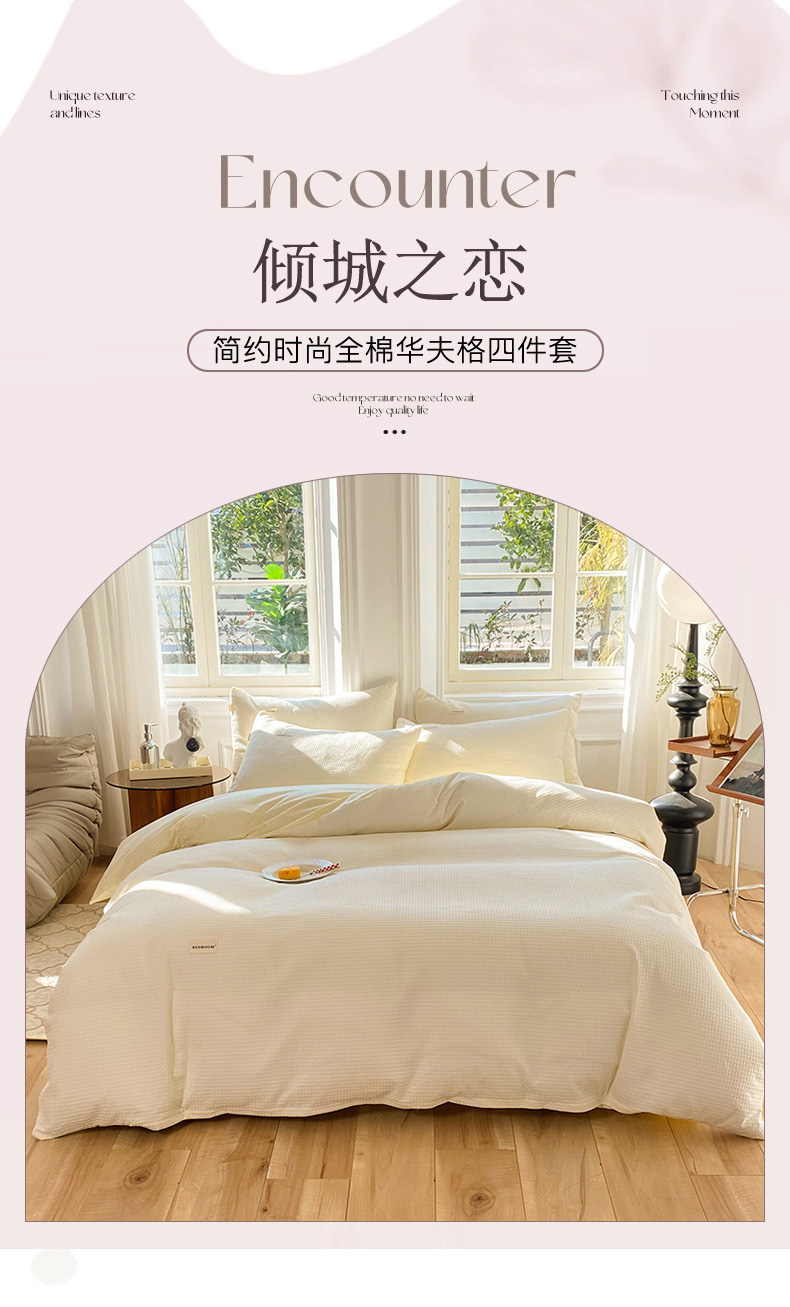 当前位置: 91家纺网 > 商品网购 > 床品套件 > 四件套 > 全棉普通四件套 > 眠博士 2026新款简约时尚全棉华夫格四件套(提供买家秀)简约款 珍珠白