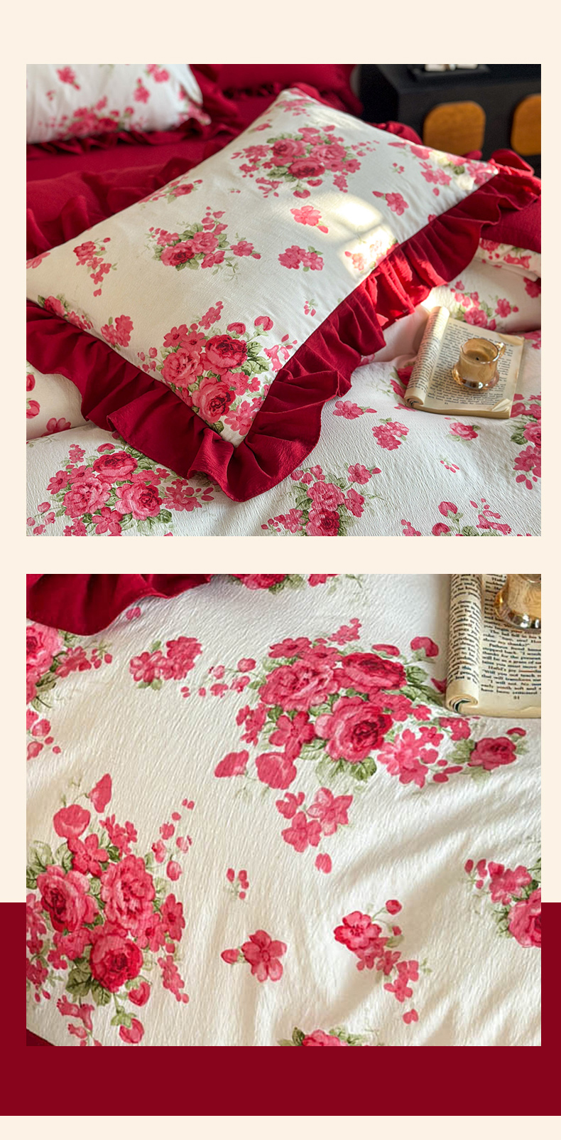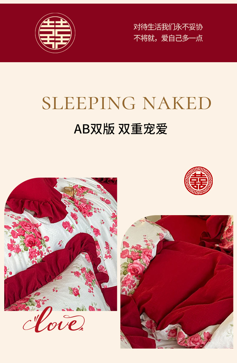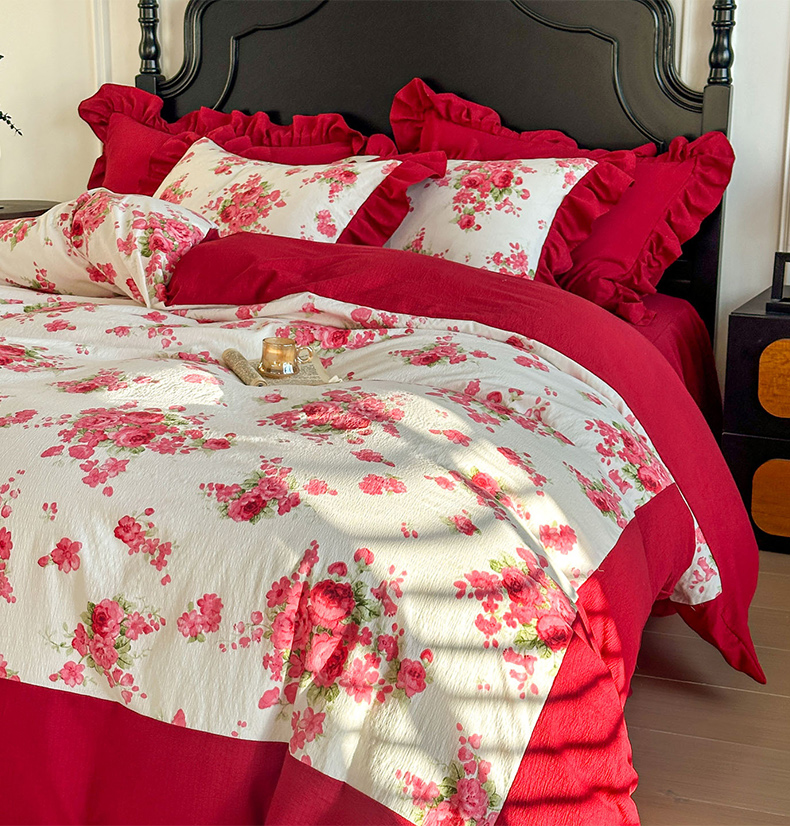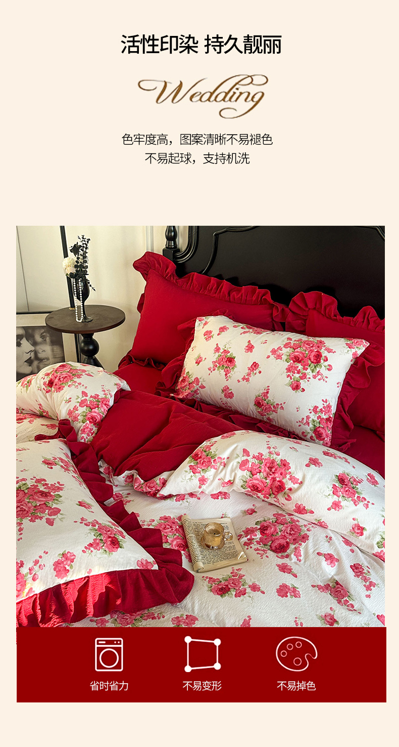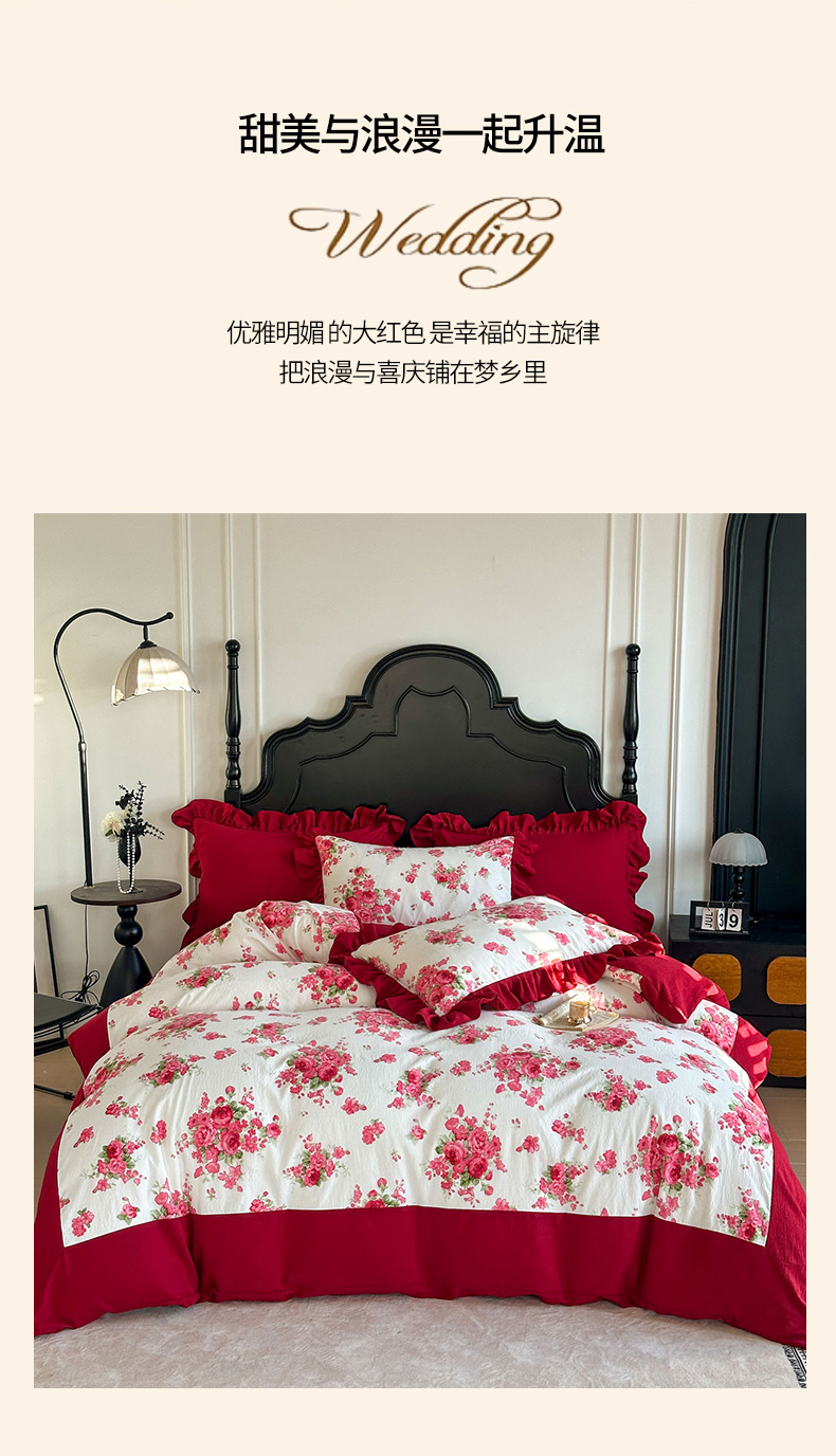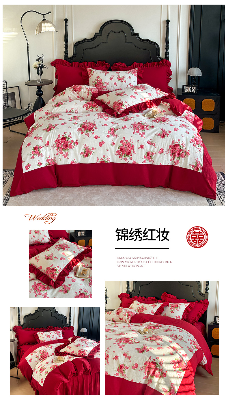 当前位置: 91家纺网 > 商品网购 > 床品套件 > 四件套 > 化纤普通四件套 > (总)金盛皇朝家纺 2026新款仿棉皱皱纱双层纱木棉仿棉水洗棉喜庆浪漫大红四件套-锦绣系列